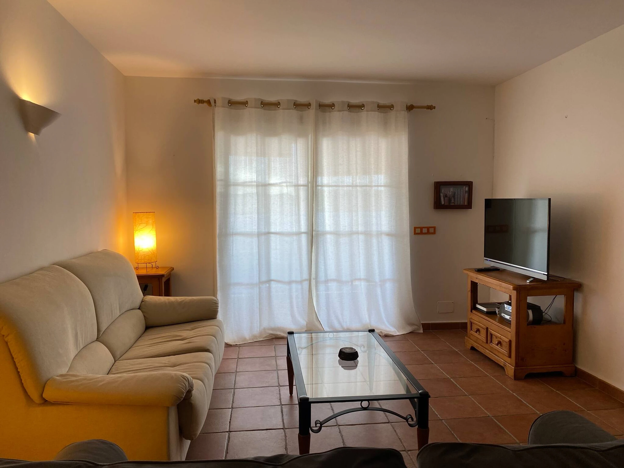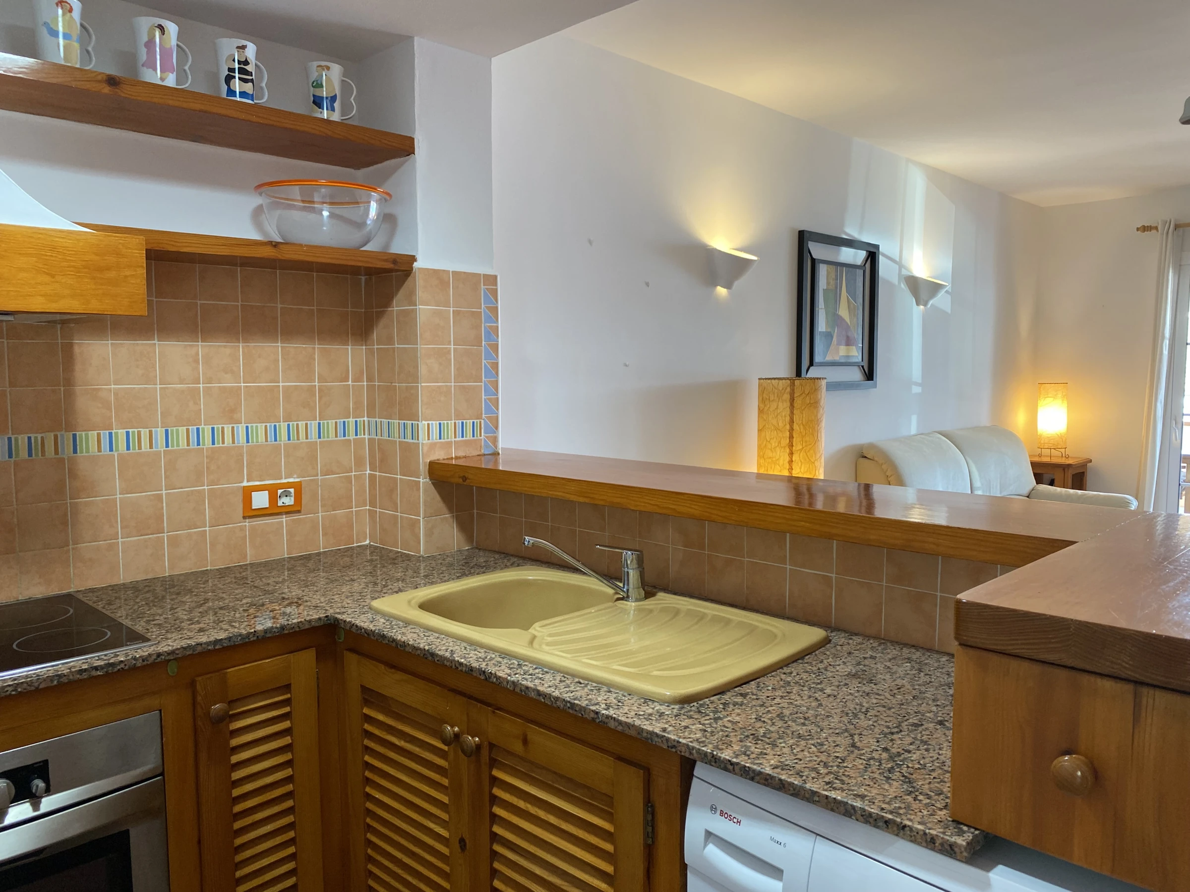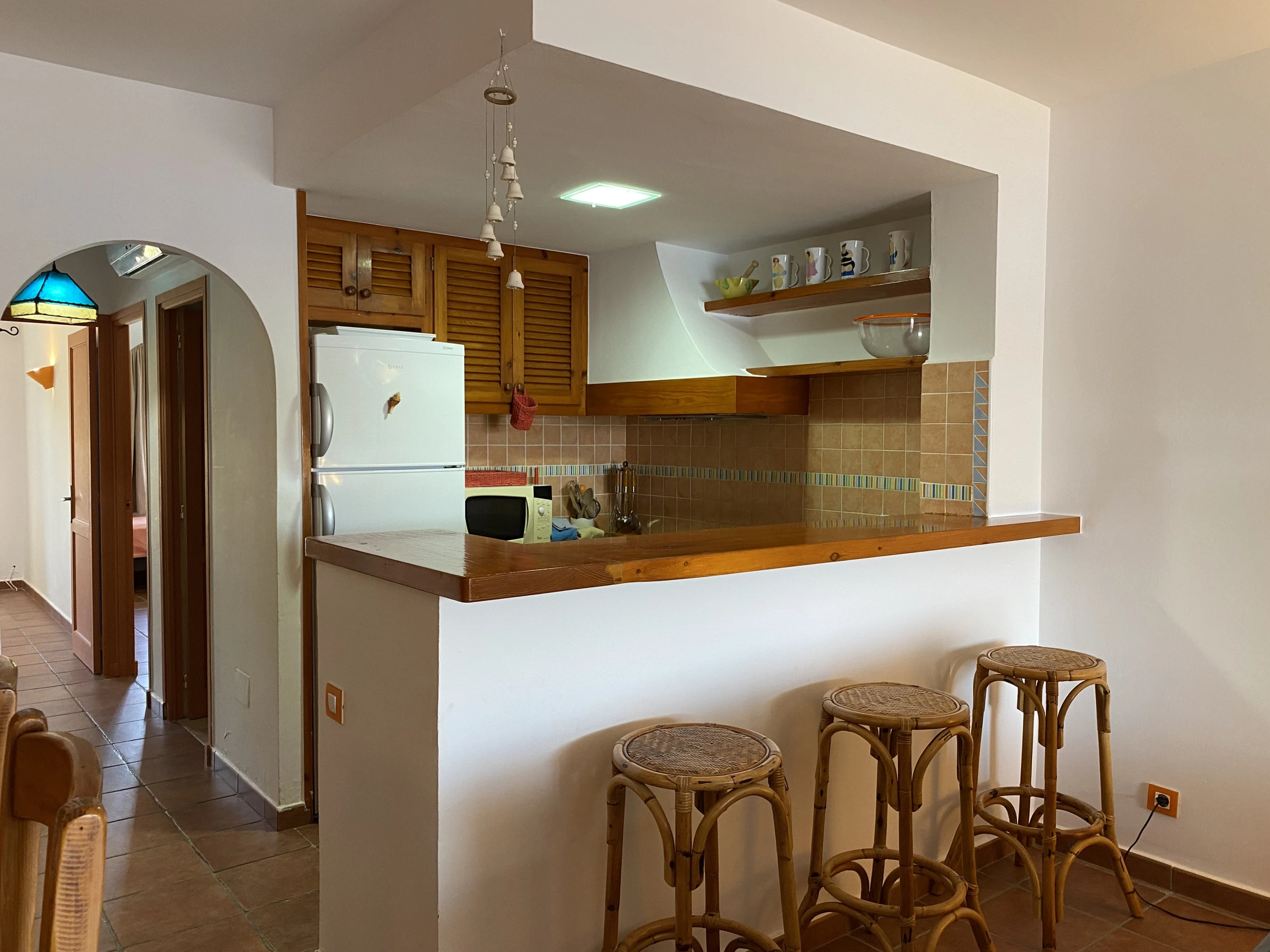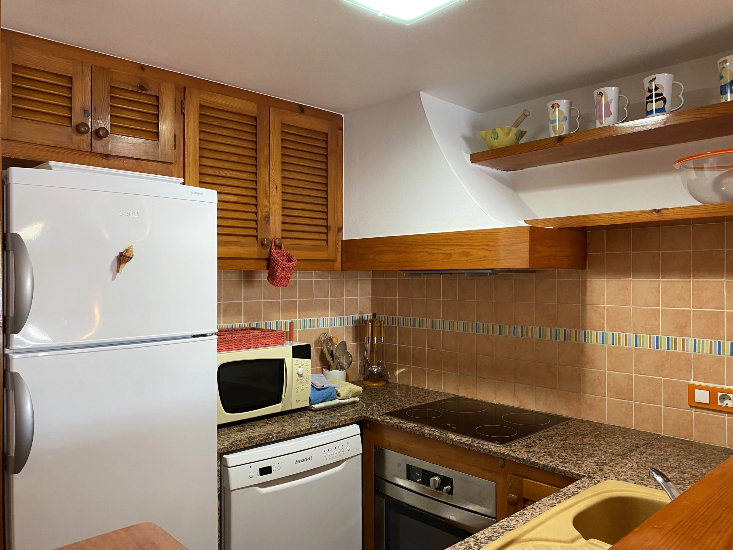 It consists of a spacious living-dining room with air conditioning in the hallway that distributes air throughout the house. It is worth highlighting its terrace with outdoor furniture, fully equipped kitchen, two double bedrooms, two complete bathrooms and a pleasant rear patio with views. If you are looking for a cosy apartment in the first line of Fornells, Caracola will not disappoint you.