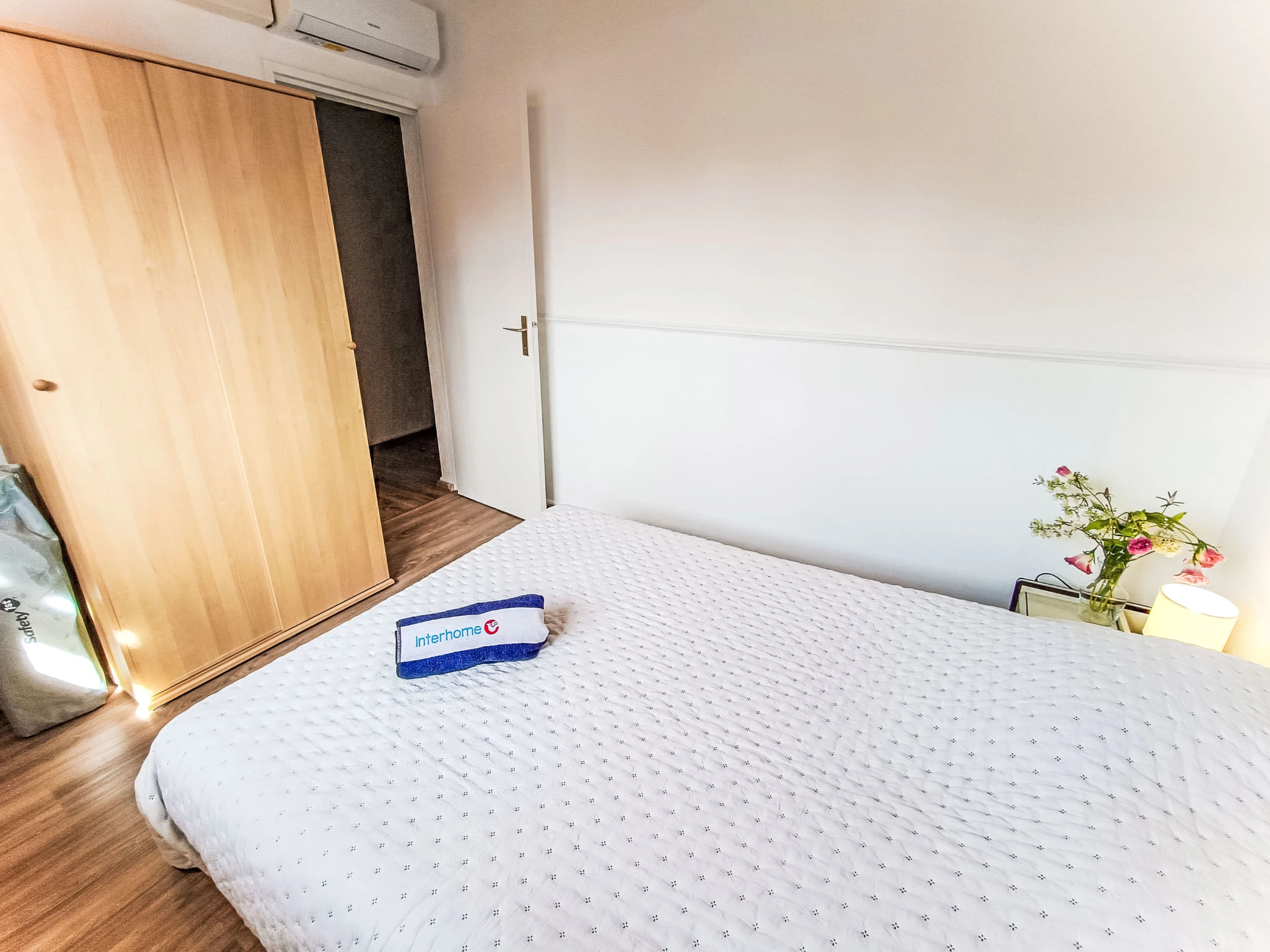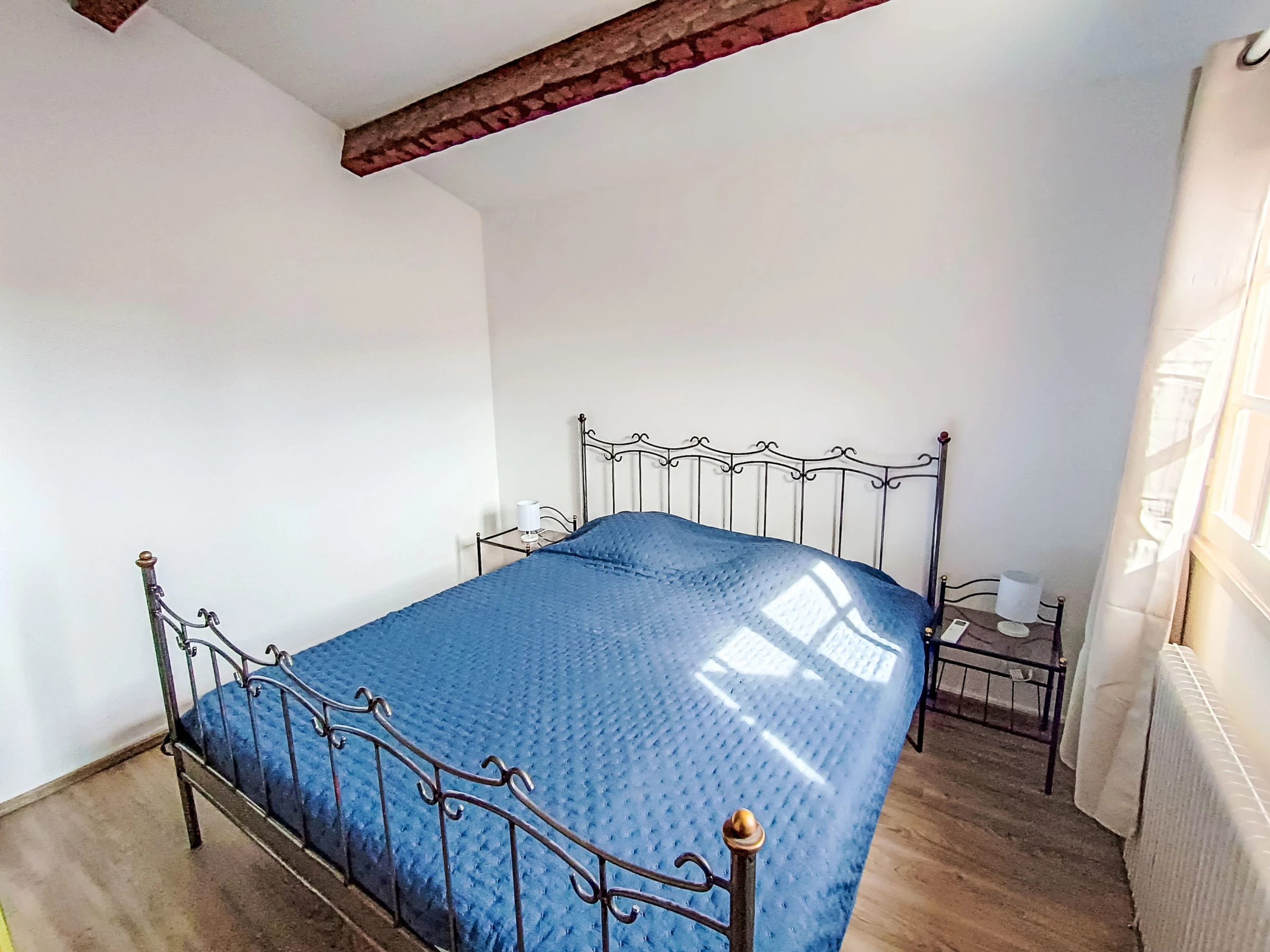 4-room house 100 m2 on 2 levels. Living/dining room with TV. Exit to the garden, north-west facing position. Kitchen (oven, dishwasher, 4 ceramic glass hob hotplates, toaster, microwave, freezer, electric coffee machine). Sep. WC. Upper floor: 1 room with 1 french bed (2 x 90 cm, length 190 cm), electric heating and air conditioning. 1 room with 1 french bed (140 cm, length 190 cm), electric heating and air conditioning. 1 room with 1 french bed (140 cm, length 190 cm), electric heating and air conditioning. Shower/WC. Gas heating. Garden 500 m2. Terrace furniture. Facilities: washing machine, dryer, iron. Internet (WiFi, extra). Parking. Please note: smoke alarm.