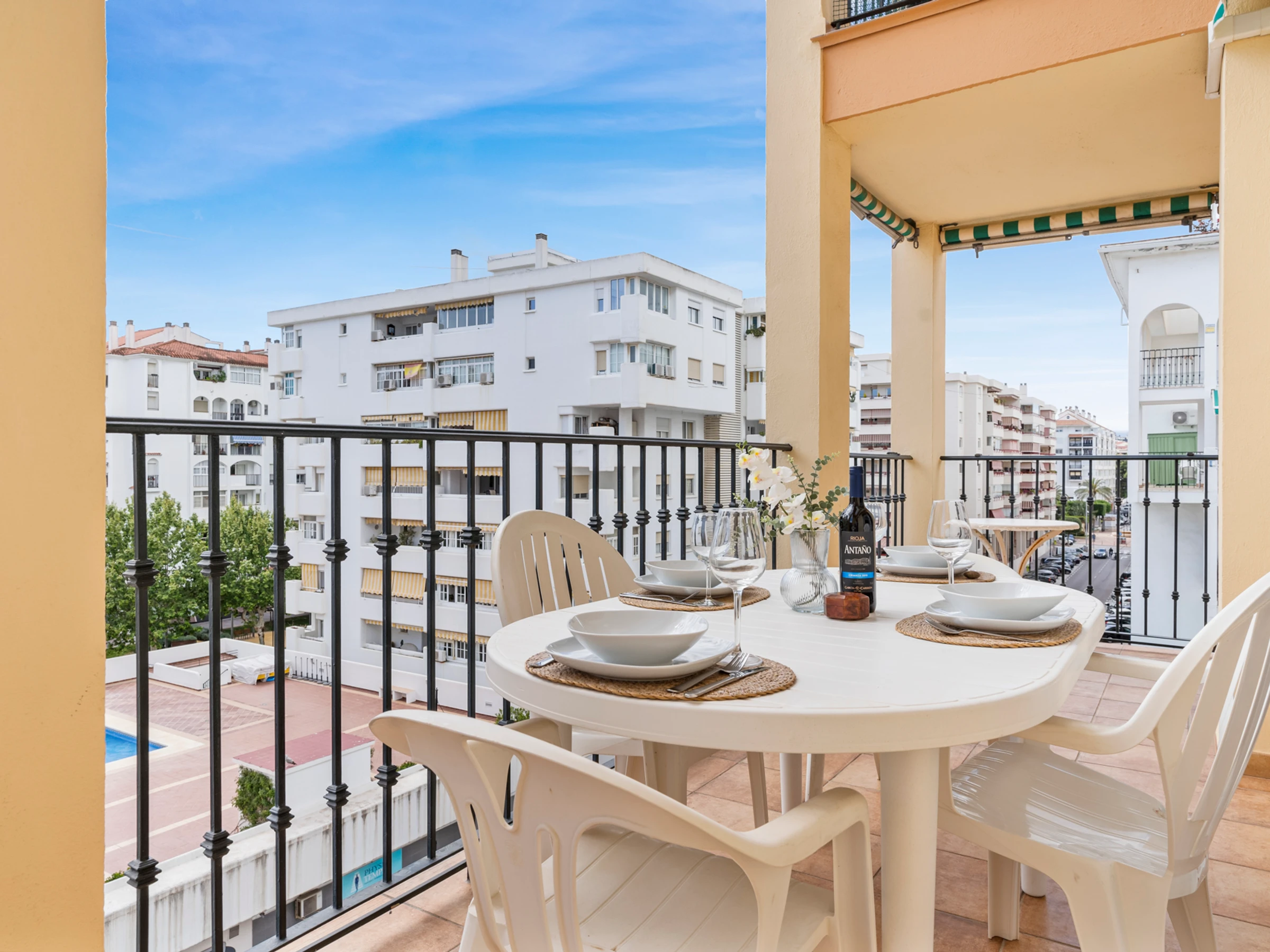 Welcome to this charming apartment with Fuengirola popular marketplace around the corner and with the beach just a short walk away. The apartment is located alongside the popular marketplace, Recinto Ferial, in Fuengirola where markets are held every Tuesday and Saturday all year round, here are also major events such as the International Food Festival in April / May as well as the larger local festival in October (to name a few) the Pool is located just to the right when you get out through the gate and in the building you have a Restaurant, Pharmacy and Car rental as well as nearby there are bakeries, grocery stores, restaurants and much more! The train station is about 10min walk away and there is also a bus stop and taxi rank nearby. When you enter the apartment you will meet a large and social living room straight ahead with a dining group for 4 to the left and a sofa and a Smart TV. From the living room you reach the large balcony with afternoon sun and a lovely view of the mountains and the neighborhood. The kitchen is newly renovated and fully equipped with all modern amenities such as dishwasher, oven and stove, microwave, kettle, coffee maker and much more. One bedroom has a double bed and the other bedroom has a double bed and a single bed, a total of 5 people can sleep in the apartment. There is also a toilet and a bathroom with bathtub. The apartment is otherwise fully equipped with WIFI, A / C in all rooms, Dishwasher and washing machine, Smart TV, Printers and much more! The cleaning fee includes bed linen and linen in a set per person. Baby Package €39: including cot and high chair, on request and subject to availability. The courtesy set is provided only for the beginning and not for the entire stay.