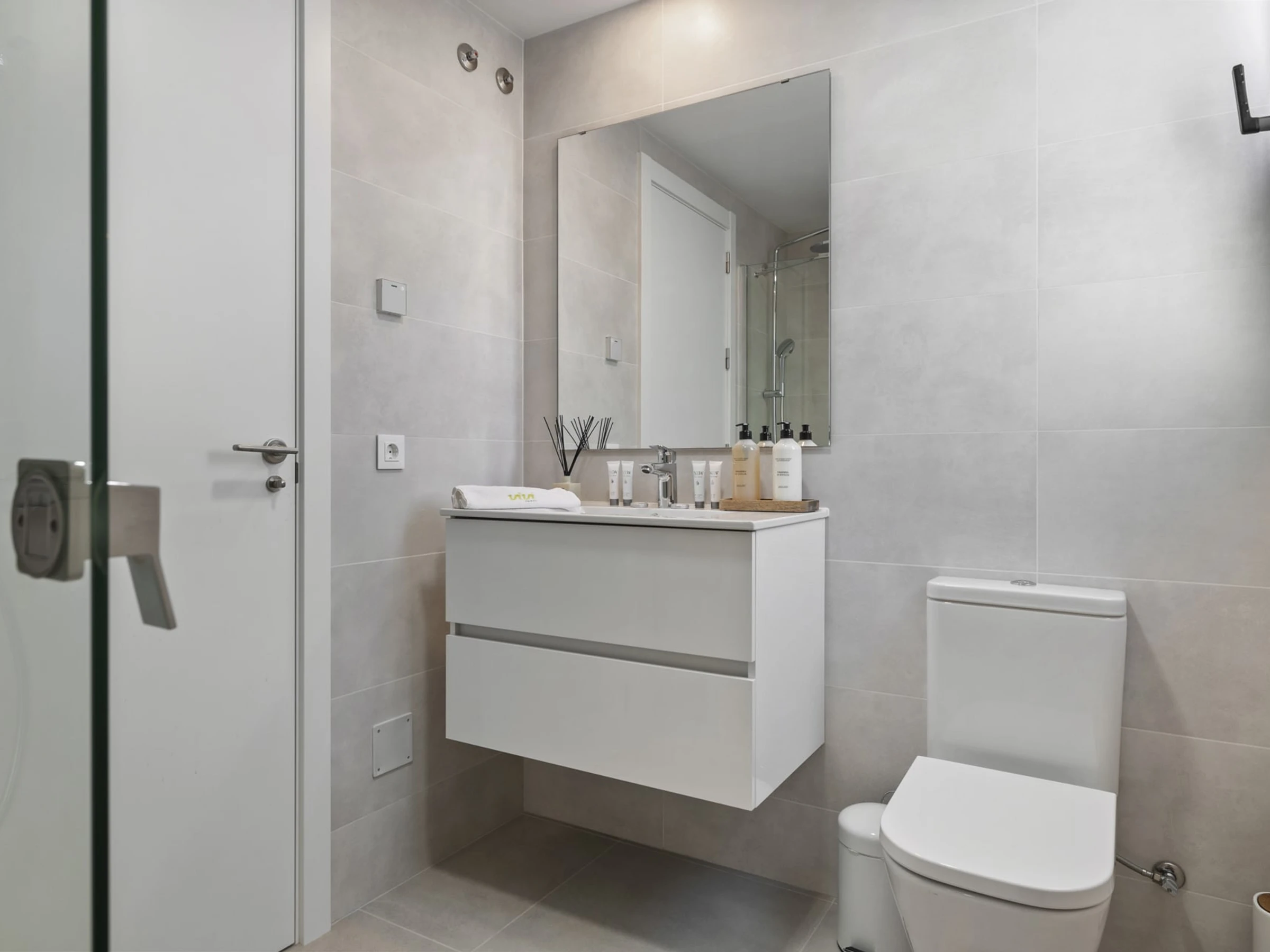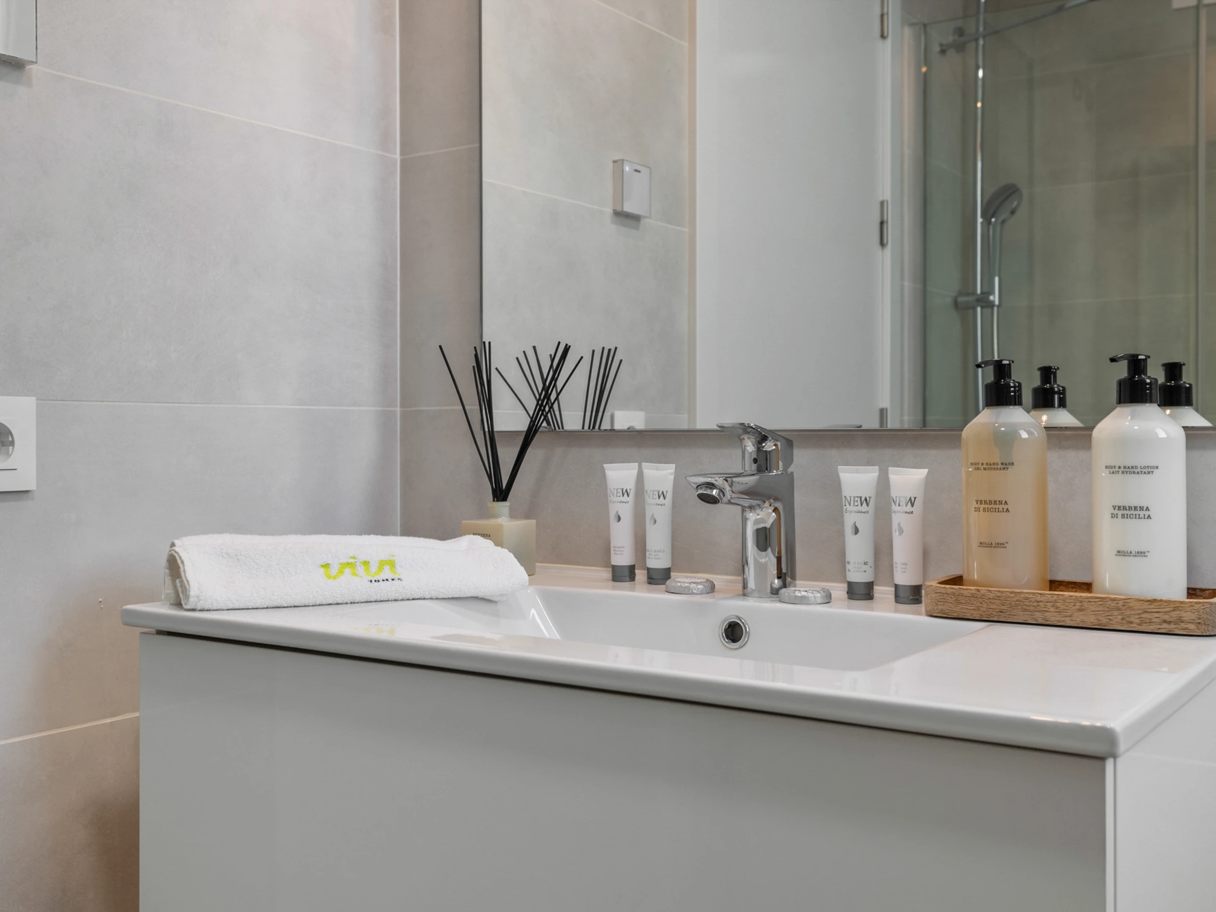 The apartment is equipped with a gym and a private swimming pool, ideal for taking a refreshing dip, even during the colder months.