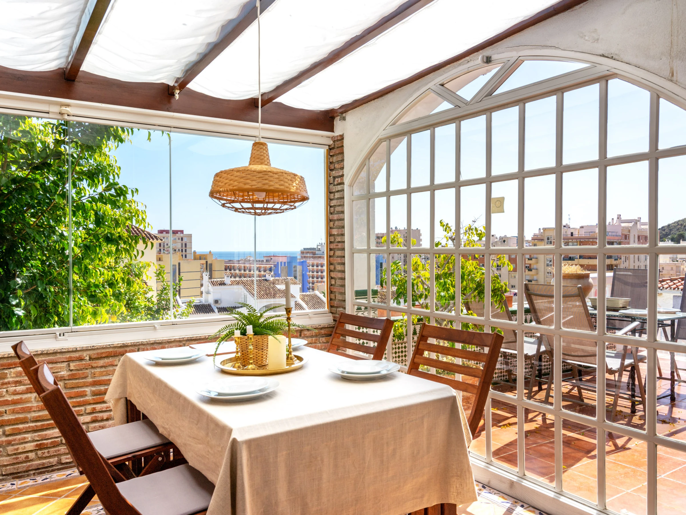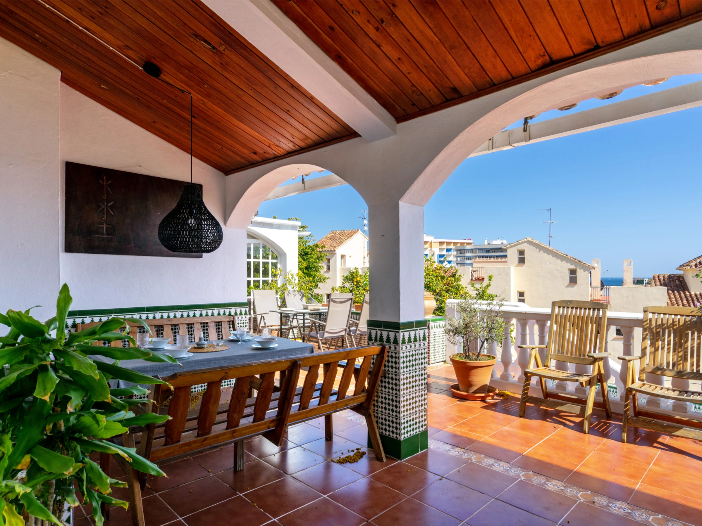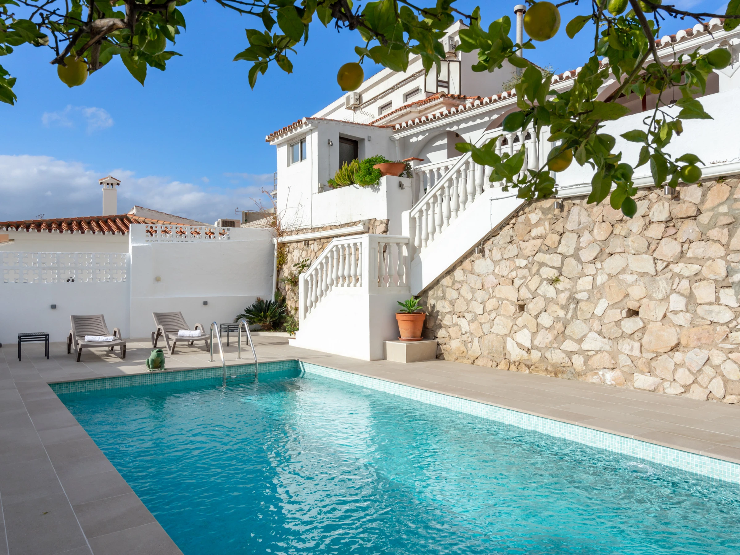 Welcome to our unique 2-level villa with private pool and sea views in the lovely Torreblanca district of Fuengirola. The private villa is only a few minutes walk from Torreblanca Train Station and nearest grocery store as well as restaurants and bars, the beach is only 10 min away. There is free parking outside the house as well as a playground for children close by. There is also a free shopping bus to the big Miramar shopping center near the villa. The villa in Fuengirola consists of a large and stylishly decorated living room with fireplace, dining area with panoramic views, fully equipped kitchen and a screened mat with a single bed and 2 extra beds if required.There are a total of 3 bedrooms where the master bedroom upstairs has a double bed and a private bathroom with shower, the second bedroom downstairs consists of 3 beds in the form of 1 bunk bed and a single bed, the 3rd bedroom has a double bed with connecting bathroom with shower. There is a large patio with chairs and tables for the whole family where you can barbecue and have a good time with the whole family, the large and inserved swimming pool is completely private and there are comfortable sun loungers to borrow! 5 min walking distance to train station. 5 min walking distance to the supermarket. The house is fully equipped with WIFI, Smart TV (guests have to log-in with their own credentials, satellite channels are not available), Dishwasher, A / C in all rooms and much more. Baby Package €39: including cot and high chair, on request and subject to availability. The courtesy set is provided only for the beginning and not for the entire stay.