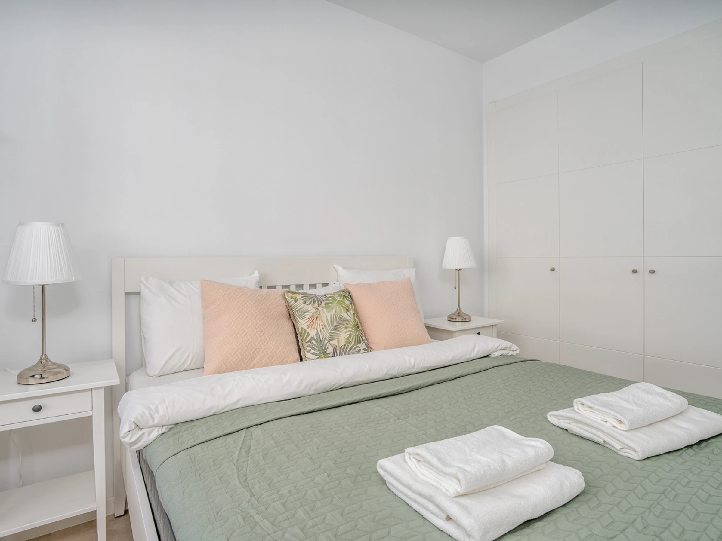Further into the apartment you have 4 bedrooms where 2 bedrooms have 2 single beds each and the third bedroom has a double bed and the master bedroom has a double bed and its own ensuite bathroom with bath and shower.