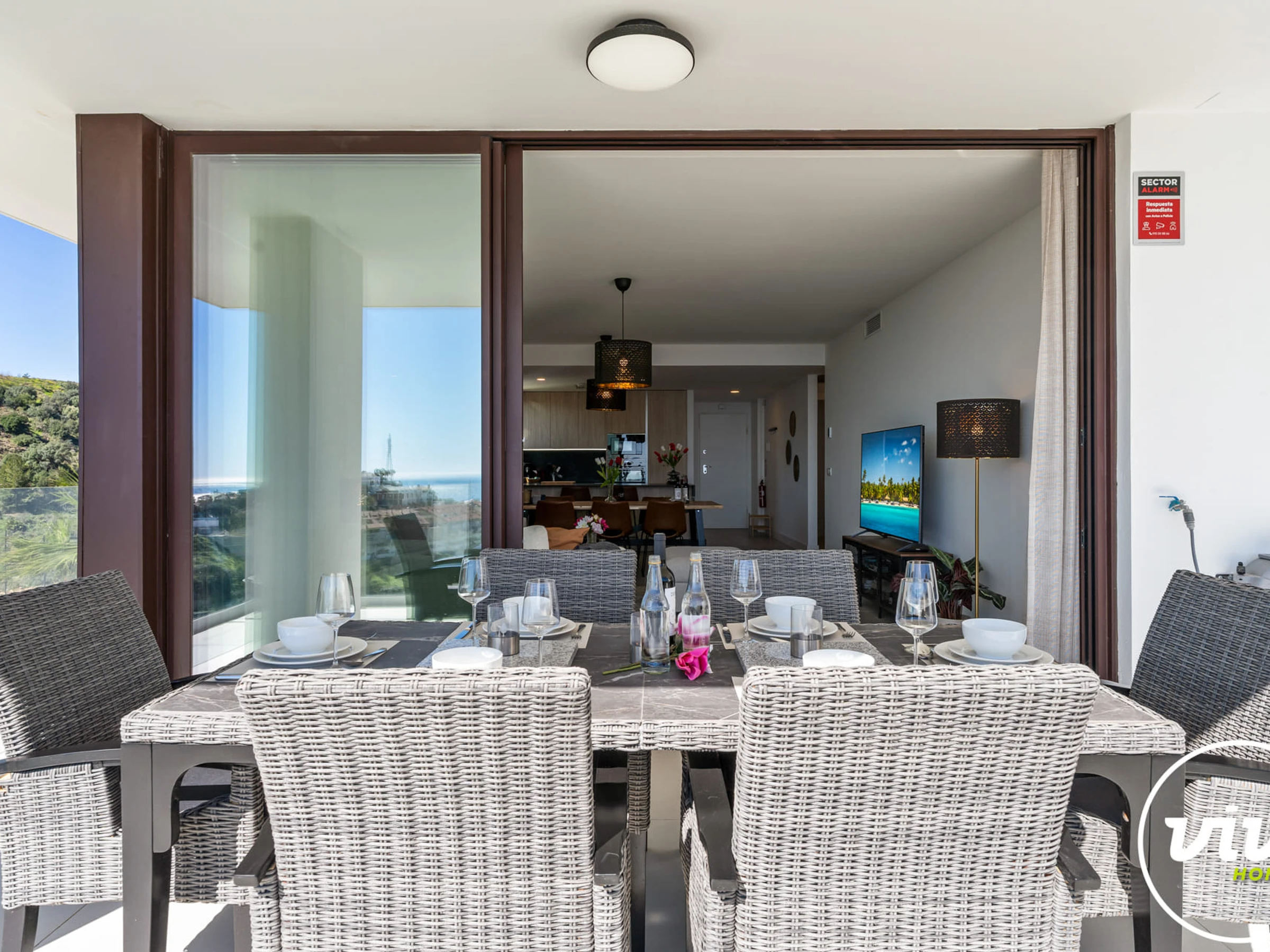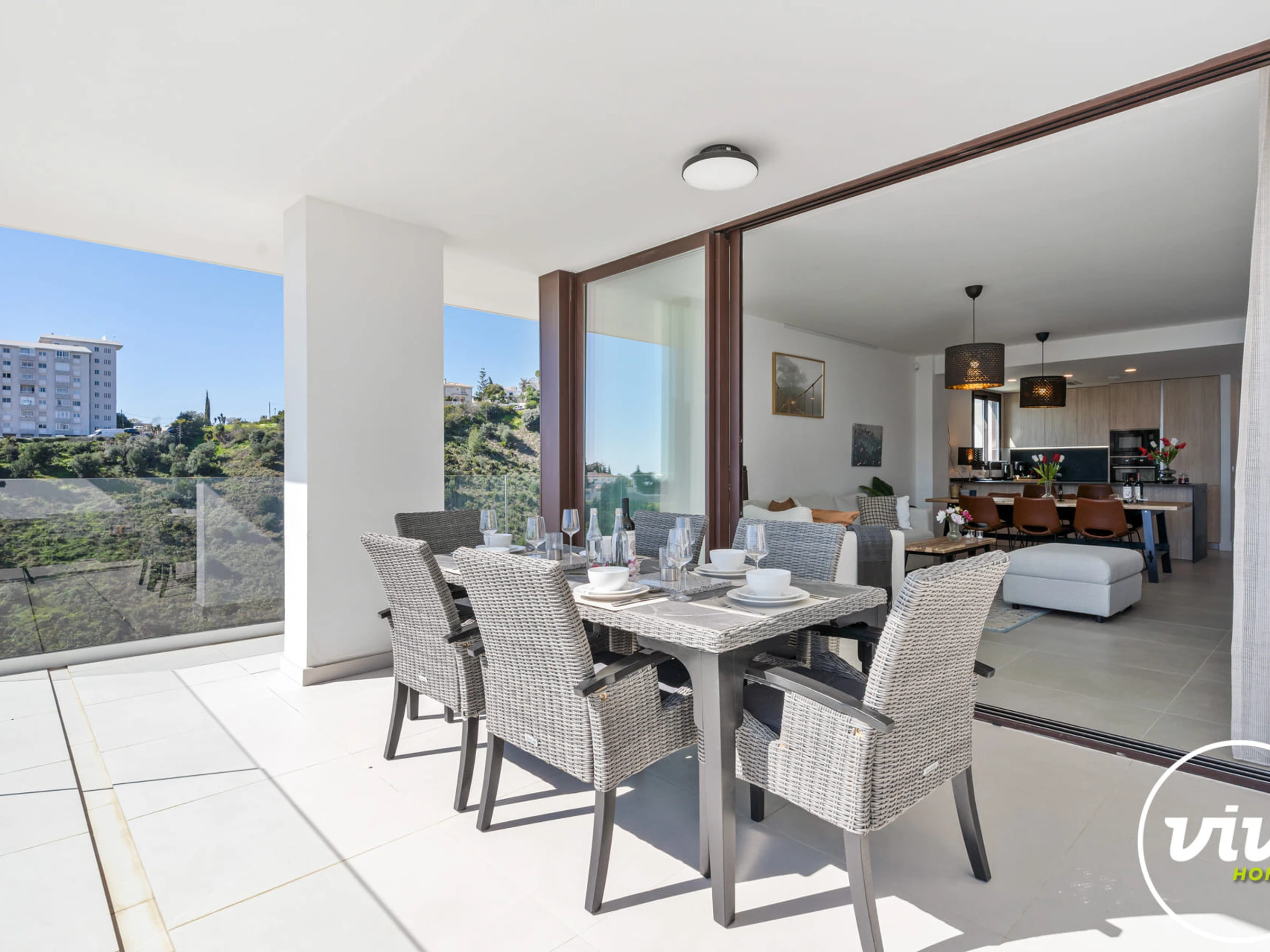 • Spacious terrace with open views towards the sea and communal pool