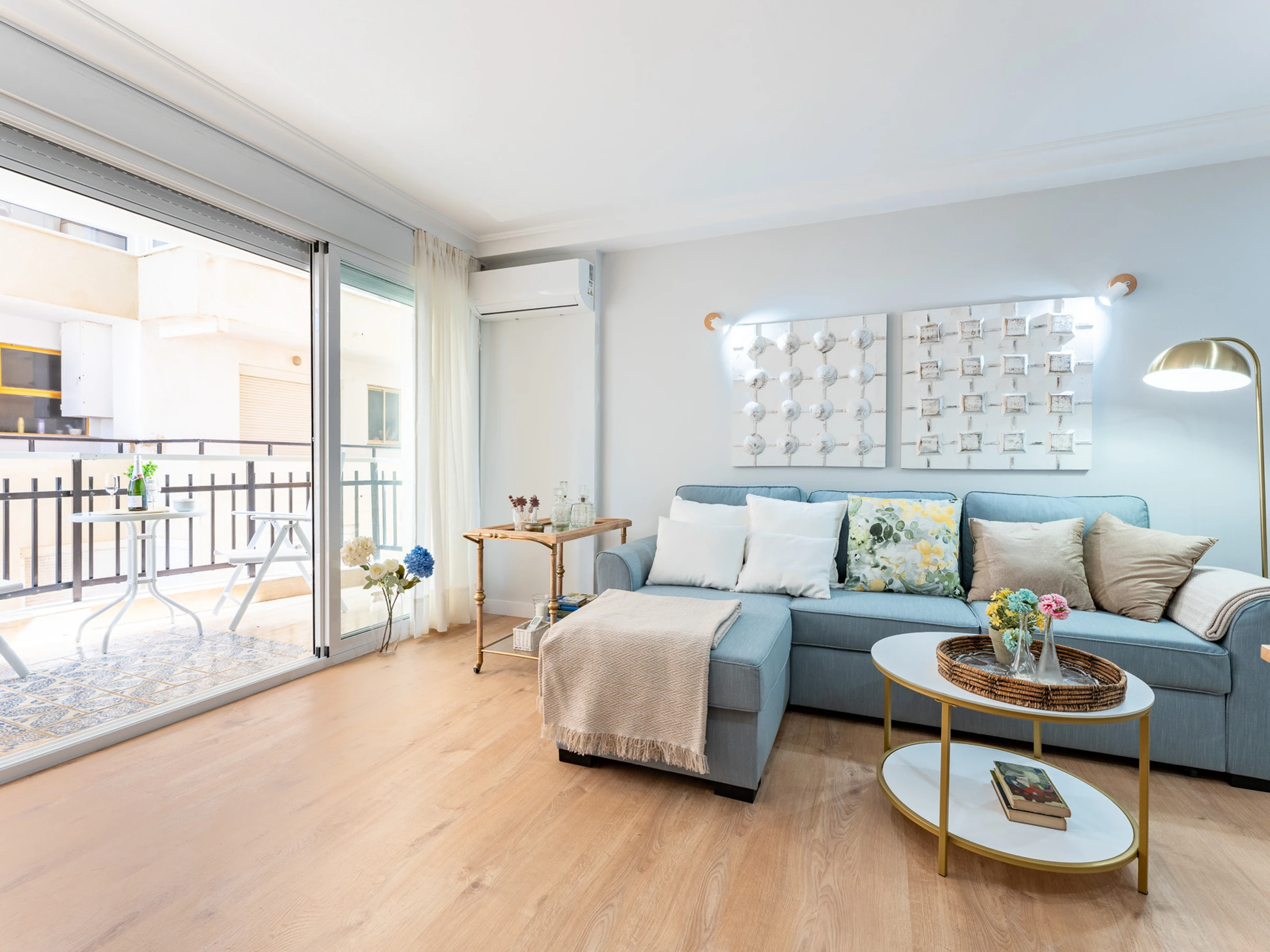 This cosy and bright flat is located in Fuengirola, on the beach front. It is perfect for families/friends. It can accommodate up to 6 people, has two bedrooms and a double sofa bed, here you can enjoy a quiet and relaxing holiday, offering all the comfort possible, as well as spectacular sea views from the terrace.