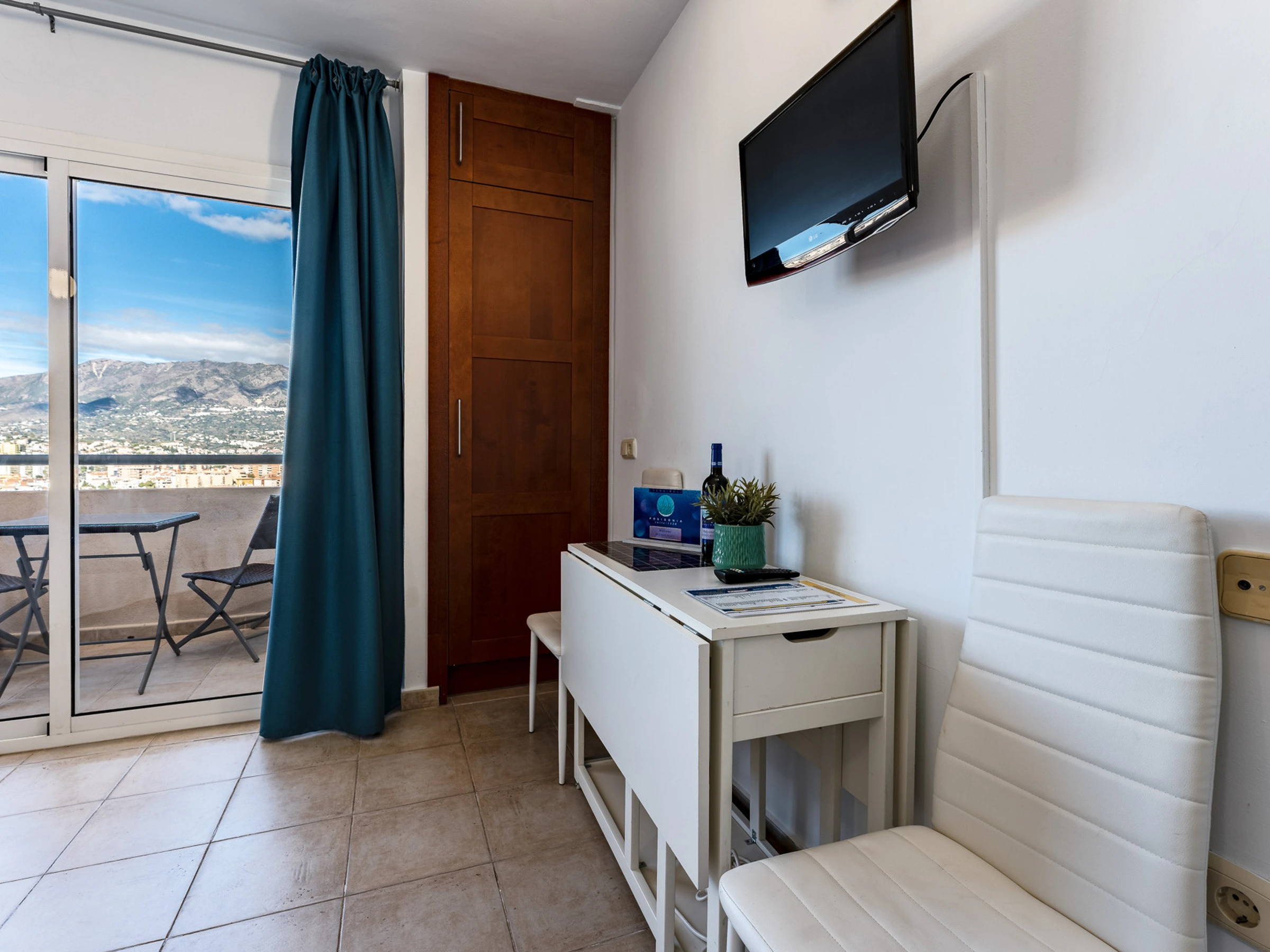 This room with capacity for 2 people is located on the 17th floor, has a terrace with incredible sea views. It has air conditioning, satellite TV and a private bathroom with a hairdryer, WiFi and a fully equipped kitchen.