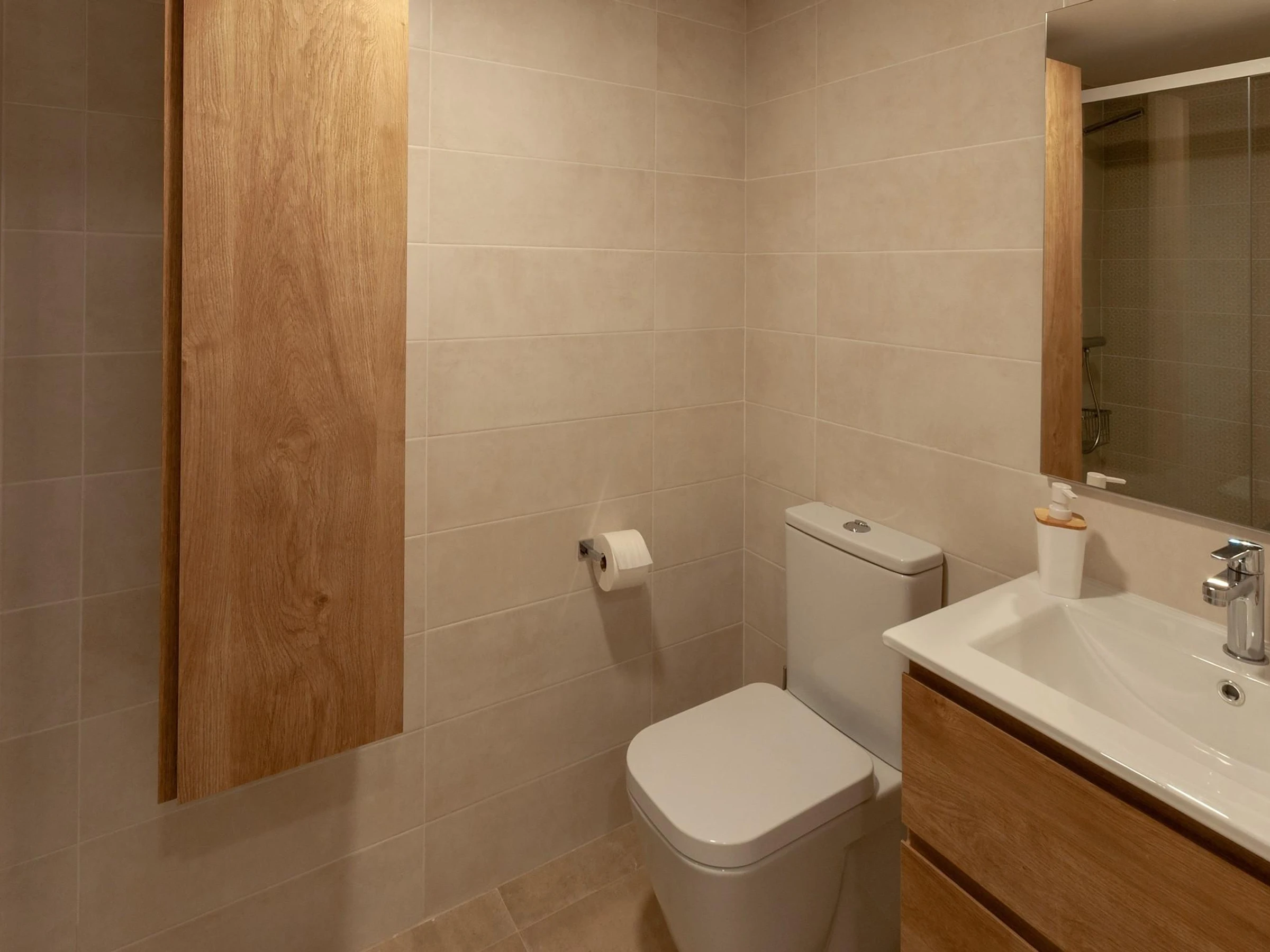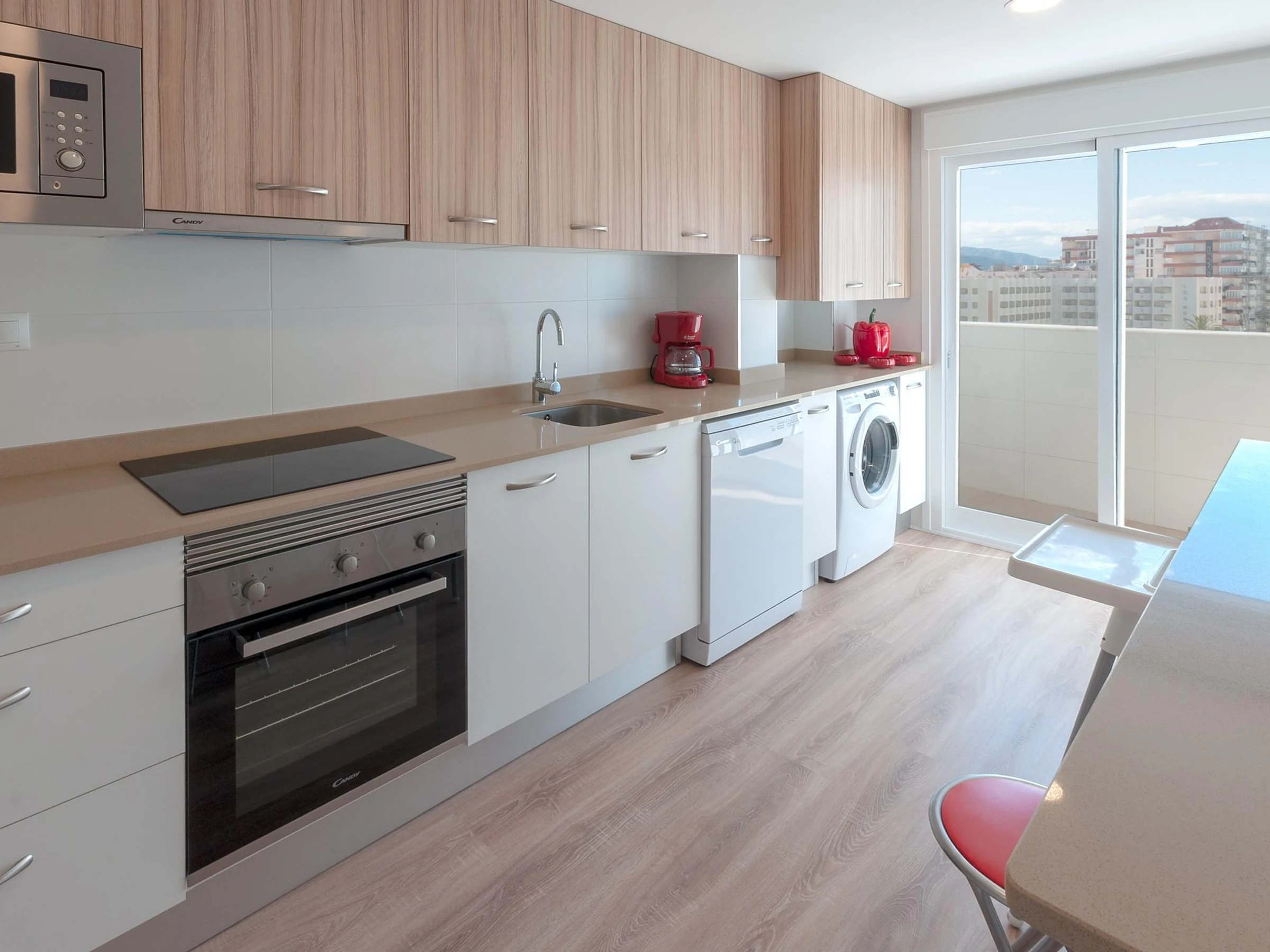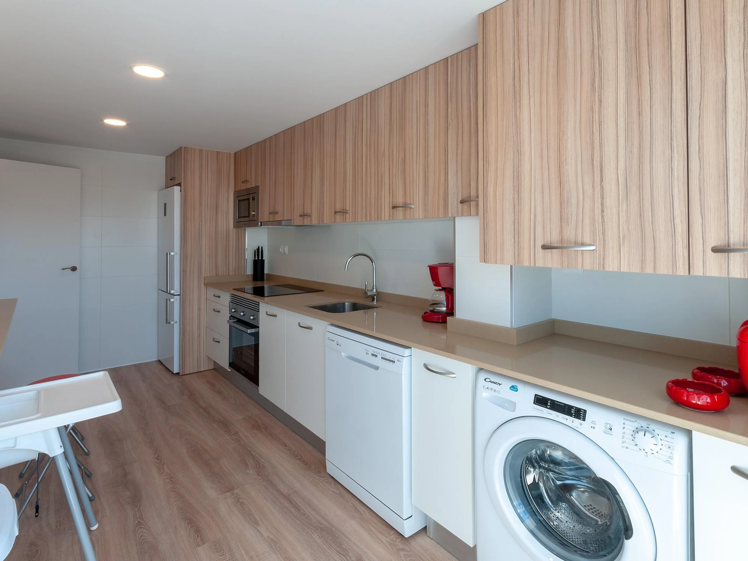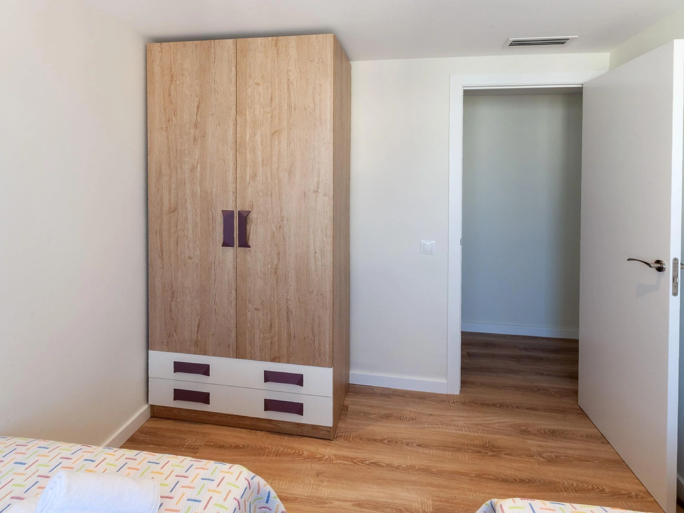 The interior of this eighth floor apartment with elevator gets, with its wooden flooring and its modern furnishing, a welcoming atmosphere for our guests to feel like if they were at home. The living-dining room is ideal to have lunch or dinner all together and then chat, while watching the TV. The kitchen is an independent room and it is equipped with induction cooktop, oven and other utensils, and it is where you can find the washing machine, the iron and the ironing board. This house also has two bathrooms with shower and three dormitories, all of them equipped with a wardrobe. One of them has a double bed, the second one has two individual beds and the last one just an individual bed and a bunk bed that, at the same time, it is a truckle bed, which is why this dormitory has a capacity for up 4 people. A cot and a high chair can also be provided. Regarding to the acclimatization, there is a ducted air-conditioner all over the house, as well as two radiators at your disposal.