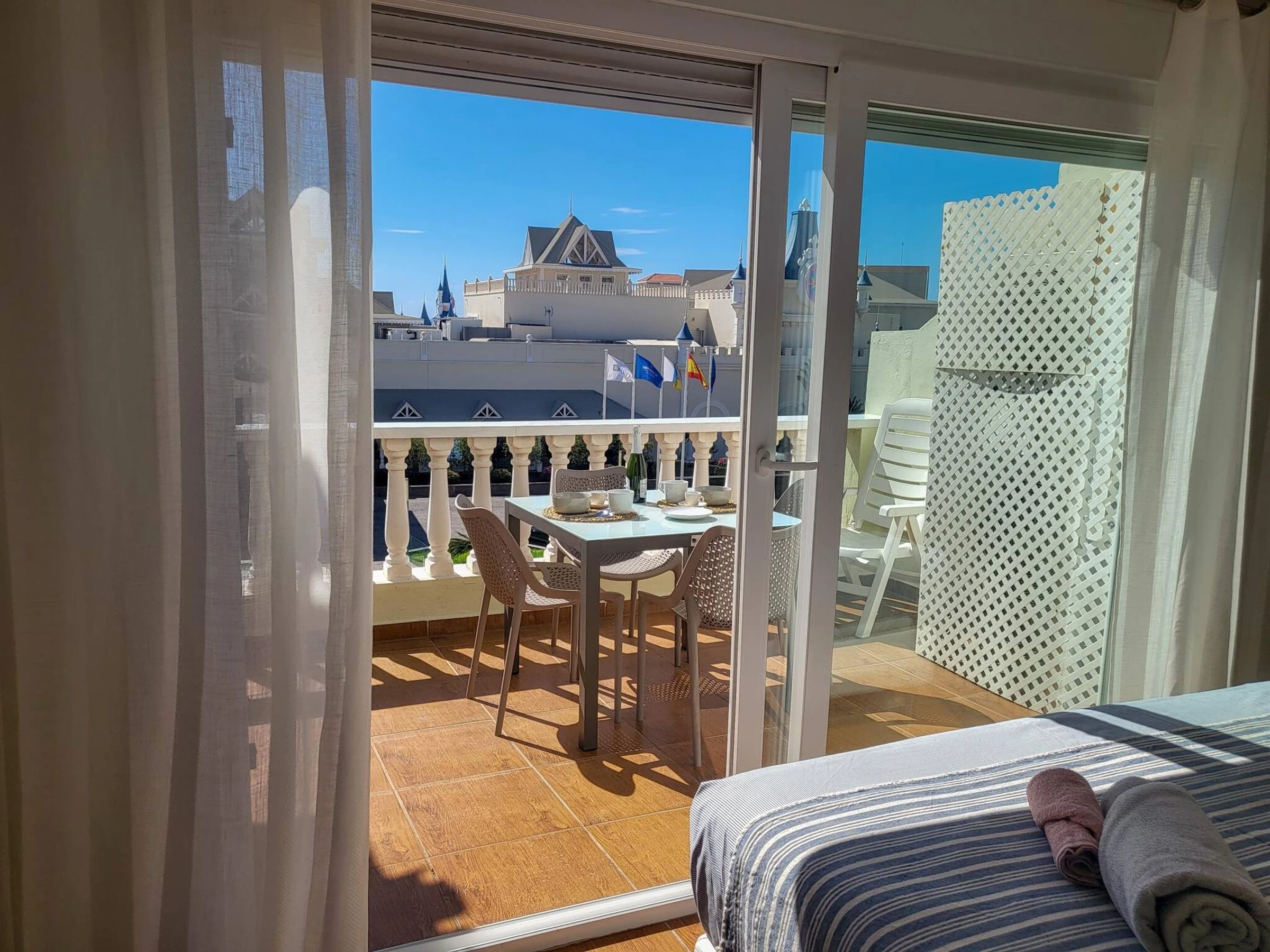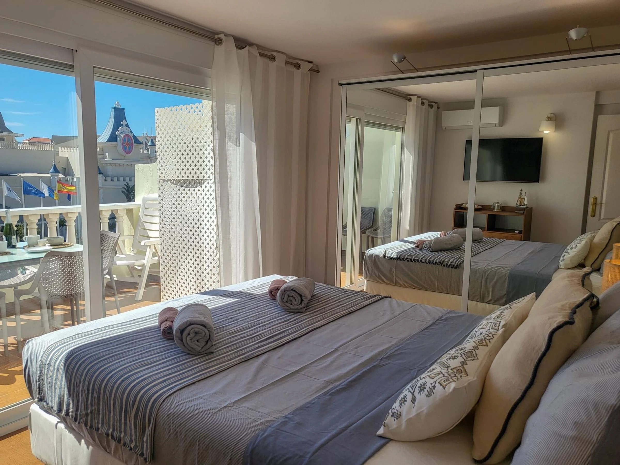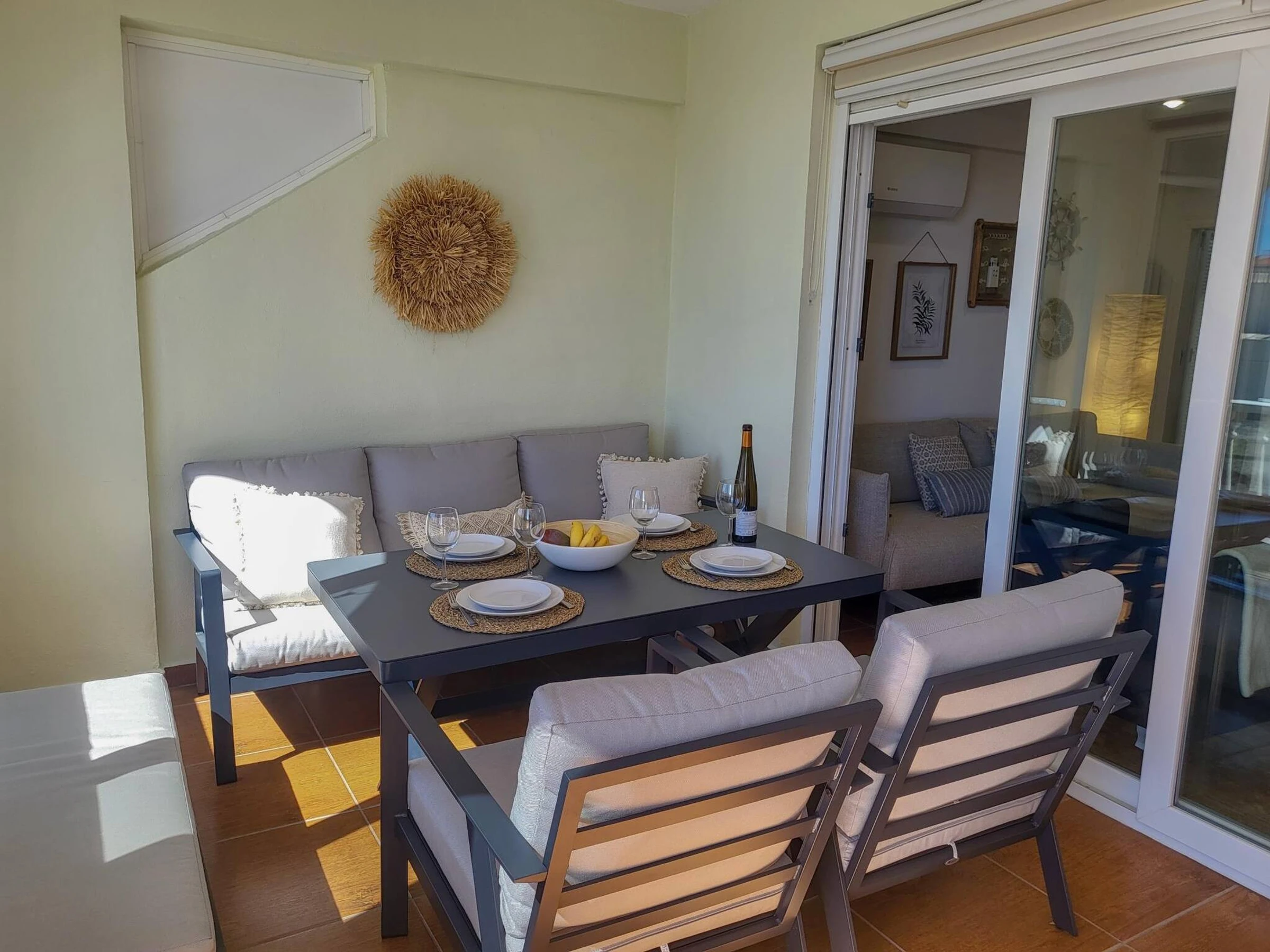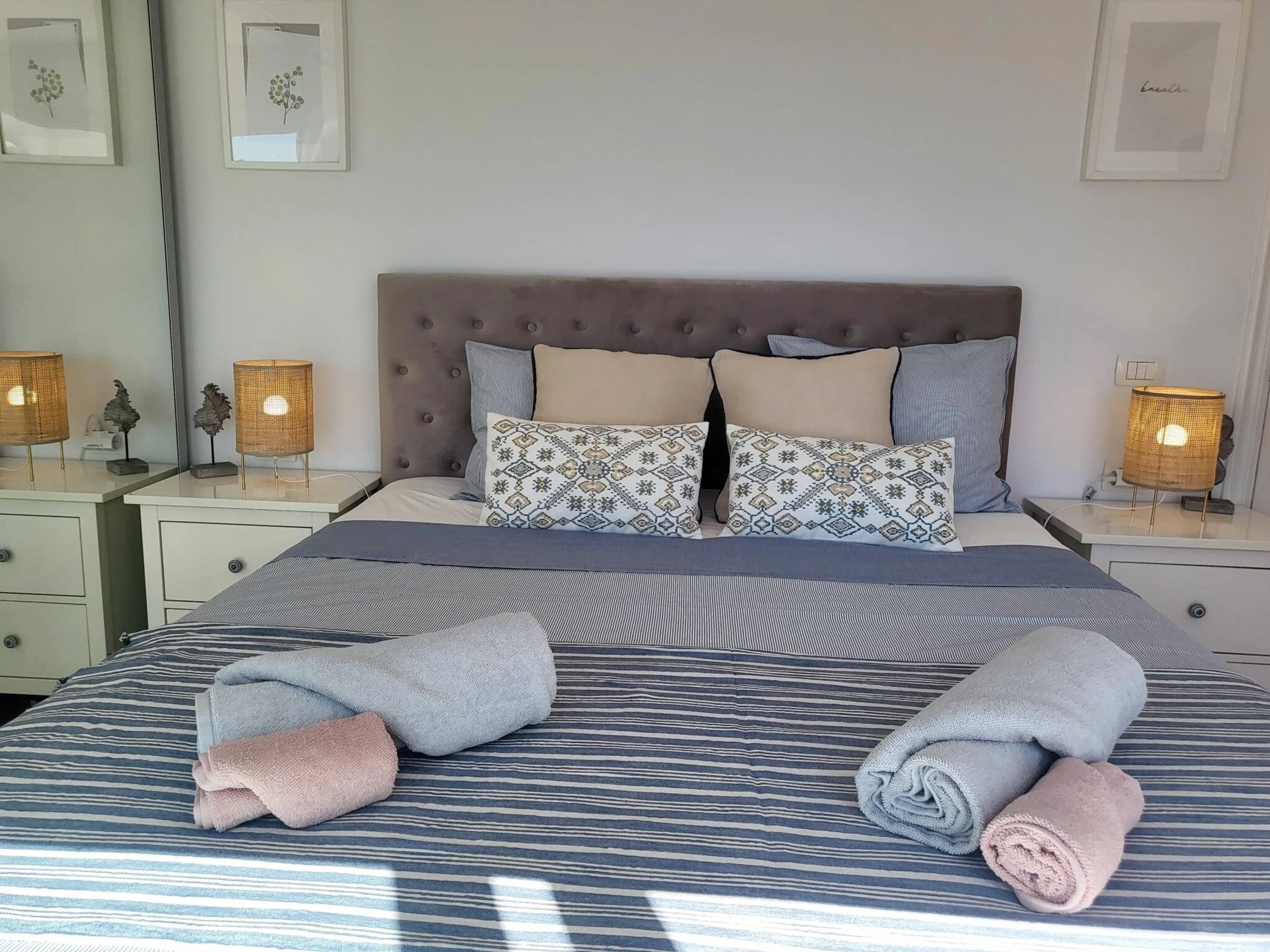 It is a spacious flat with 3 bedrooms and 2 bathrooms. One of the bedrooms with a double bed and a small terrace, and the other two with 2 single beds each. It has a large kitchen with a dishwasher and a tap with filtered water. A lounge with seating area and dining table. There is also a small terrace where you can have breakfast with a view of the sea.