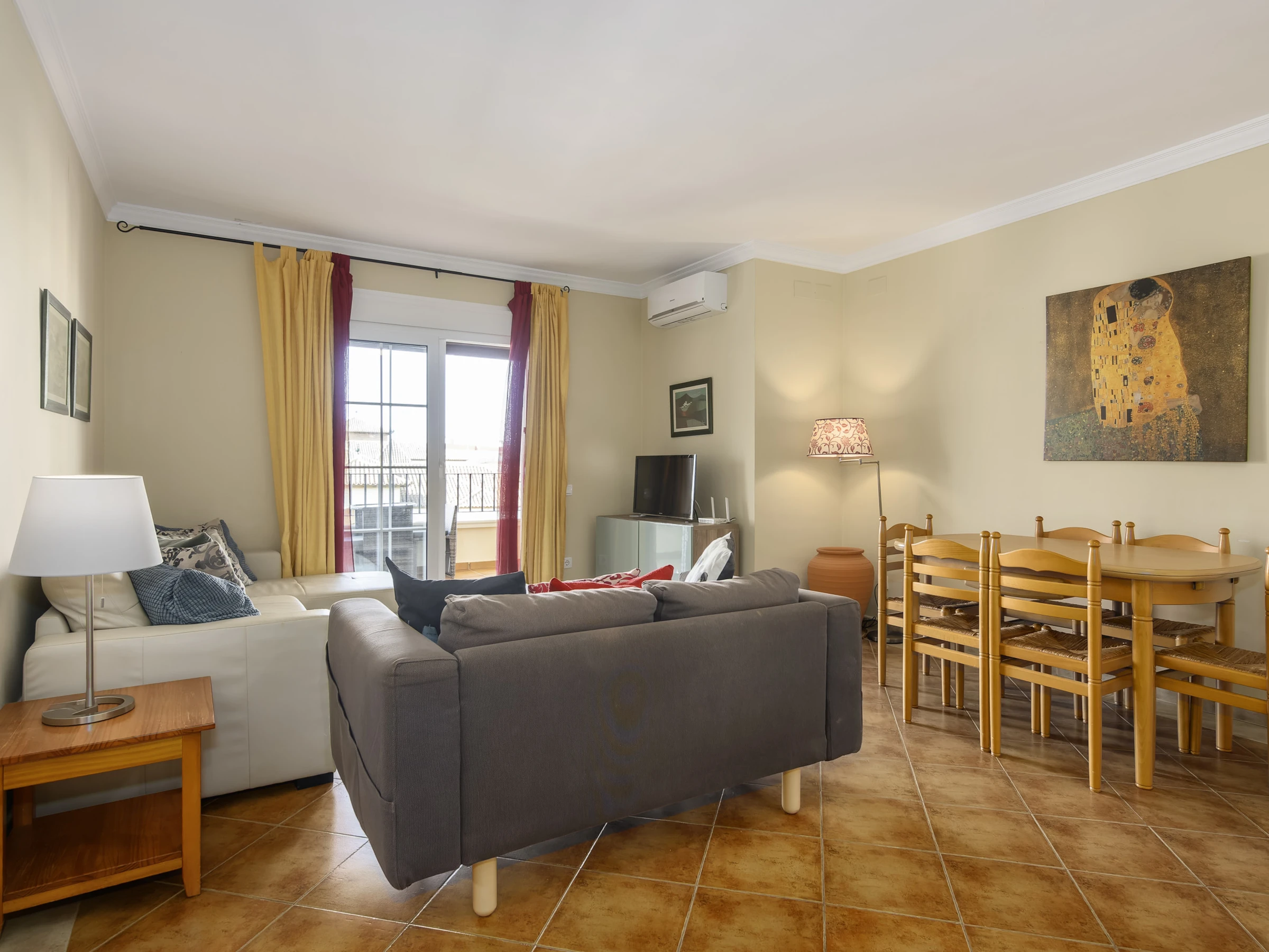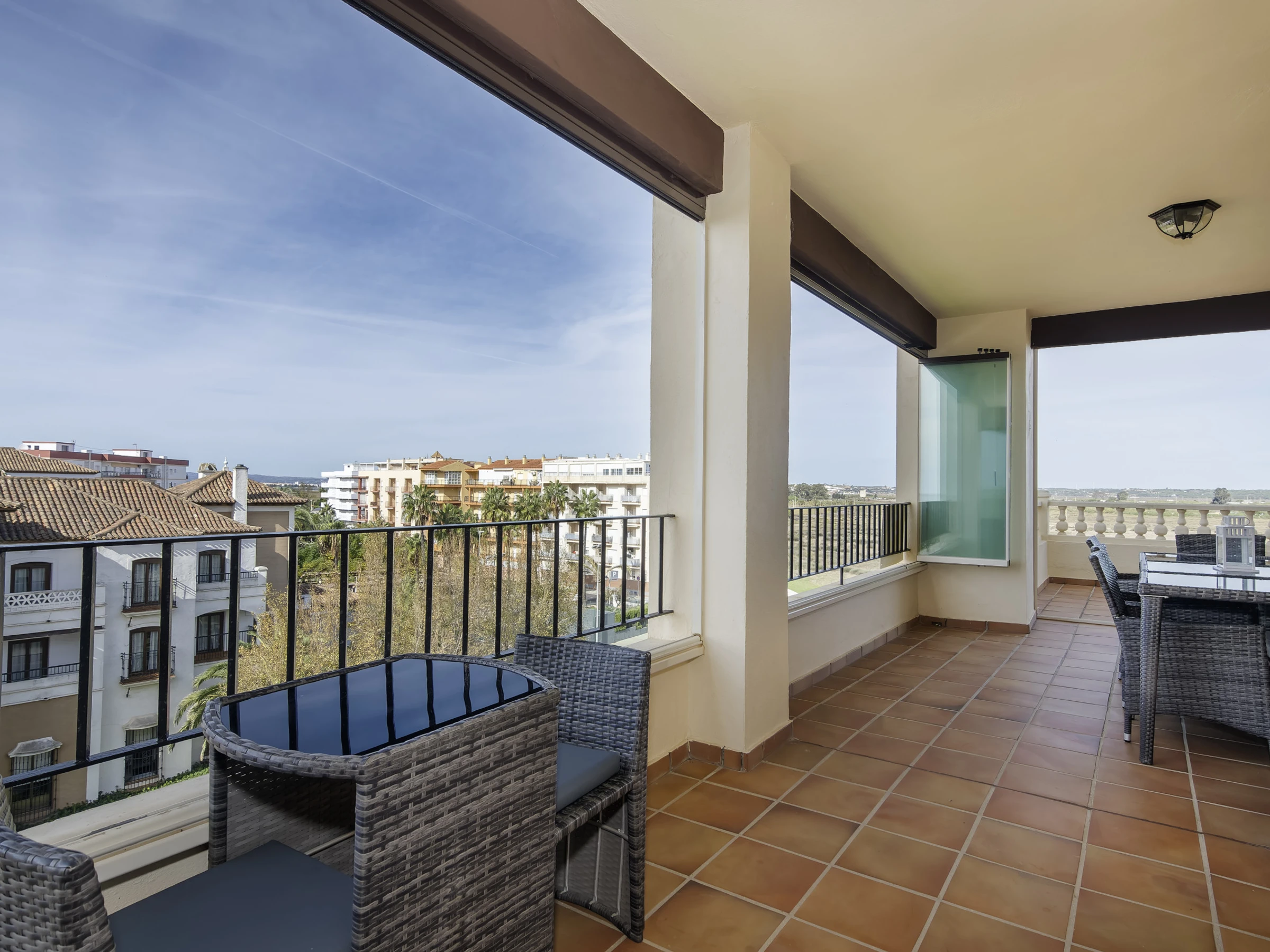 The accommodation is equipped with the following items: lift, garden furniture, fenced garden, 25 m² terrace, washing machine, iron, internet (Wi-Fi), hair dryer, childrens area, tennis court, paddle tennis court, electric heating, air conditioning throughout the house, swimming pool communal+children's, covered parking in the same building, TV.