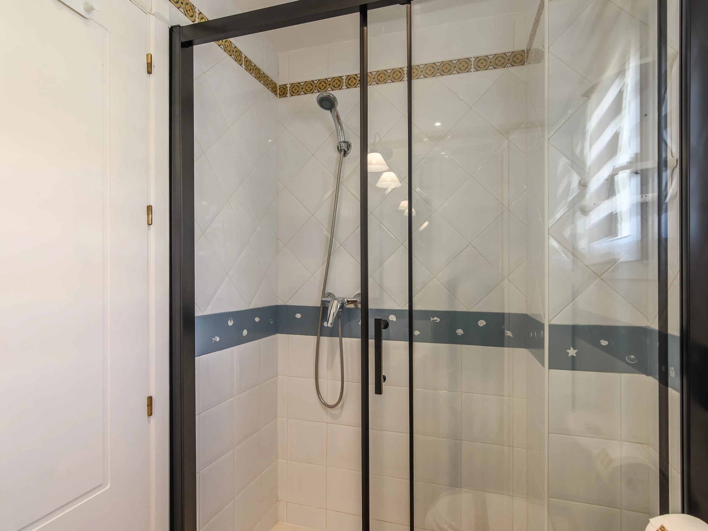 The accommodation is equipped with the following items: lift, terrace, washing machine, iron, internet (Wi-Fi), hair dryer, heat pump, air conditioning in the living room and in some bedrooms, swimming pool communal+children's, covered parking in the same building, 2 TVs.