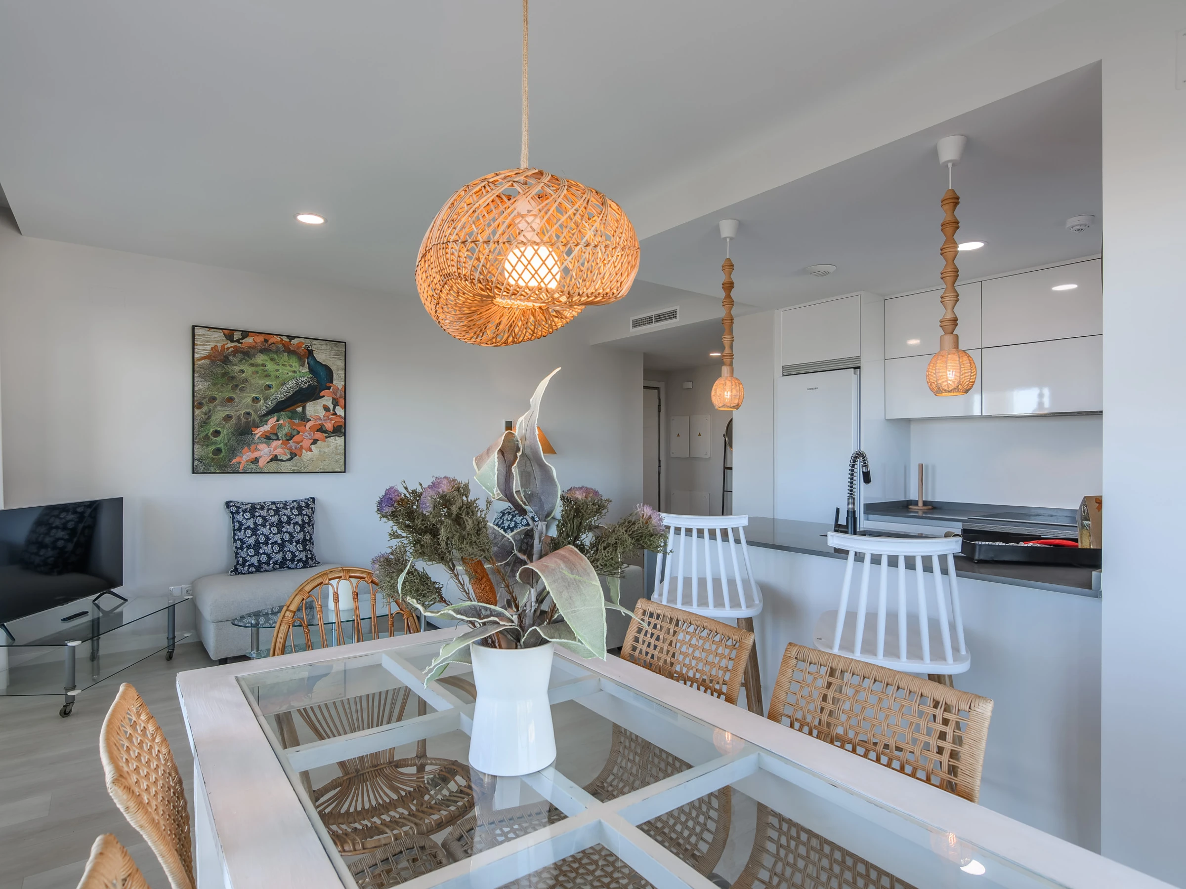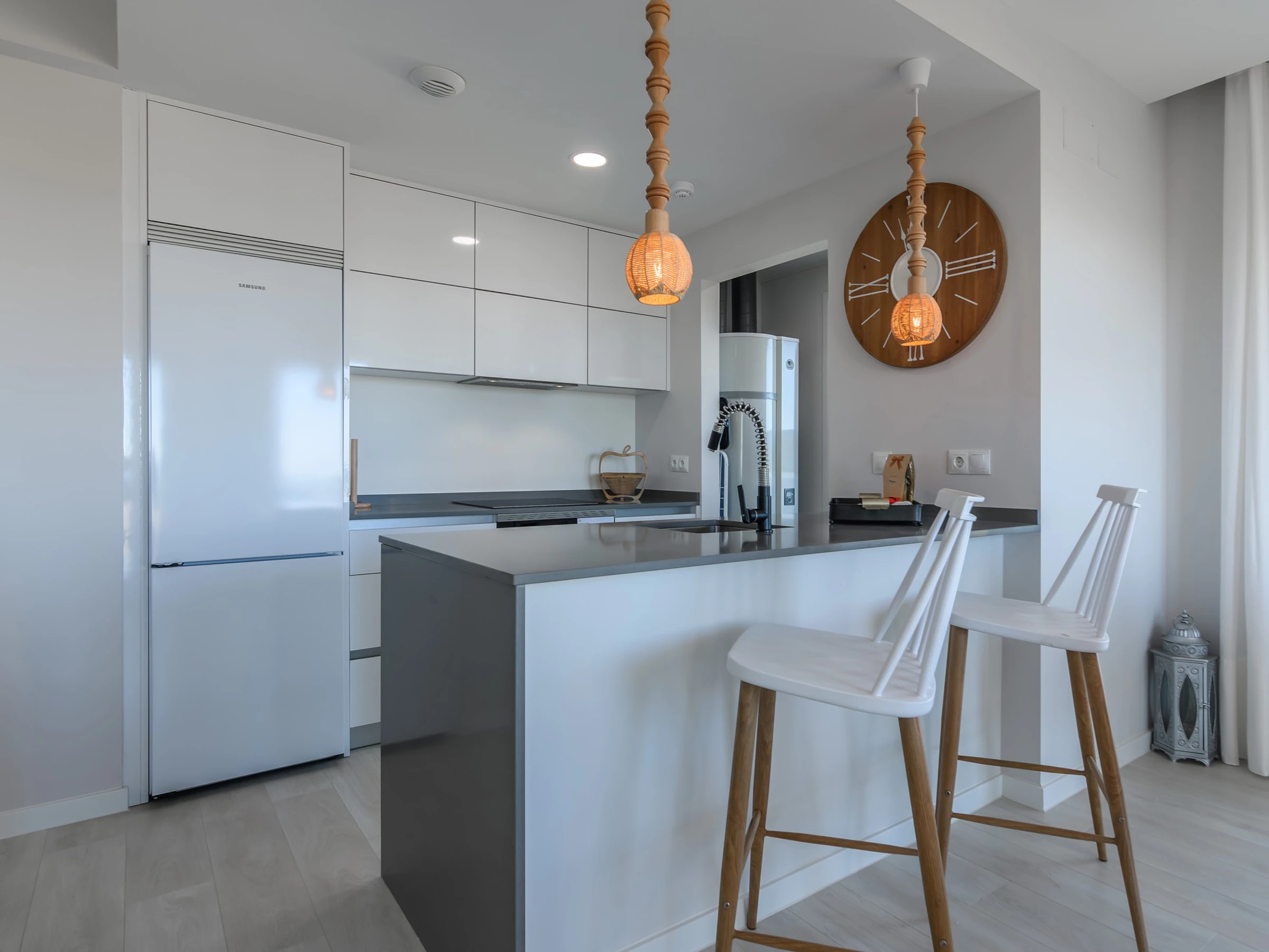 The American kitchen is fully equipped with state-of-the-art appliances, including washing machine, dryer, dishwasher, oven, microwave and a complete set of kitchenware. Additionally, it has WiFi connection and an iron for greater comfort. The accommodation stands out for its 35m² terrace and enclosed garden, perfect for enjoying outdoor moments.