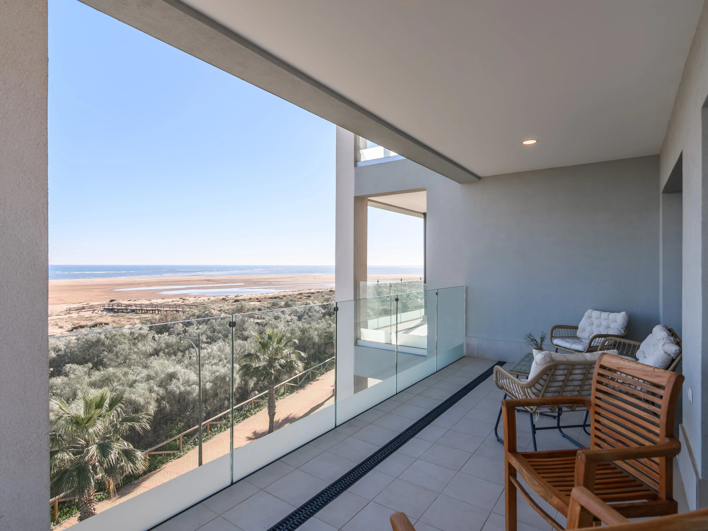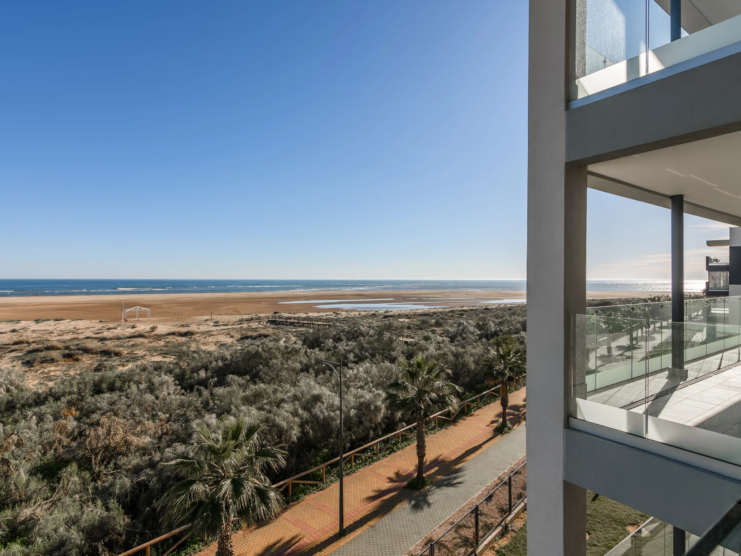 Its location is unbeatable, situated on the first line of Haraganes Beach and in an ideal area for families with children. It has a covered private parking and is close to services such as the Ayamonte bus station, 7 km away. The surroundings offer sea views and are close to golf courses, making it a perfect destination for versatile holidays.