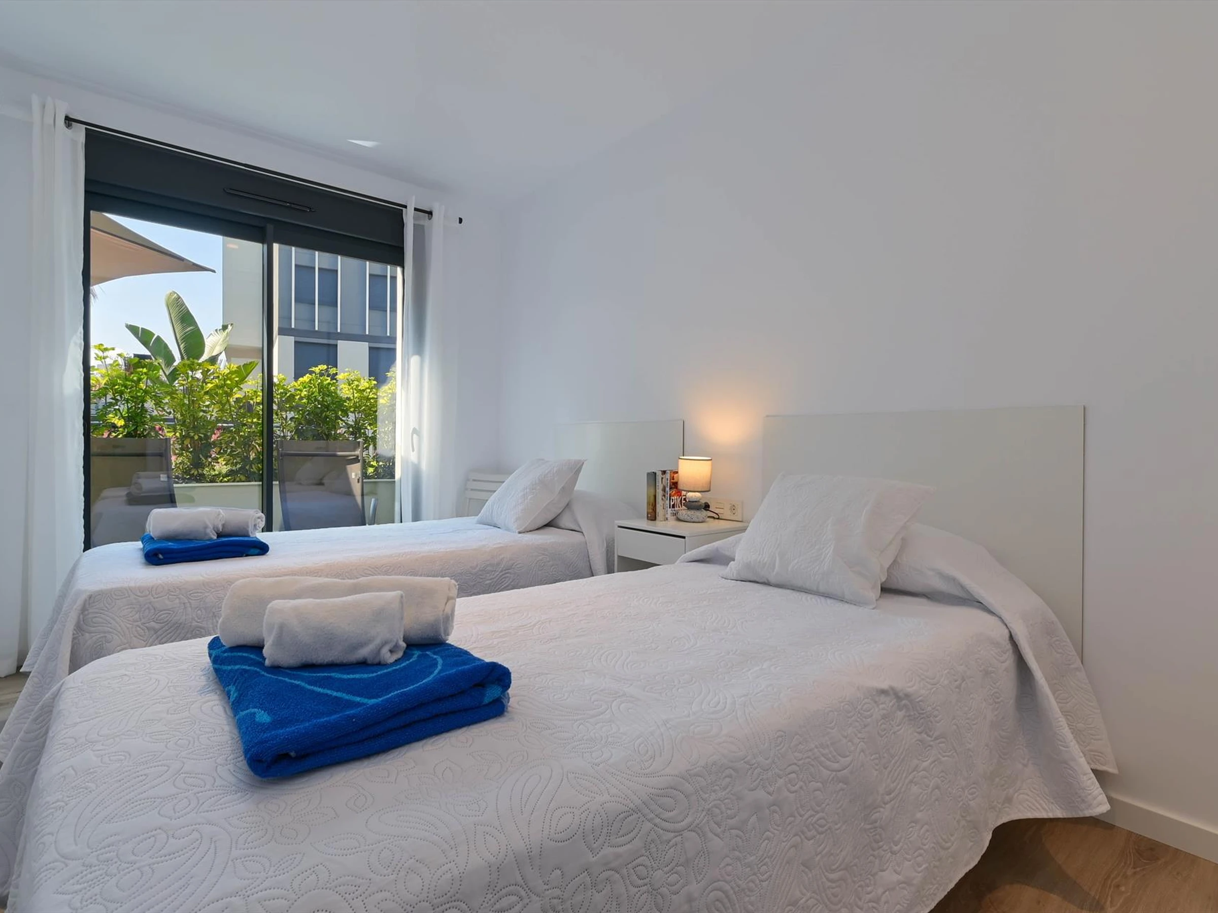 The apartment has 2 bedrooms and 2 bathrooms. The accommodation offers privacy and a communal garden with trees. Its comfort and the vicinity of the beach, places to shop, sports activities, entertainment facilities, places to go out, sights and culture make this an ideal apartment to spend your holidays in Spain with family or friends.