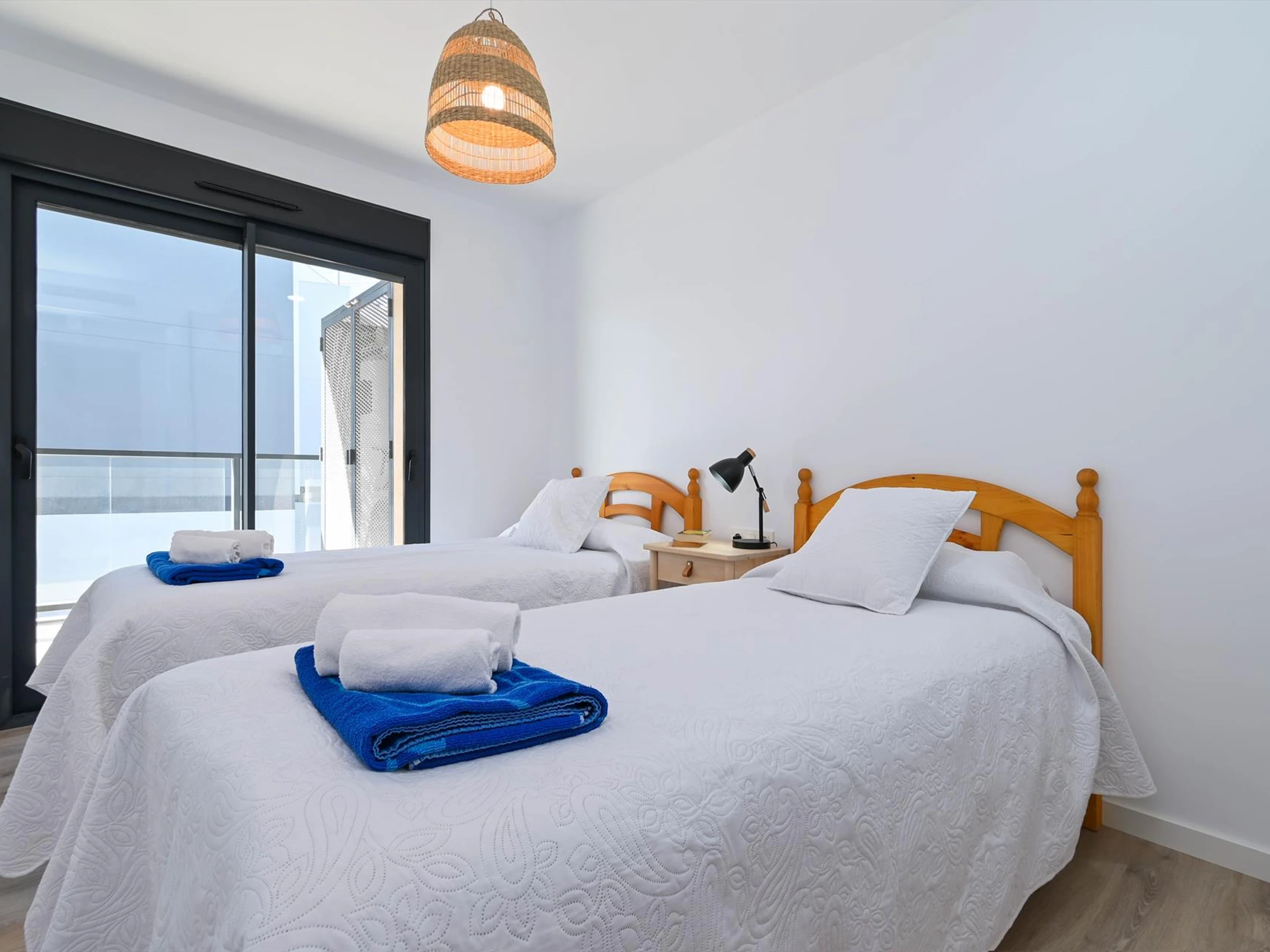 The apartment has 3 bedrooms and 2 bathrooms. The accommodation offers privacy and a communal garden with trees. Its comfort and the vicinity of the beach, places to shop, sports activities, entertainment facilities, places to go out, sights and culture make this a fine apartment to spend your holidays in Spain with family or friends.