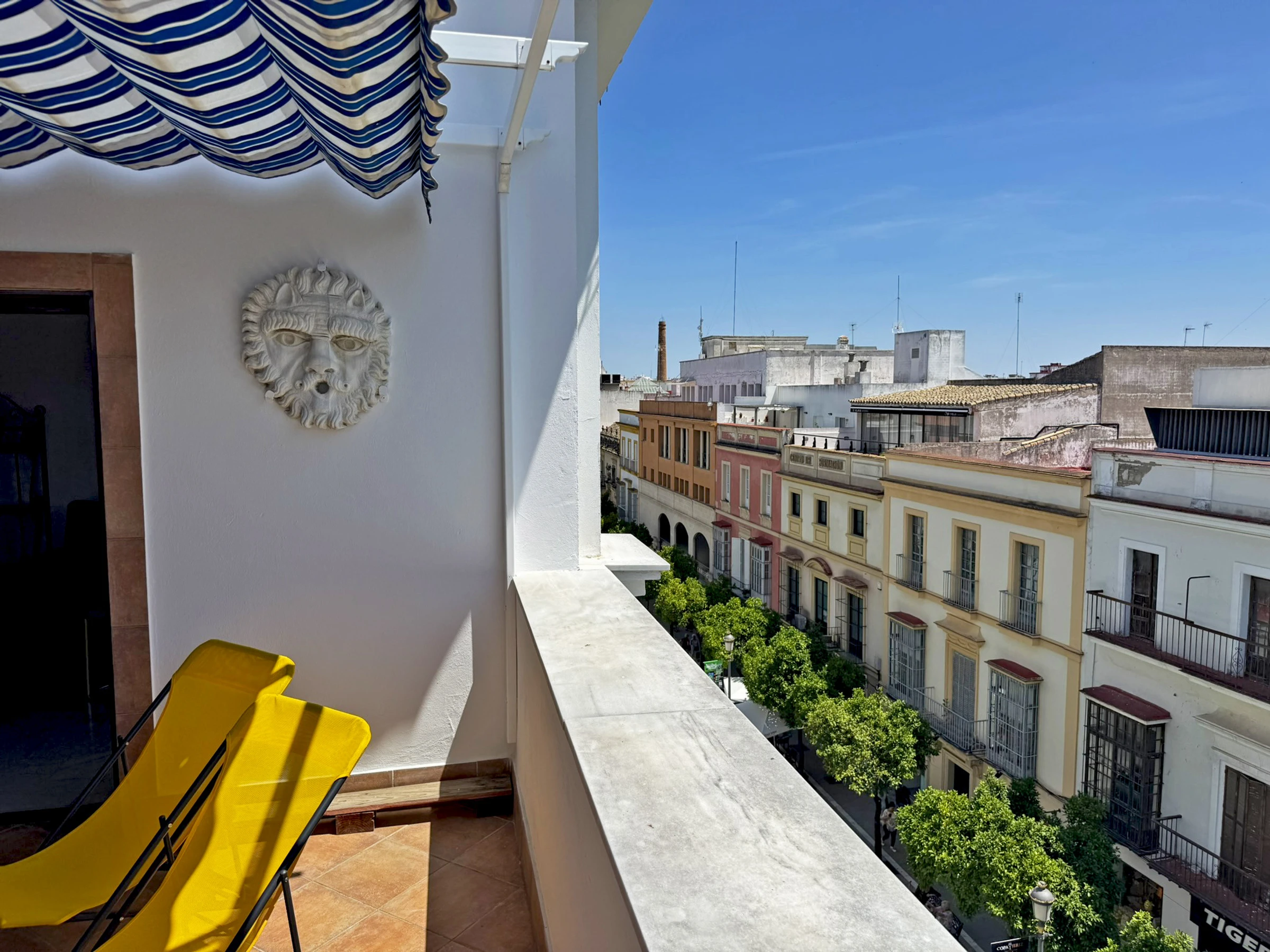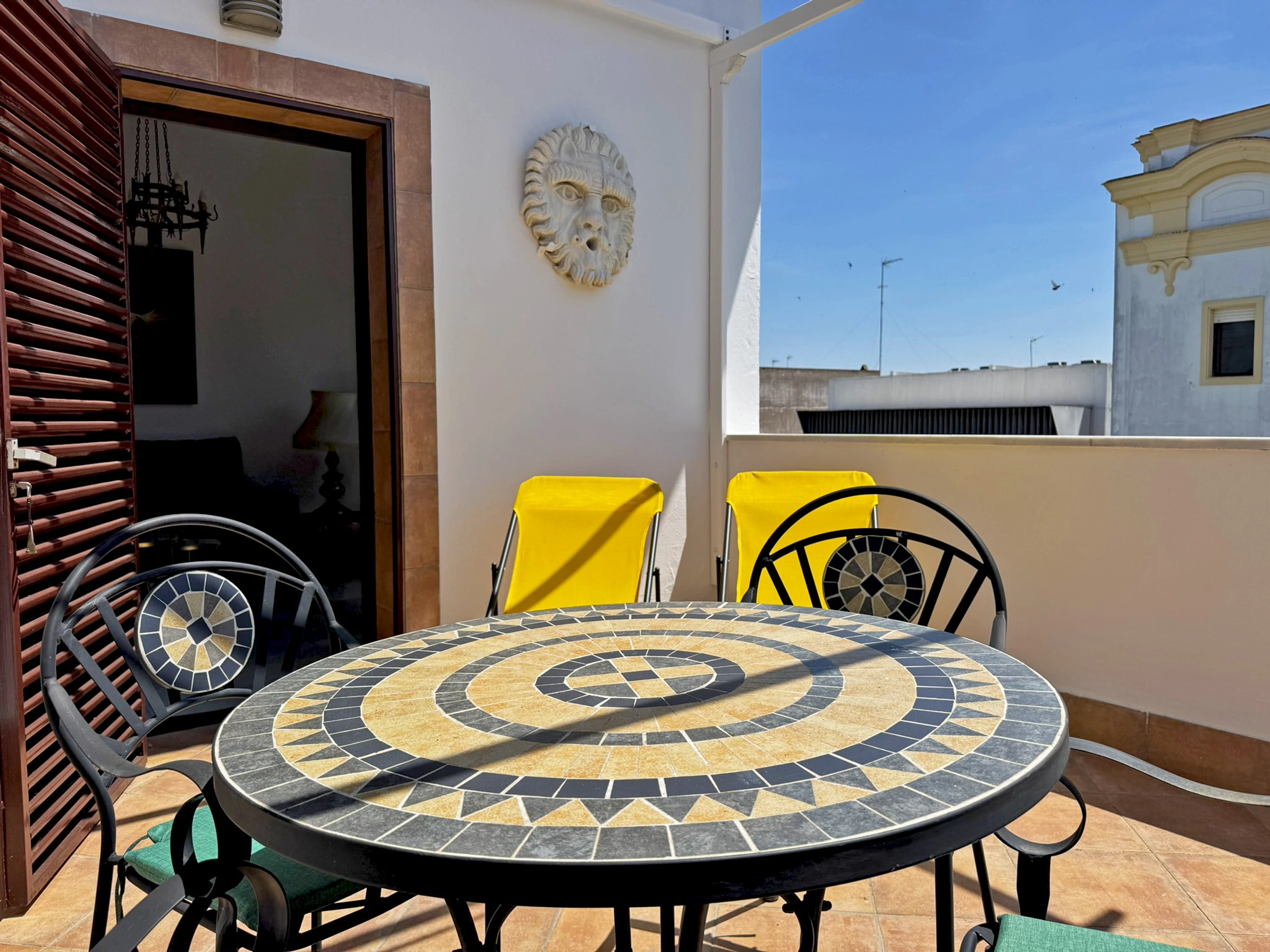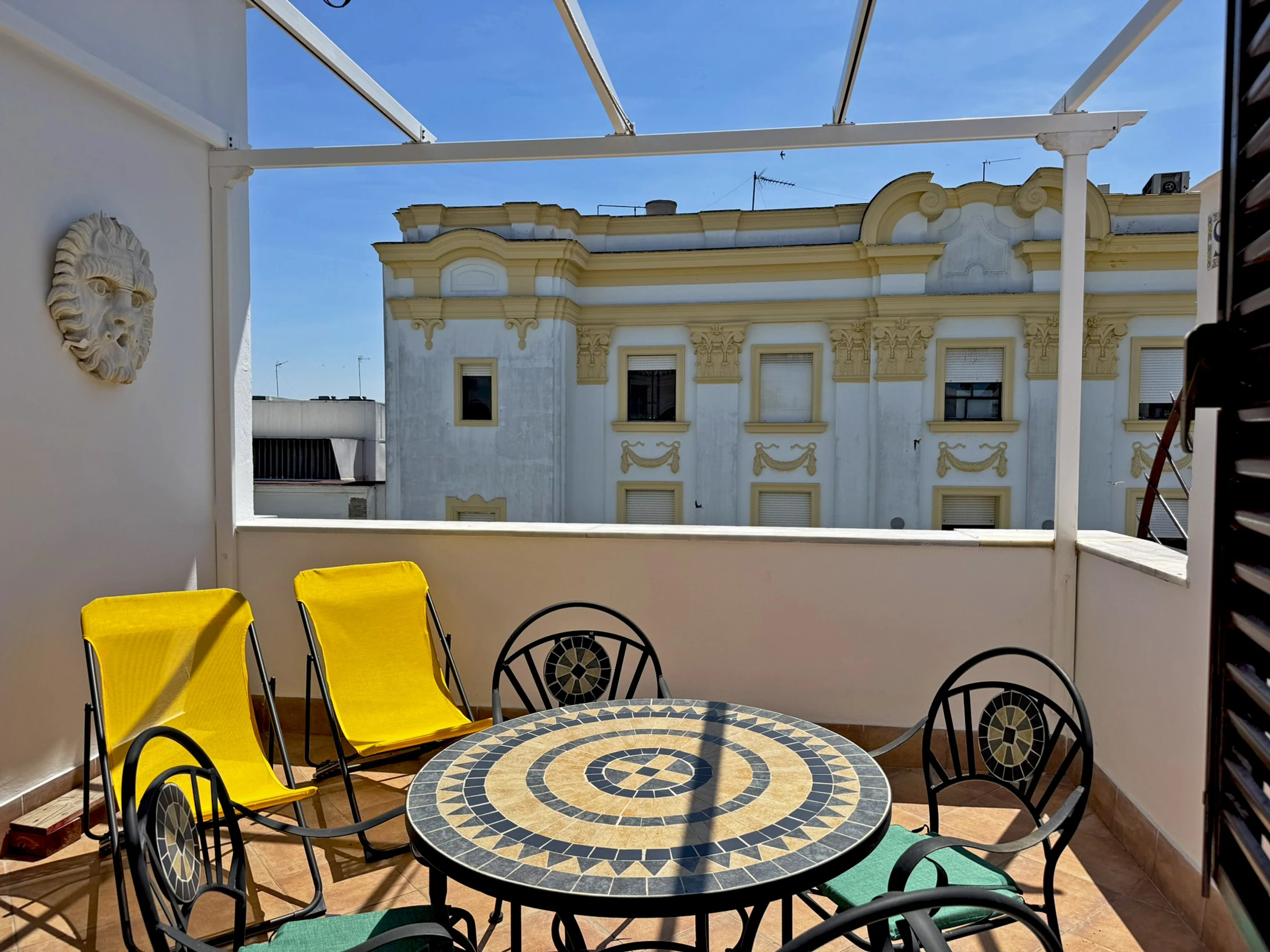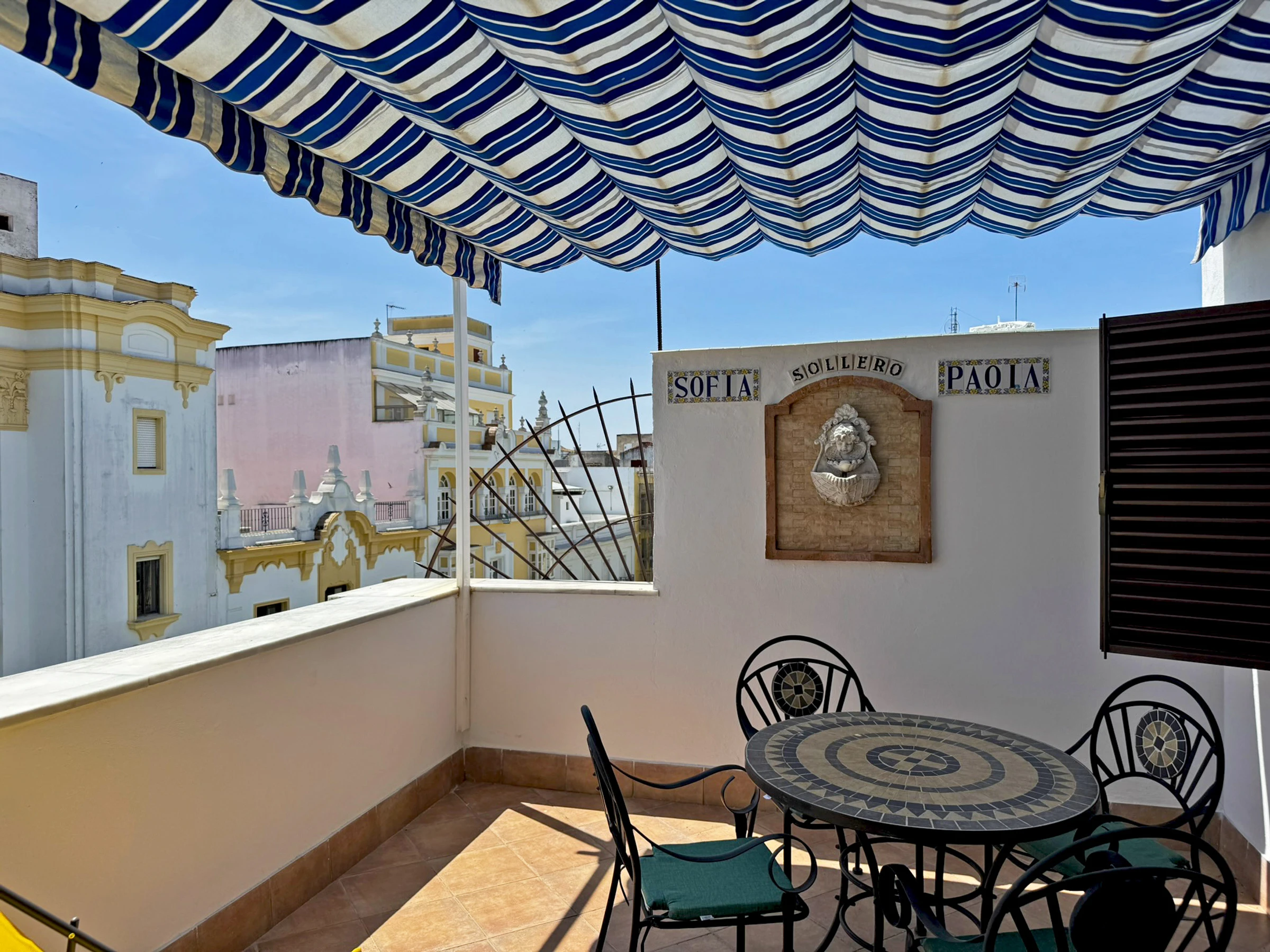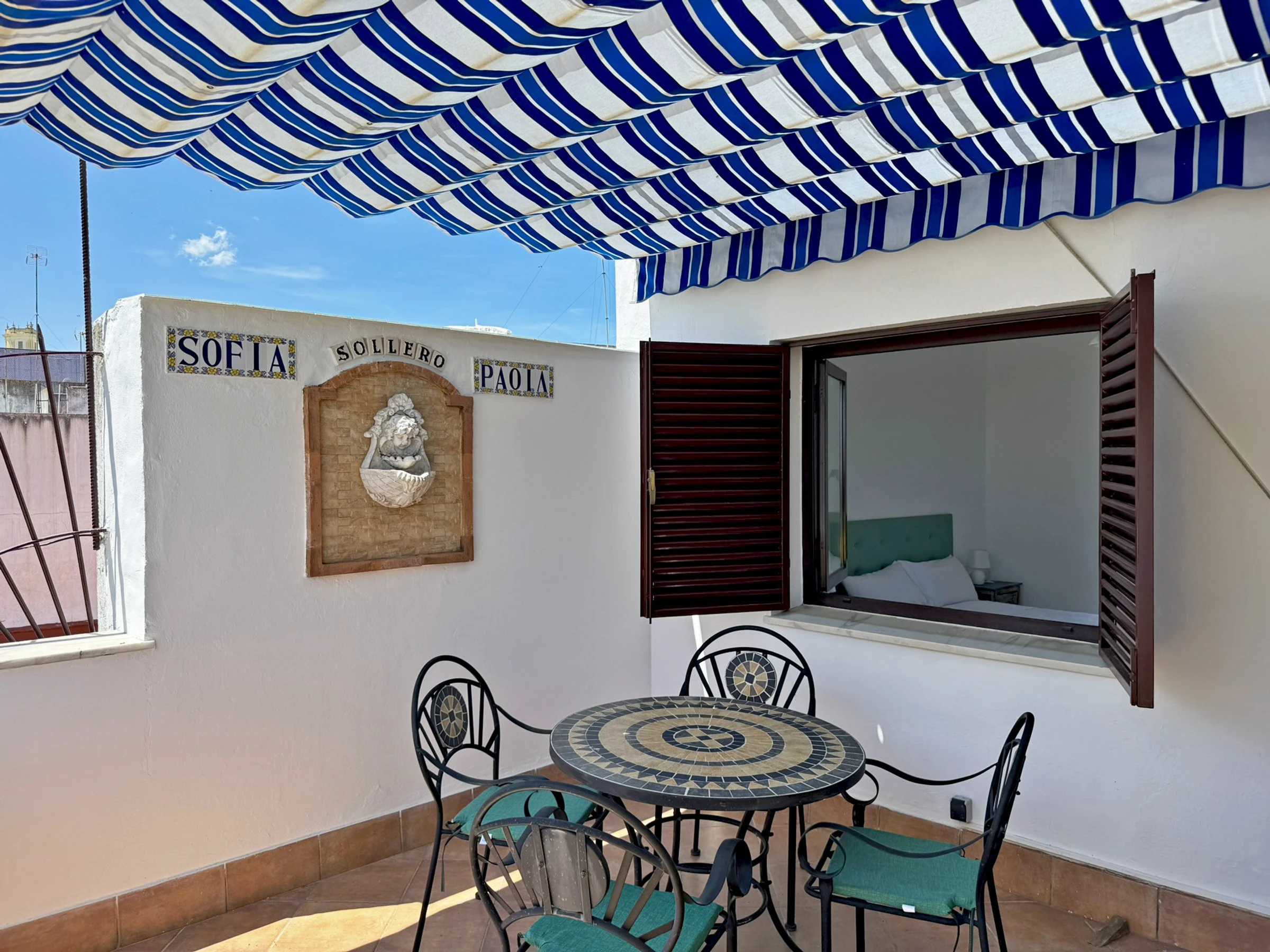 One of its greatest attractions is the private solarium: a cosy terrace equipped with two sun loungers, ideal for sunbathing, disconnecting or enjoying a drink at sunset. From there, you can contemplate beautiful views of the iconic Calle Larga, all with total privacy.