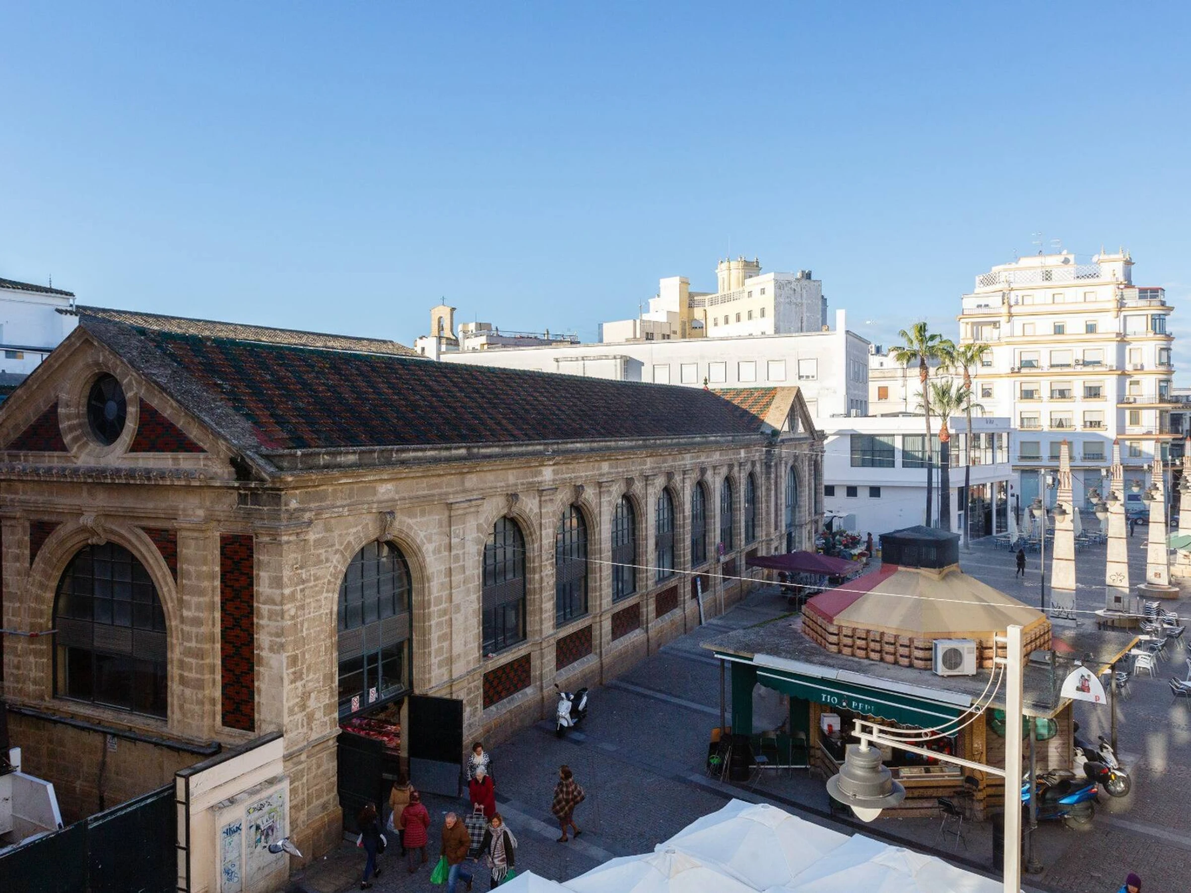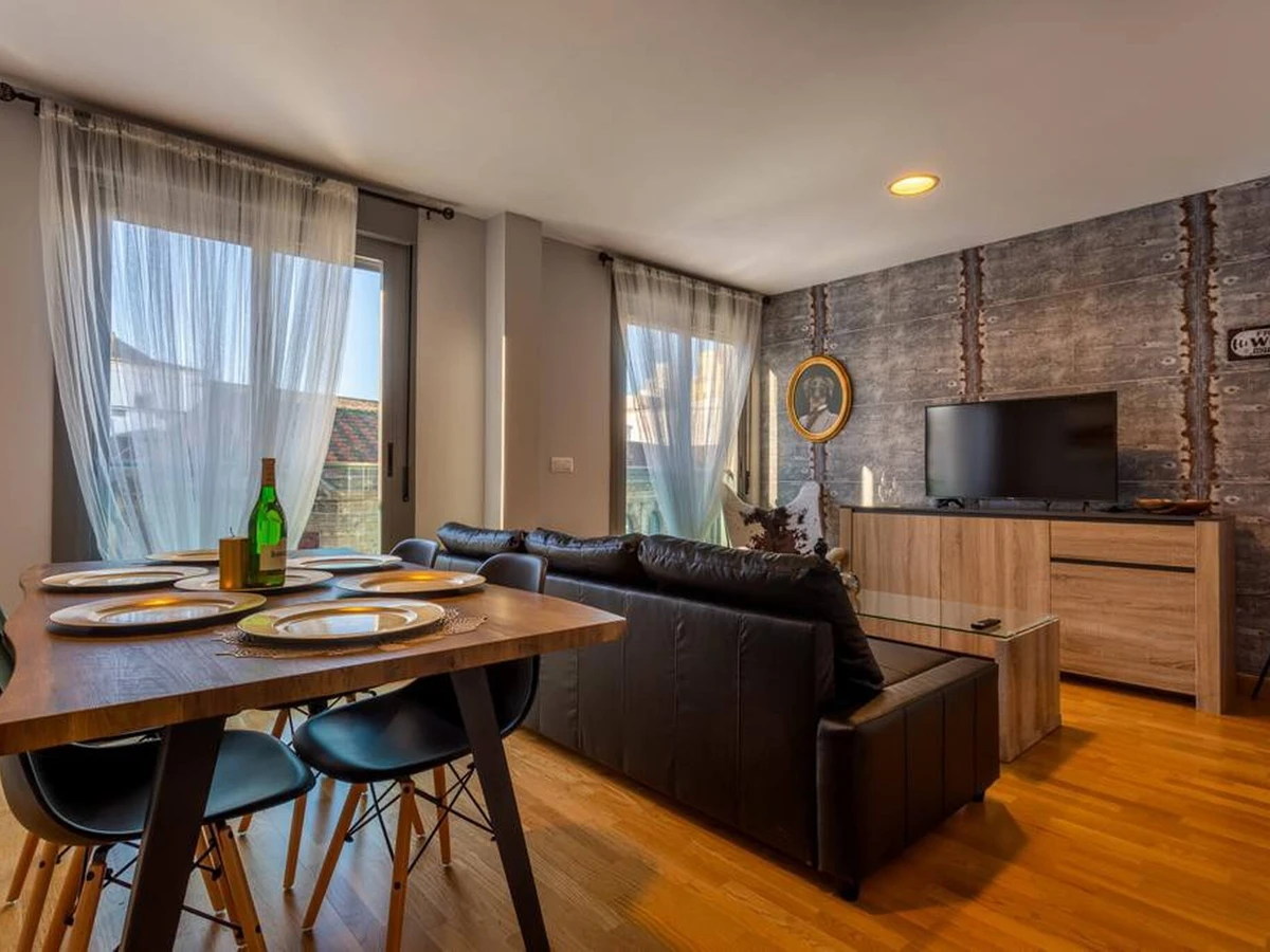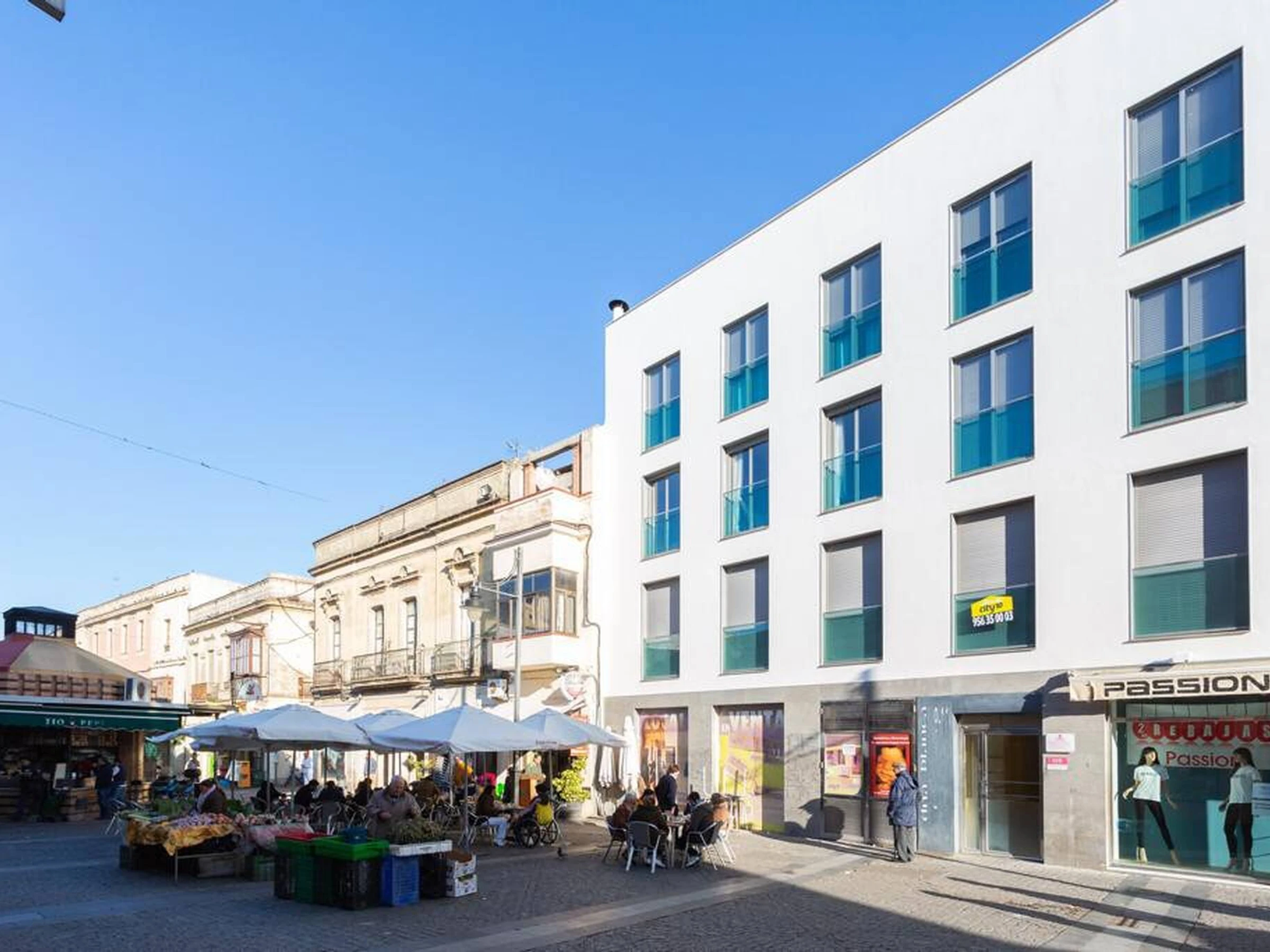 Welcome to this charming apartment in the heart of Jerez de la Frontera! Perfect for up to 4 people, this modern and comfortable apartment features two cosy bedrooms, a full bathroom and a spacious living-dining room offering spectacular views of the Abastos Market, one of the city's most emblematic places. From the bedroom and living room, you will enjoy a unique panoramic view that will make your stay even more special. It has an independent kitchen equipped with all appliances, television, internet connection and air conditioning.