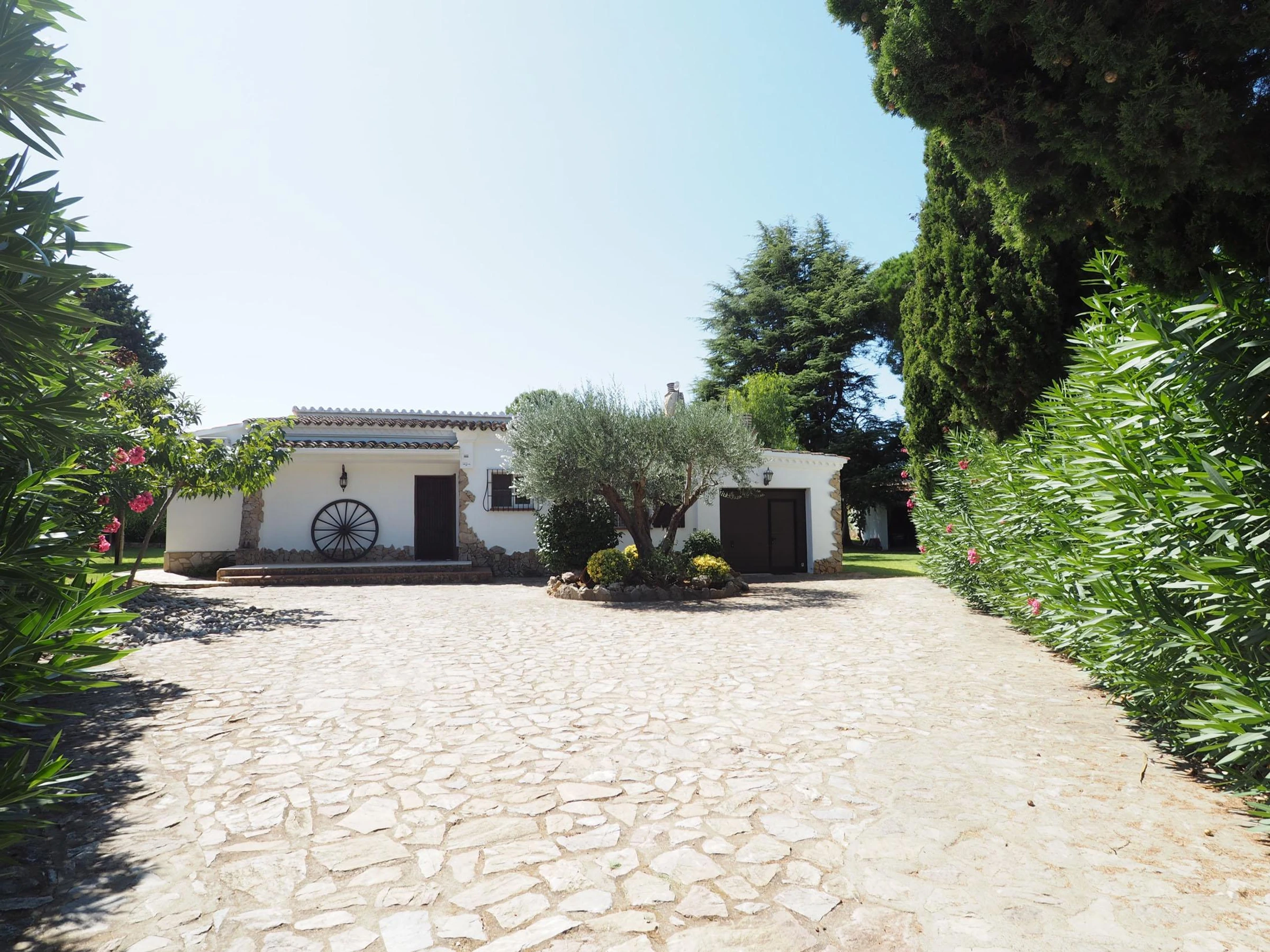 VILLA BARCELONA: Beautiful house with large garden, private pool and independent studio. Located at the end of a quiet passage we reach this one ground floor house. It is distributed in: entrance, a double room (bed 180) type suite with bathroom with bath and toilet, two double rooms with bed 150cm, sink and a shower each, a separated toilet, large dining room with semi-opened kitchen and exit to the terrace. There is a fourth room with two single beds and a bathroom with shower and toilet with separate entrance to the house. At the end of the garden we have the independent studio of about 40m2 with four single beds and a bathroom with shower and toilet. Outside there is the magnificent garden with the private pool in the middle, the barbecue part and an outdoor shower. In the front of the house there are parking spaces for 4 cars. Rental from Sunday to Sunday. [hidden] / Non-smoking accommodation / Maximum capacity: 10 people (including children and babies) *The photos are not contractual. Furniture or decorative elements may differ from those shown in the images. *The house is equipped with an alarm system with cameras, but they are not operational during rentals. CEE : E 174 kwh/m2, E 45 kgCO2/m2 NRA : ESFCTU00001701000004386000000000000000[hidden]-201