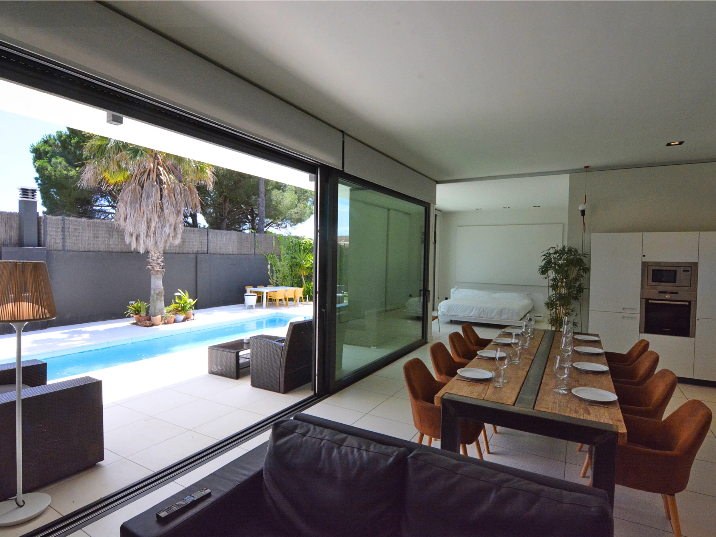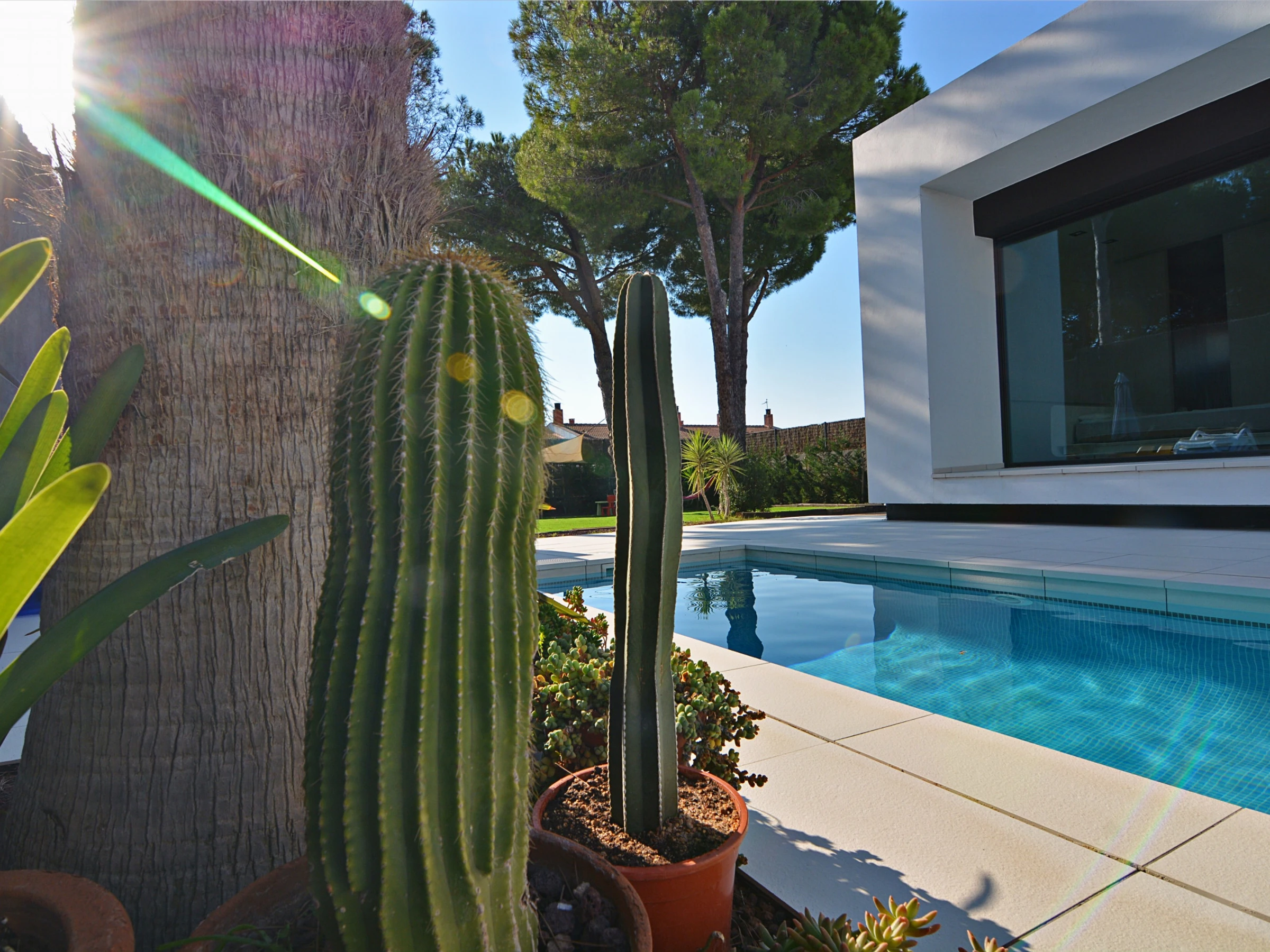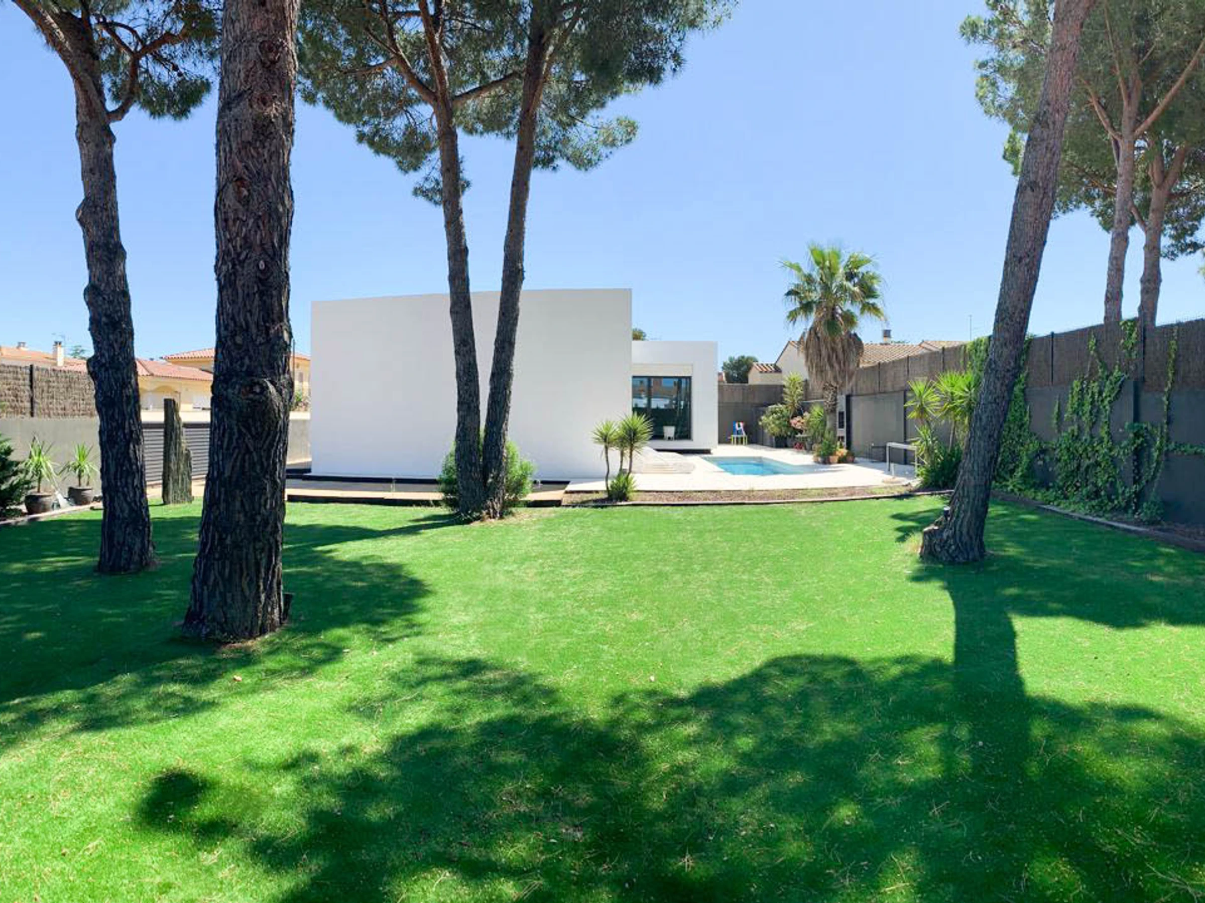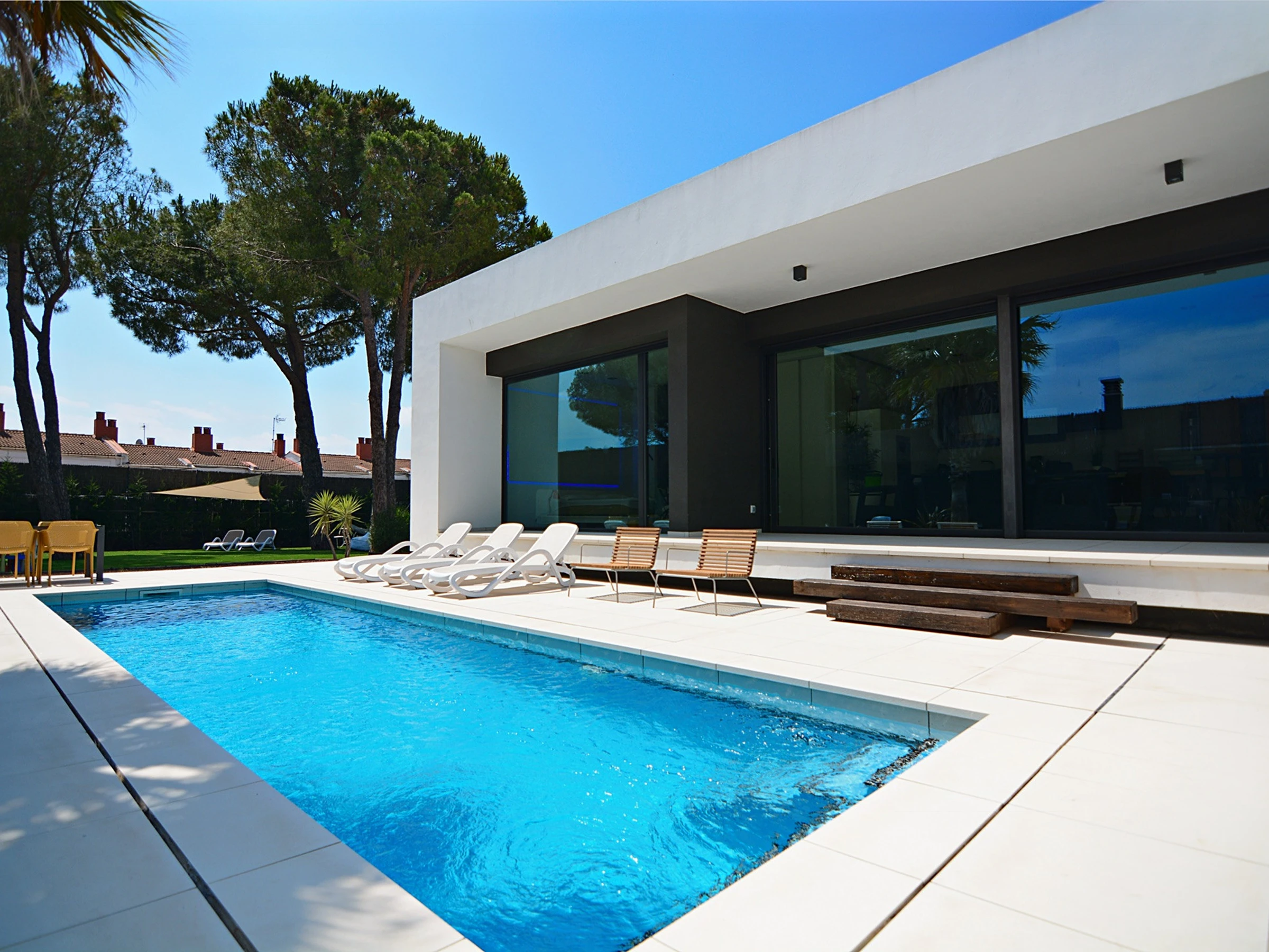 This modern villa is located in a quiet area, just 9 minutes walk from the beach Riells. This beach with white sand, with transparent and very shallow water, a perfect place for the all family! The way from the Riells Beach offers you variety shops, restaurants, entertainment for children, supermarkets, water activities, etc. Also close to the villa you can find the Natural Park of Montgrí where you can enjoy magnificent walks or biking in a pine forest.