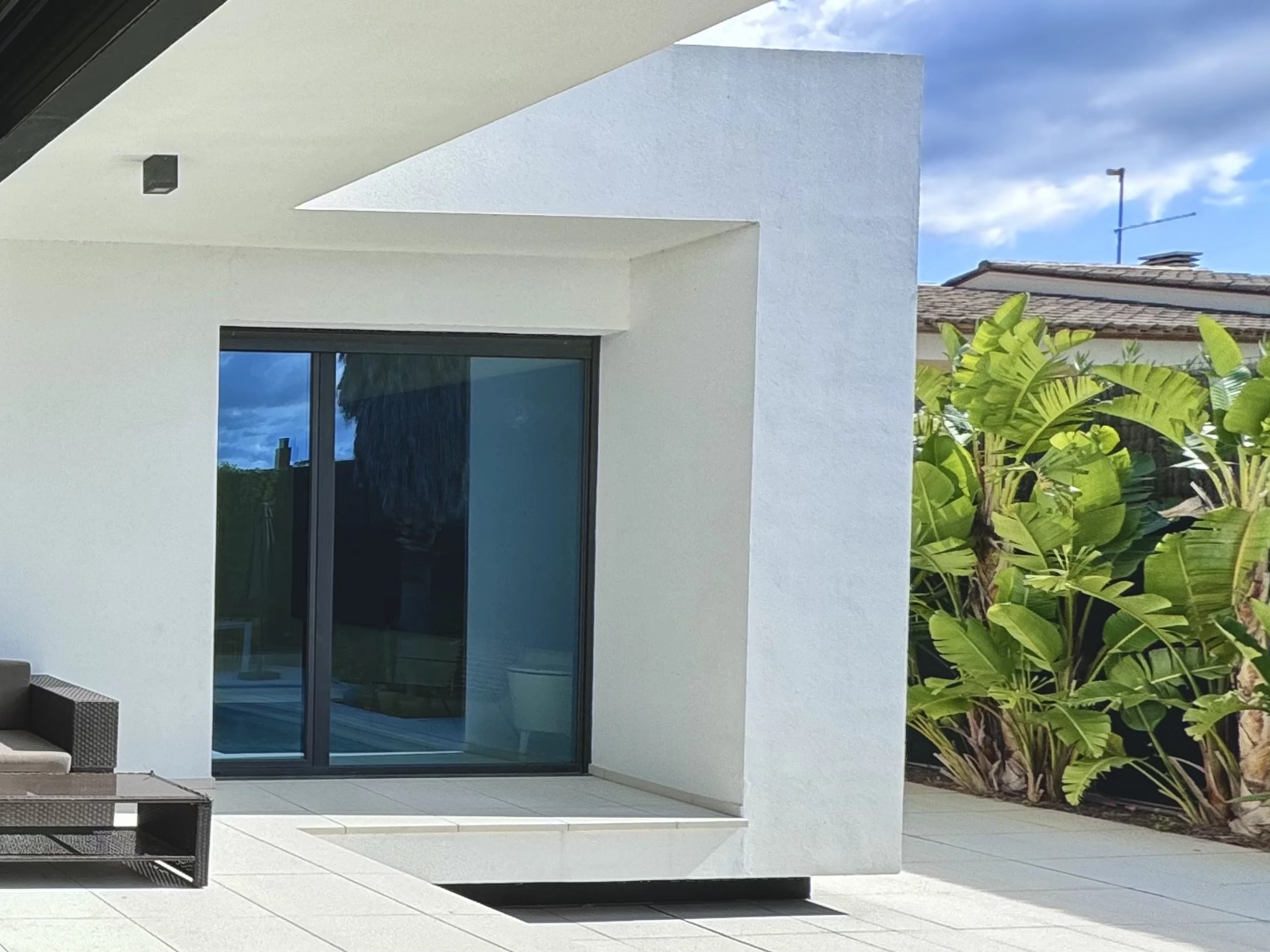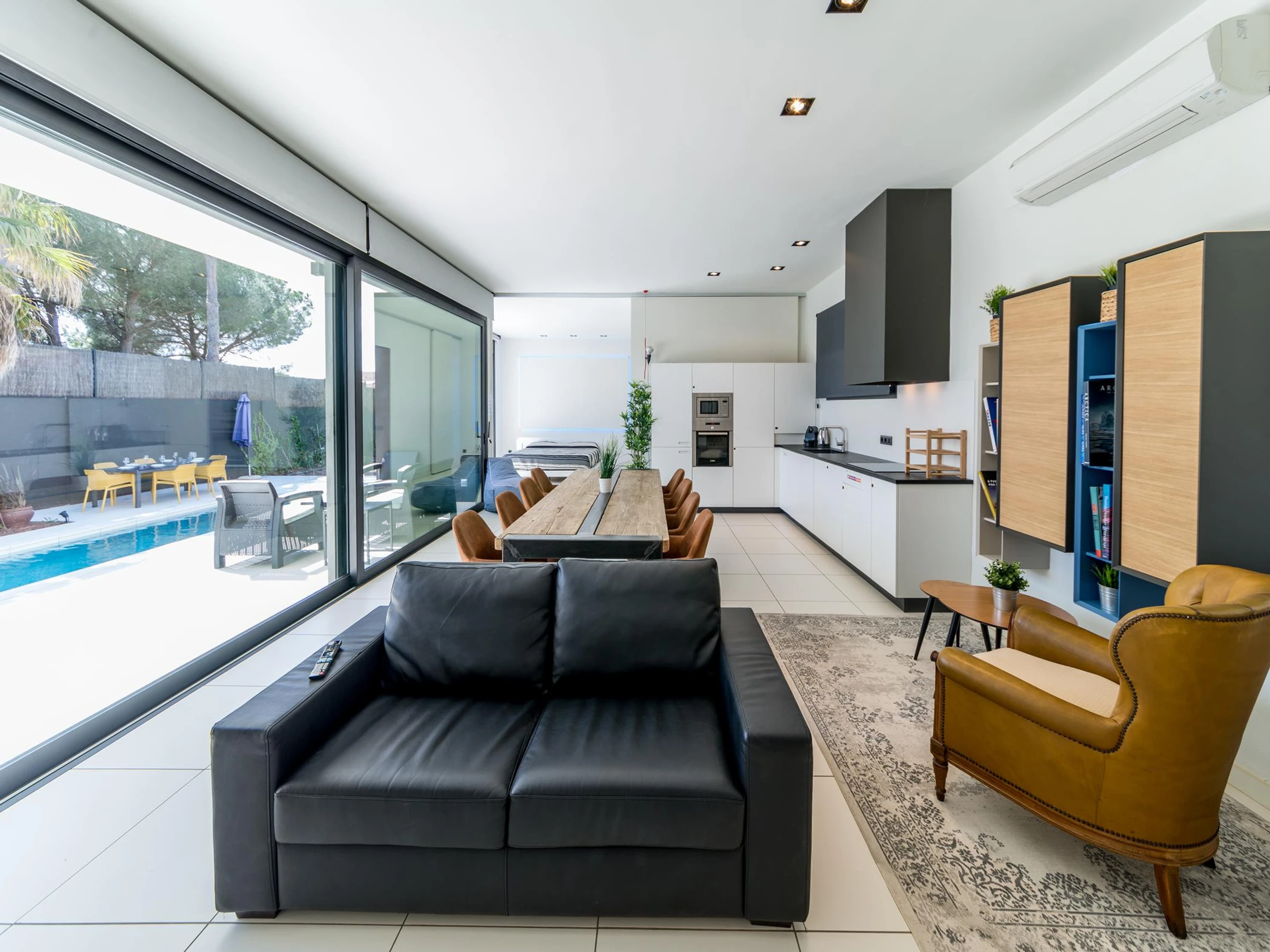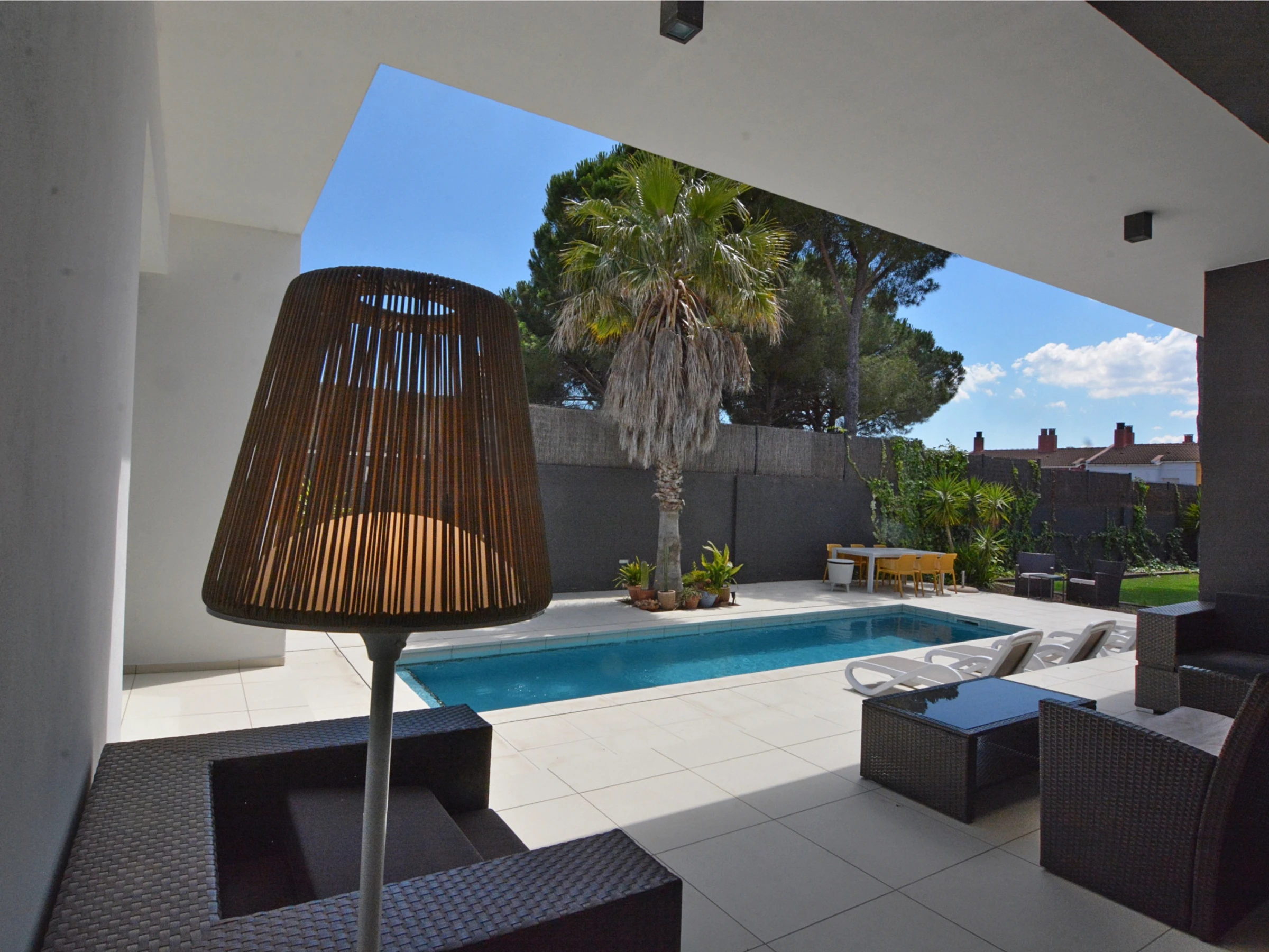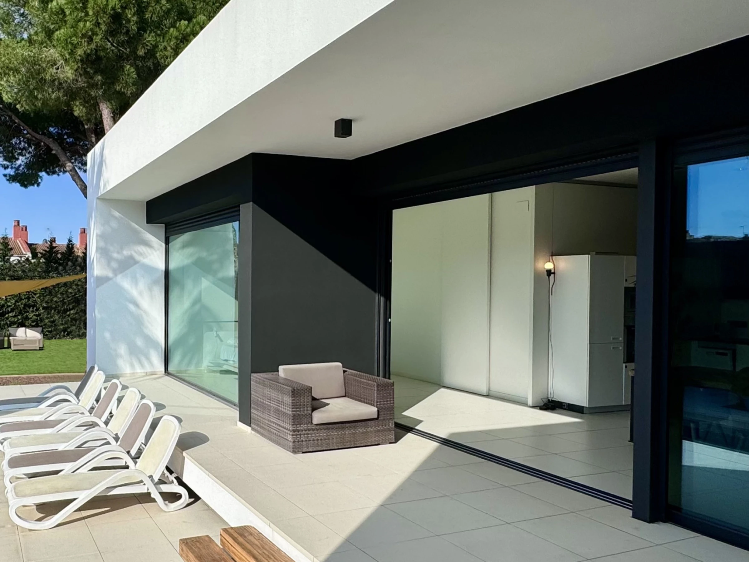 This modern villa is located in a quiet area, just 9 minutes walk from the beach Riells. This beach with white sand, with transparent and very shallow water, a perfect place for the all family! The way from the Riells Beach offers you variety shops, restaurants, entertainment for children, supermarkets, water activities, etc. Also close to the villa you can find the Natural Park of Montgrí where you can enjoy magnificent walks or biking in a pine forest.