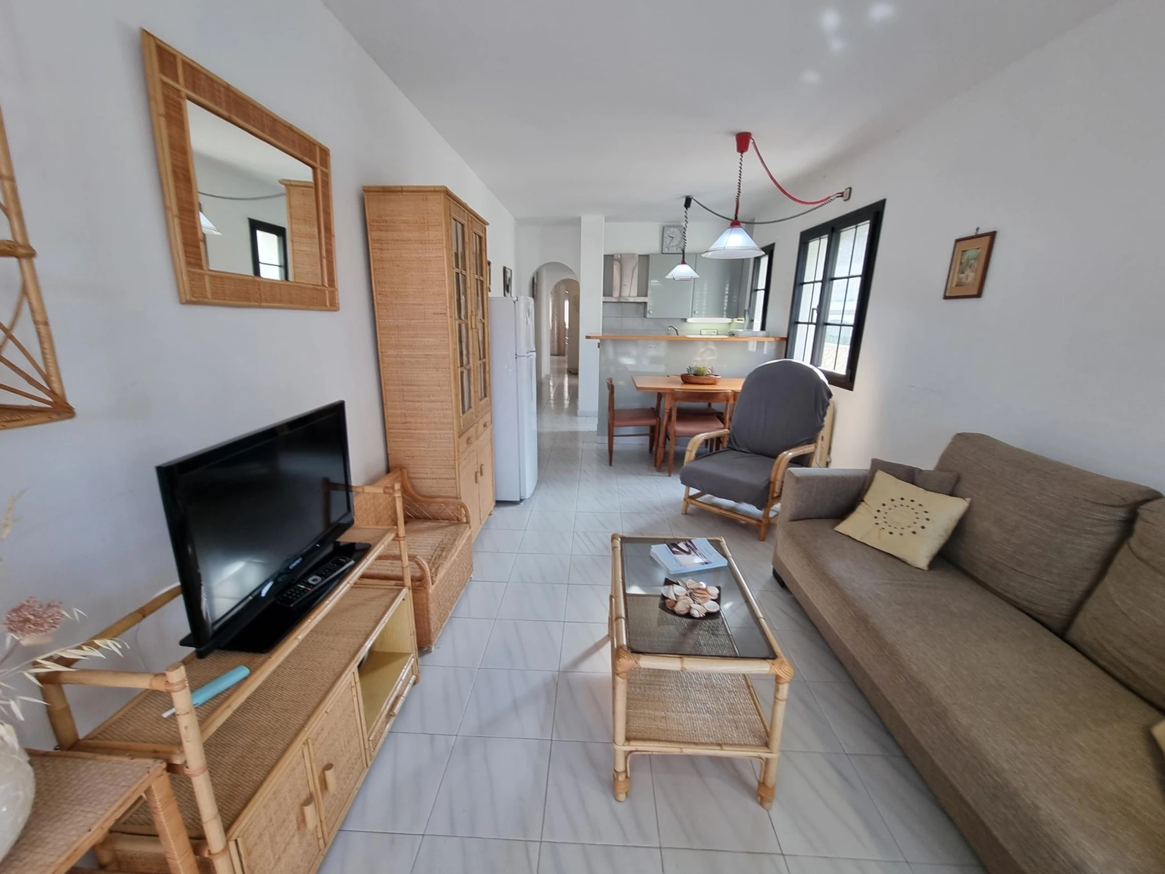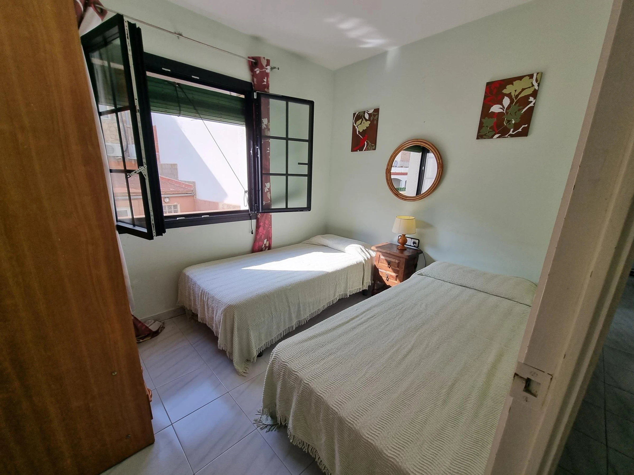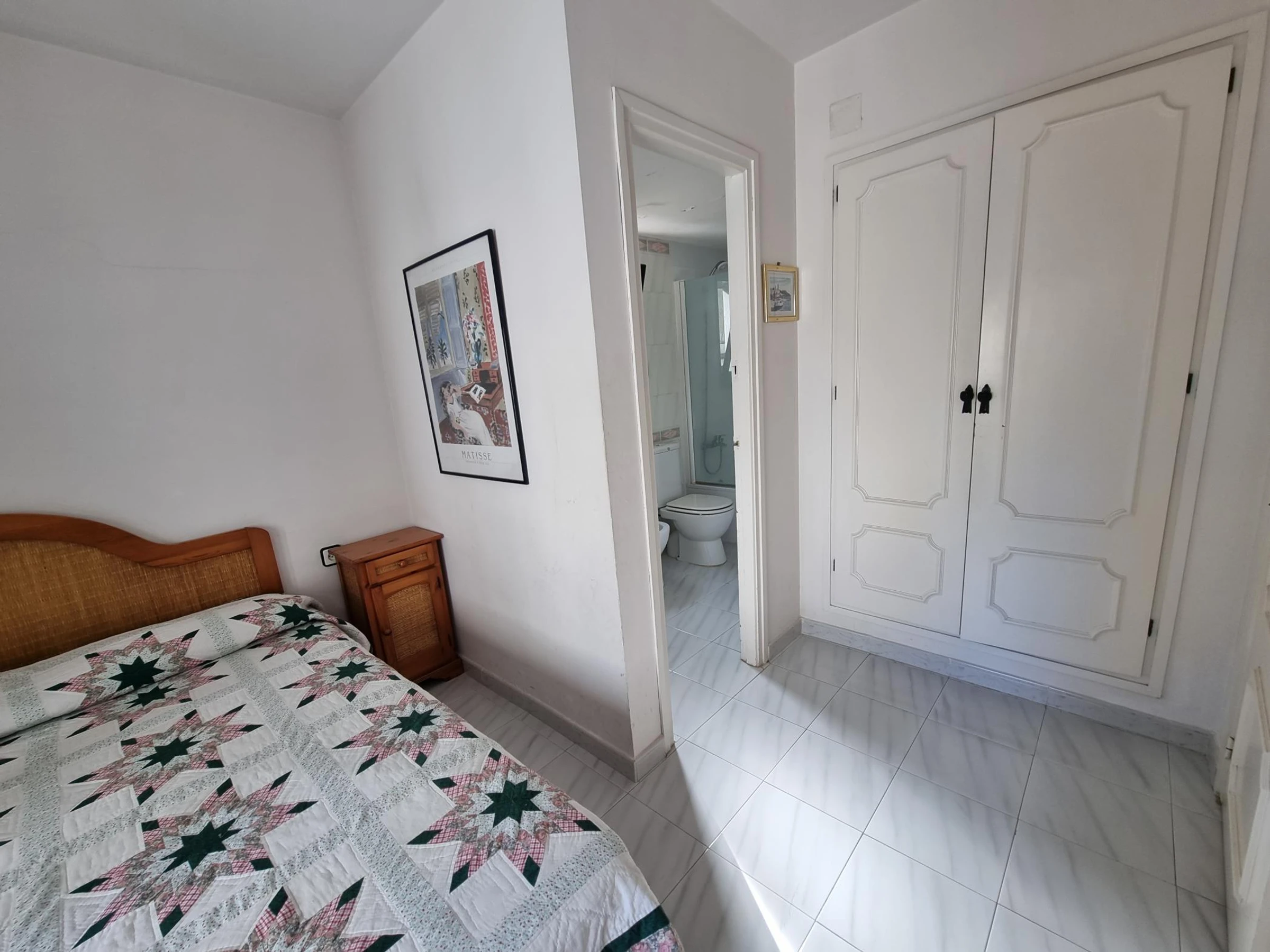 It features three bedrooms, one of them a suite, a full bathroom, and a living-dining room with an open kitchen, providing everything you need for a comfortable stay. What makes it special is its terrace with sea views, where you can enjoy a morning coffee or relax at sunset. The building also has a communal pool, perfect for cooling off without leaving home.
