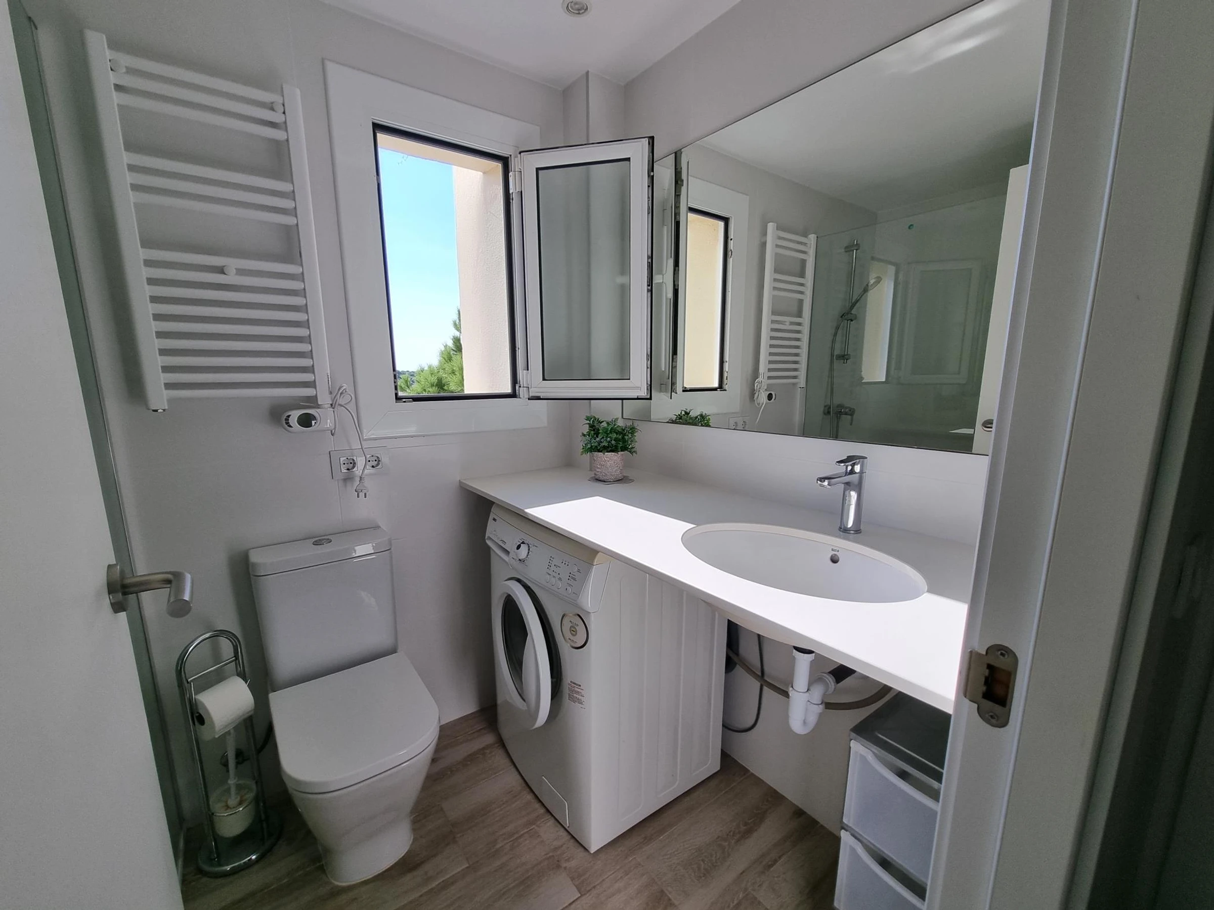 The apartment features two spacious and bright bedrooms, a kitchen-dining area, a full bathroom, and a terrace.Guests have access to a large garden with three swimming pools, including one for children.Located in Riells, a lively area with numerous shops, a variety of restaurants, and a pedestrian promenade offering pleasant views and direct access to the beach.