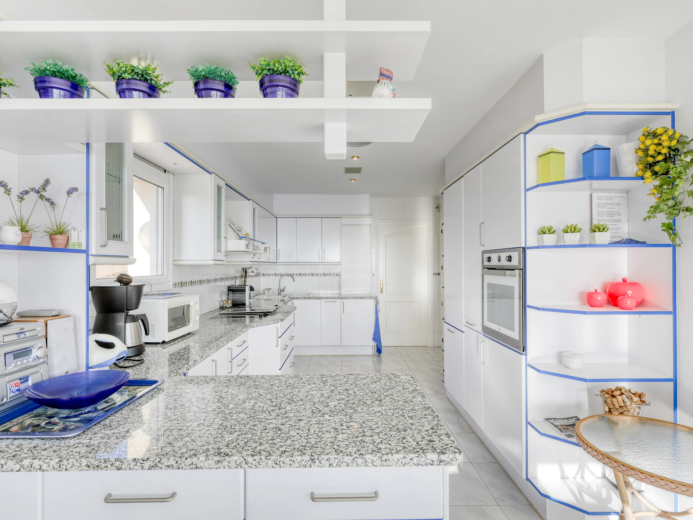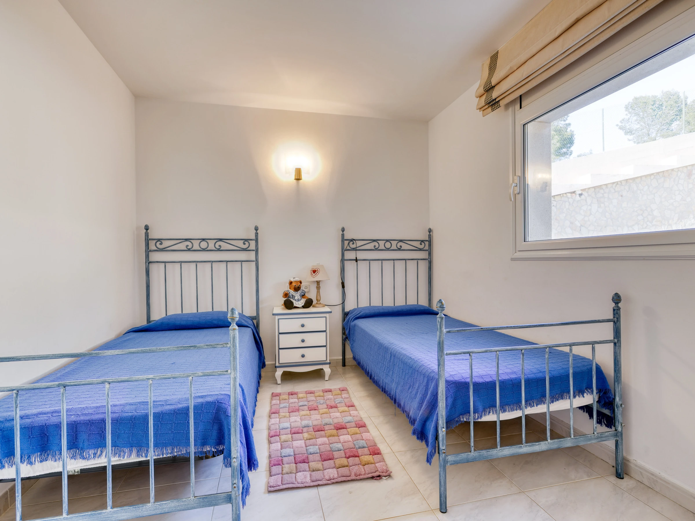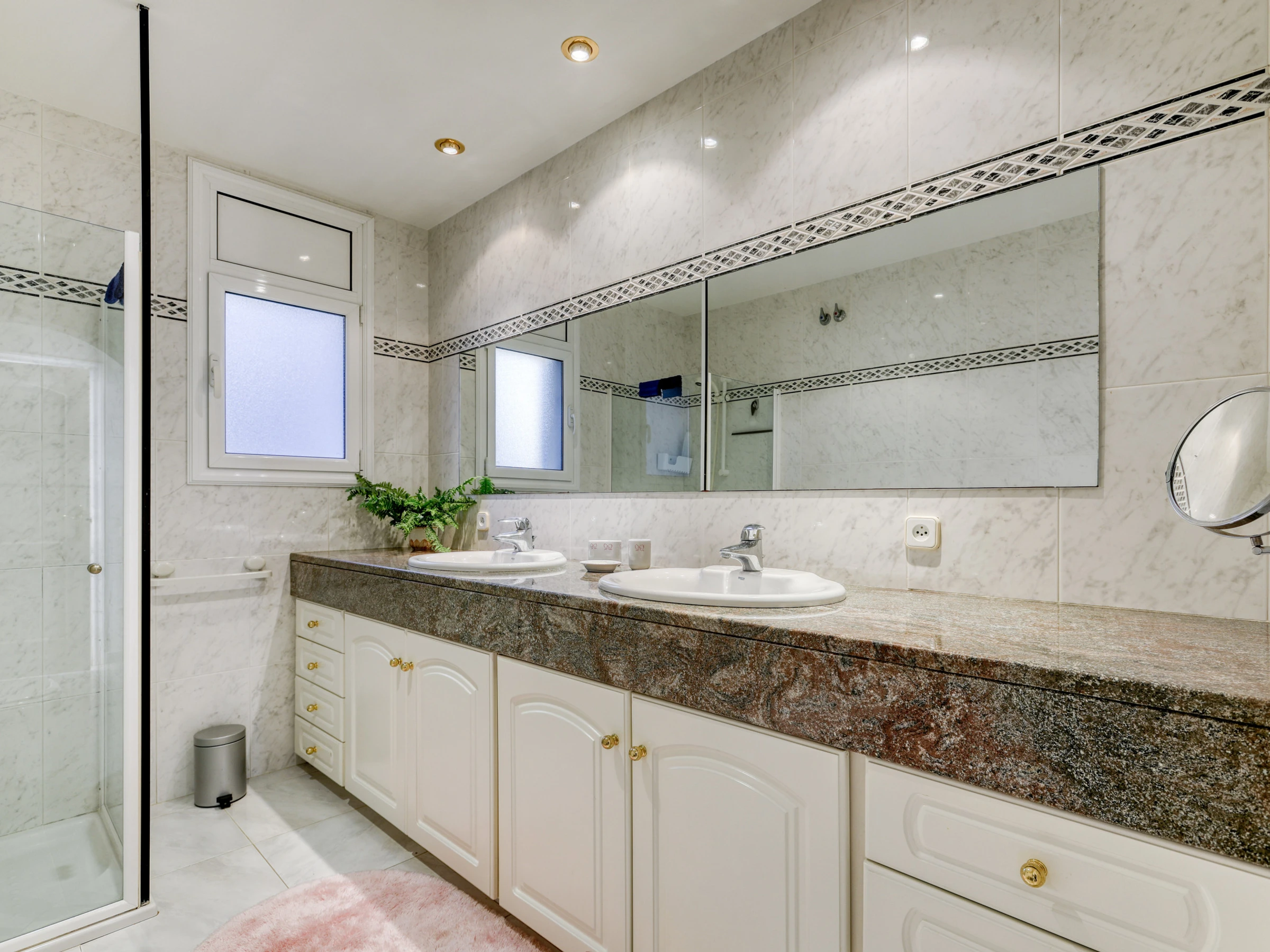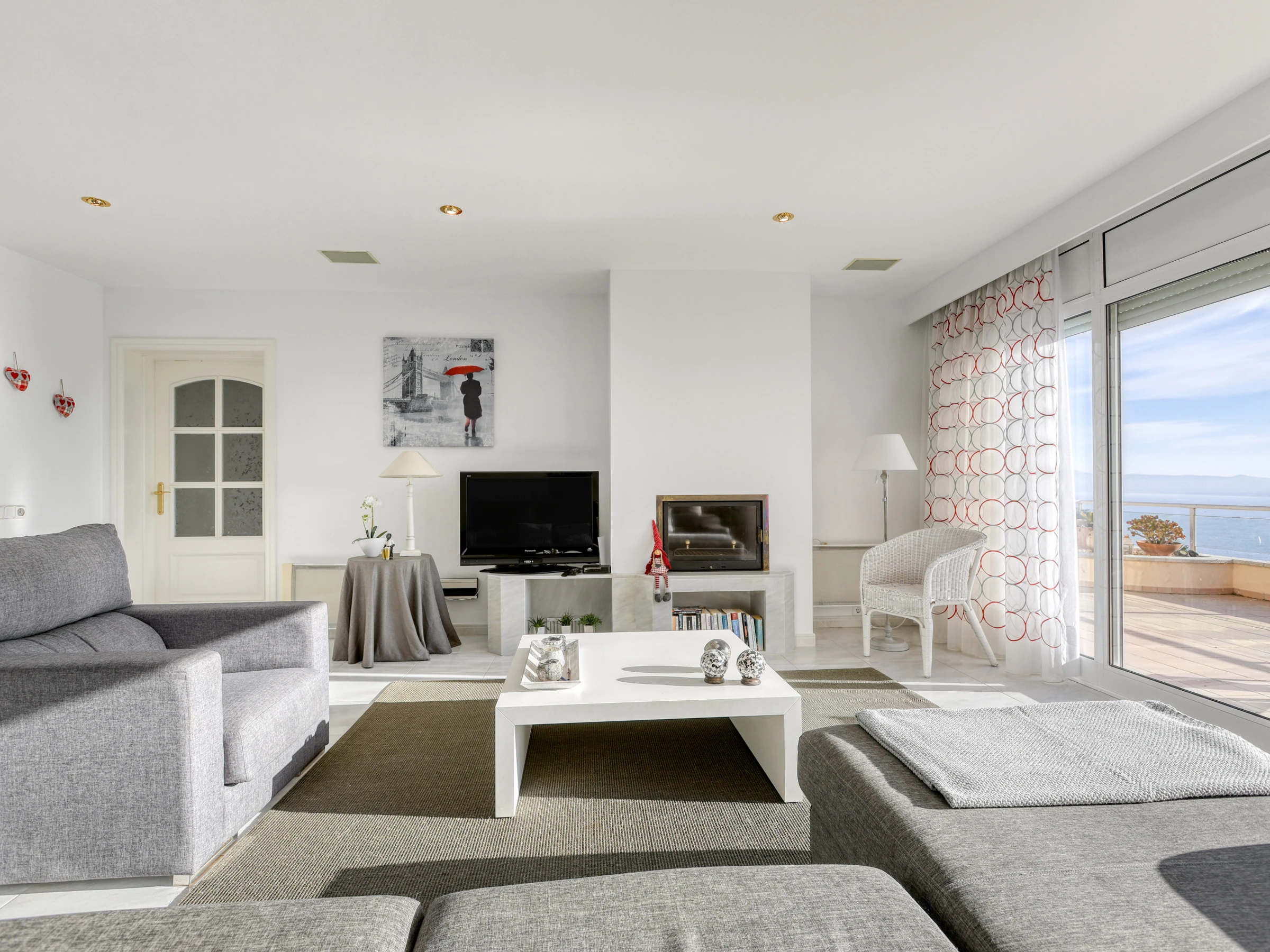 With an area of 312 m², the villa has been designed to guarantee spaciousness, comfort and luminosity in every corner. It has 3 bedrooms and capacity for 6 people, an elegant living room with direct access to sunny terraces, garden with outdoor furniture and private pool with sea views. In addition, it offers barbecue area, fenced plot and two outdoor parking spaces, all in a serene environment surrounded by mountains.