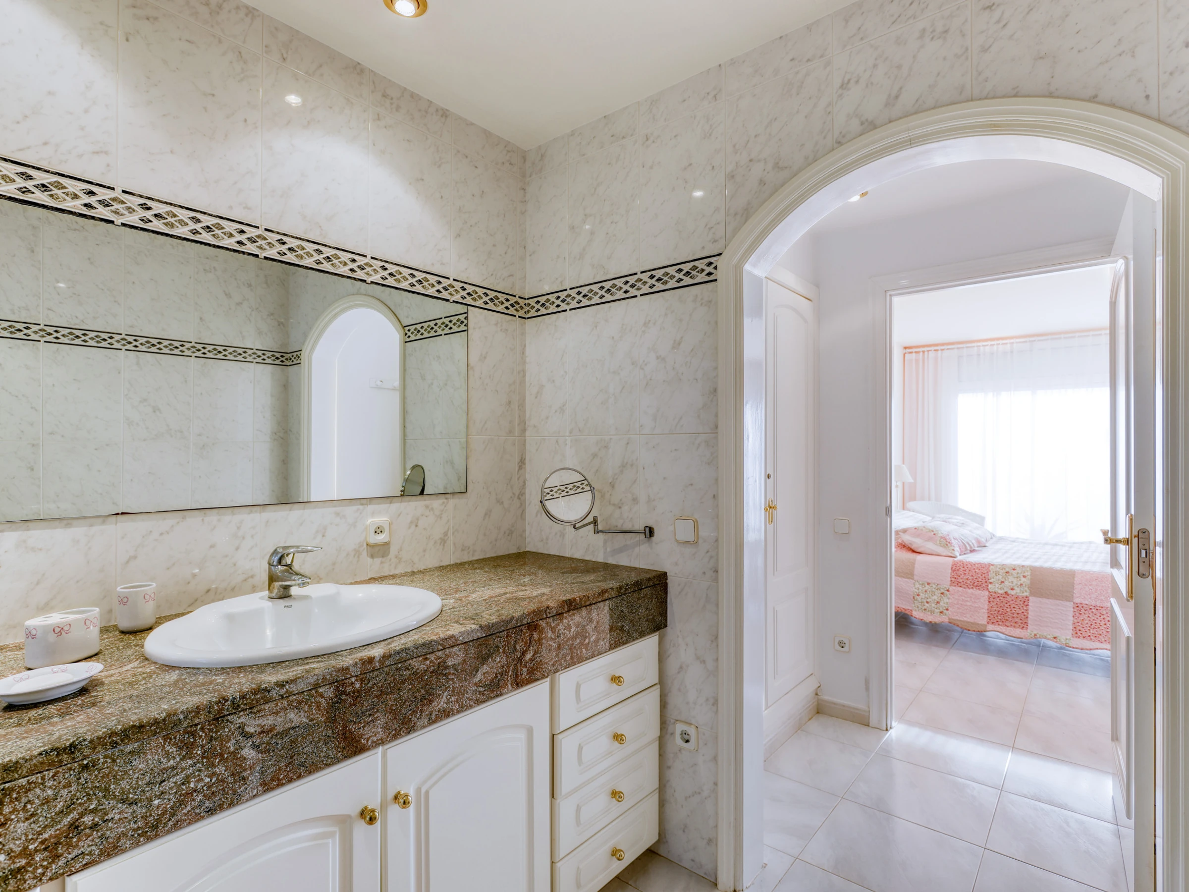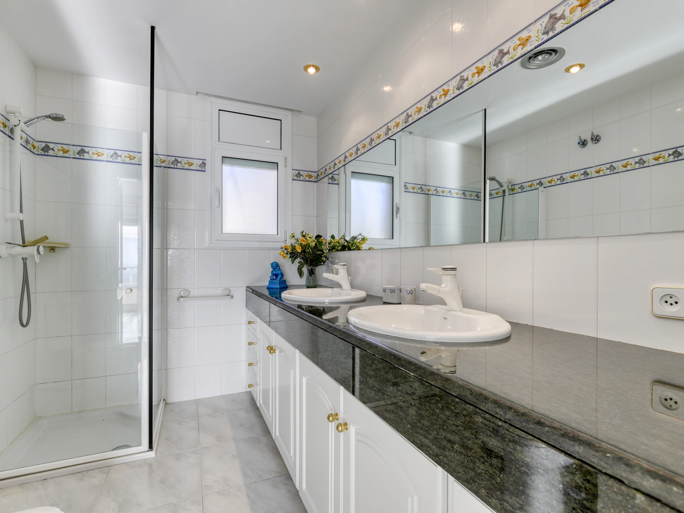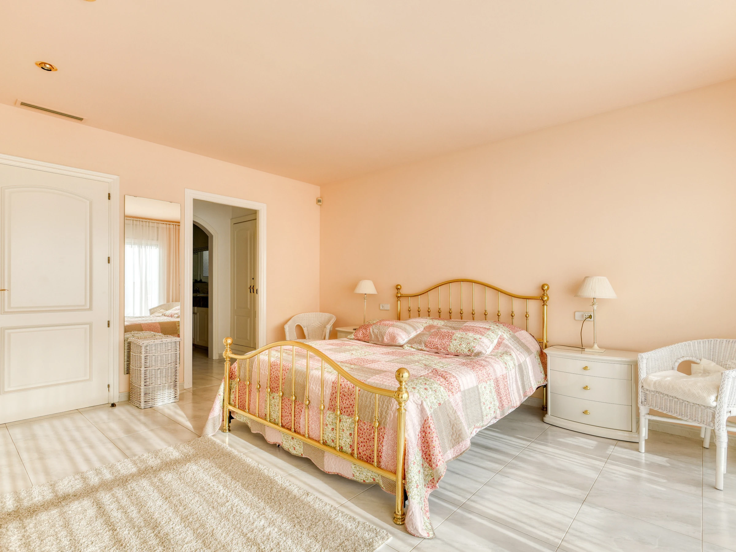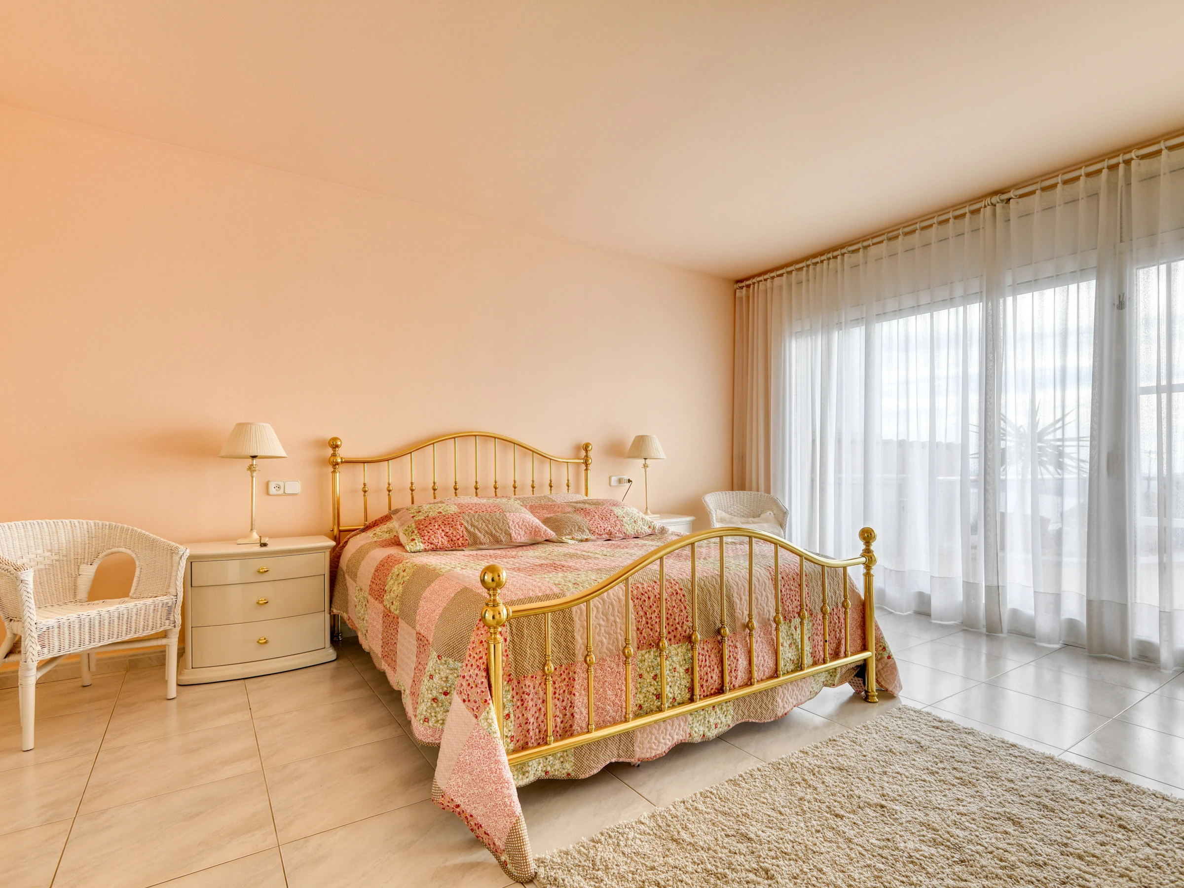 With an area of 312 m², the villa has been designed to guarantee spaciousness, comfort and luminosity in every corner. It has 3 bedrooms and capacity for 6 people, an elegant living room with direct access to sunny terraces, garden with outdoor furniture and private pool with sea views. In addition, it offers barbecue area, fenced plot and two outdoor parking spaces, all in a serene environment surrounded by mountains.