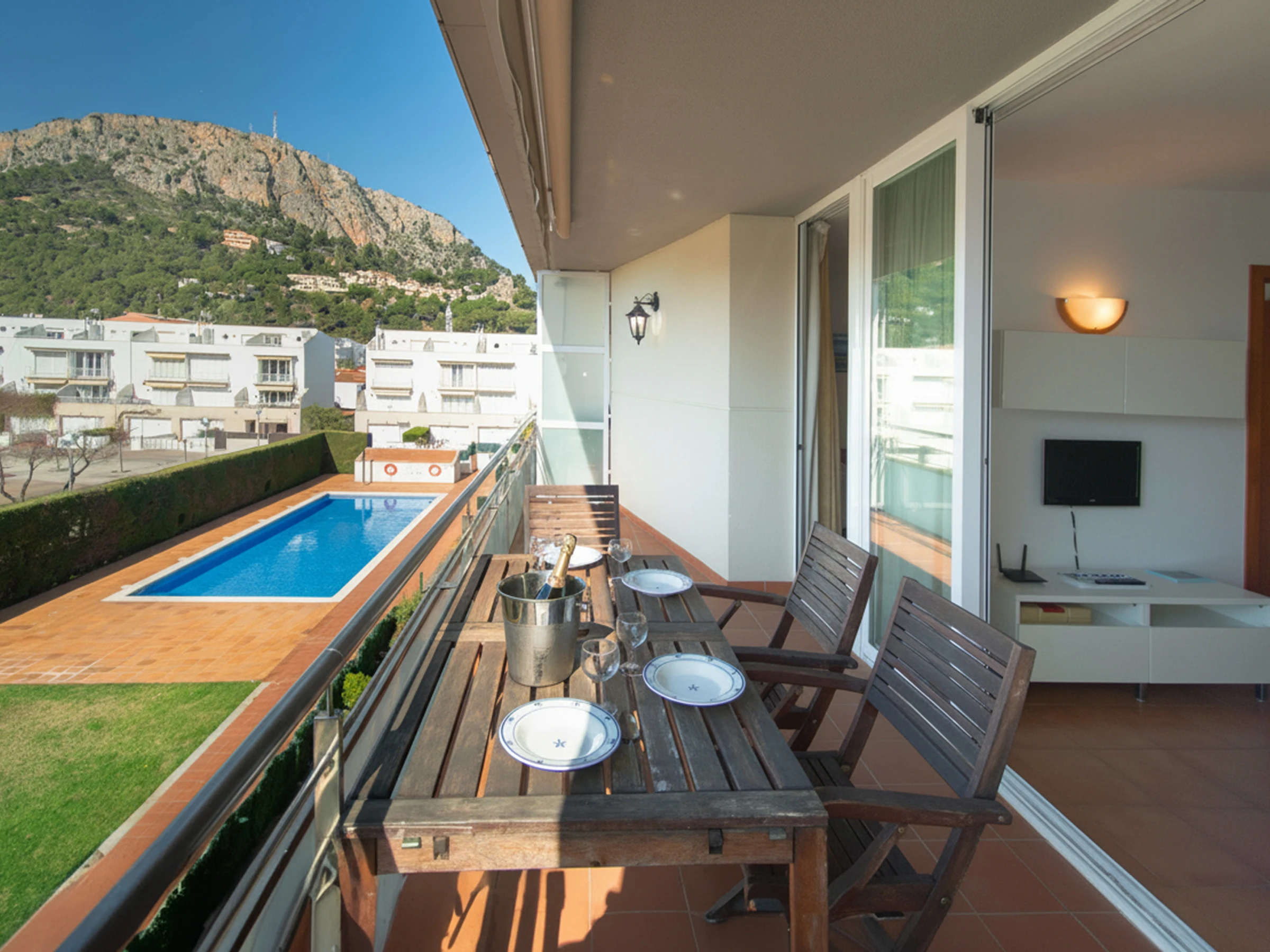 Comfortable and well-distributed apartment in Estartit, ideal for stays of up to 4 people. It features a living-dining room with sofa bed, fully equipped kitchen, 1 bedroom with two single beds, full bathroom and balcony with views of the communal swimming pool. Includes WiFi and air conditioning, perfect for a getaway near the sea and services.