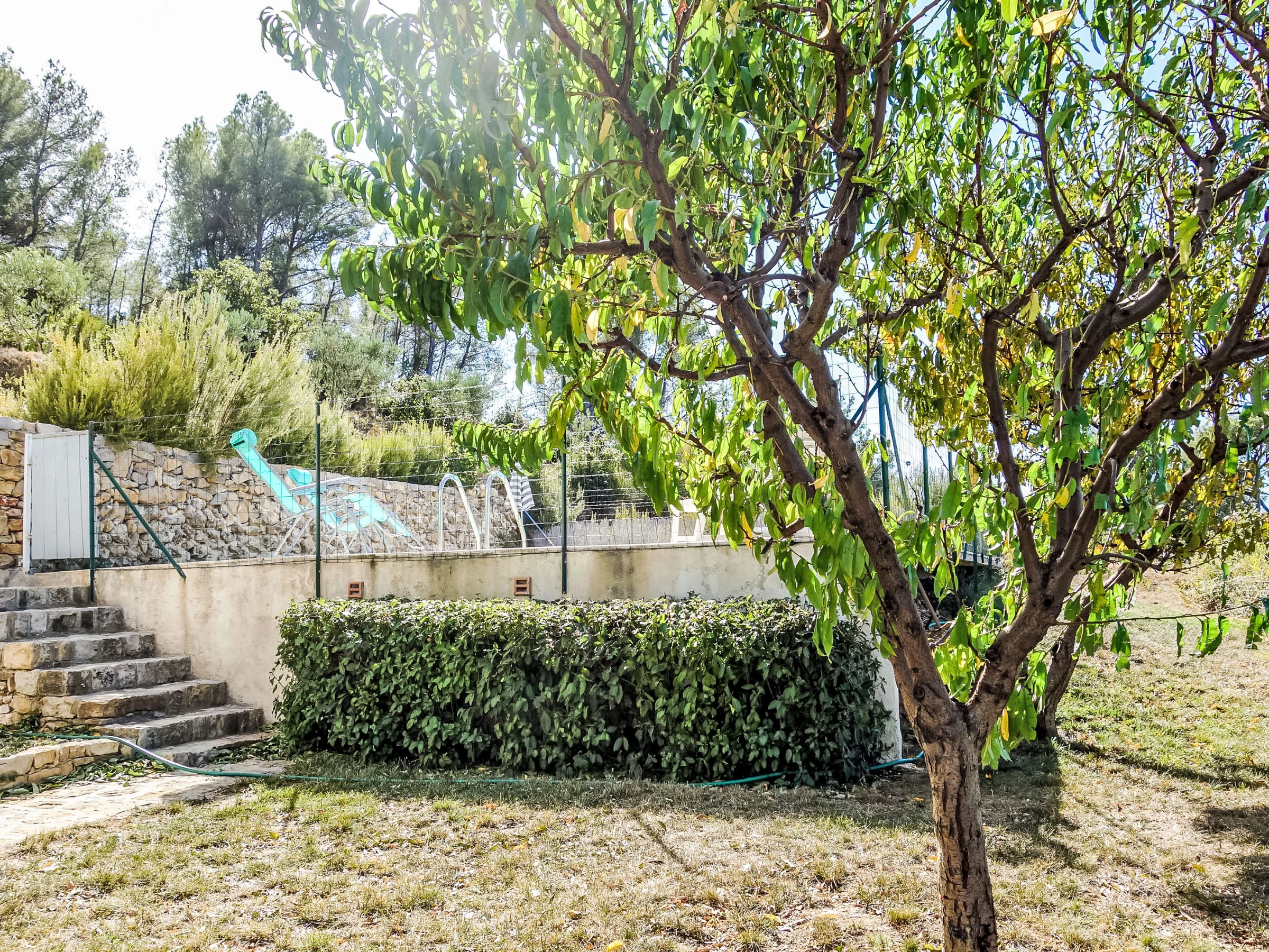 La Cadière d'Azur: Beautiful single-family house "La Campagne", built in 2013, surrounded by fields and vineyards. Outside the resort La Cadière d'Azur, in an elevated position on a slope, 7 km from the sea. Private: natural state property 4'000 m2, swimming pool fenced (4 x 6 m, seasonal availability: [hidden] - [hidden] In the house: burglar alarm system. 20 m long steep motor access to the house (150 m via unmade road). Parking (for 2 cars) at the house. Shop 4 km, grocery 4 km, bus stop "chemin des Baumes" 2.9 km, railway station "Saint Cyr les Lecques-La Cadière" 4.4 km, sandy beach "Plage des Lecques" 7 km. Golf course (18 hole) 5 km. Nearby attractions: Aqualand. Hiking paths: Sainte Baume, Sainte Victoire, Calanques Port-Cros, Porquerolles, Ile verte, Embiez, Figuerolles, Cassis. Please note: car recommended. Access to the pool is via 8 steps. Access to housing is via 12 steps.