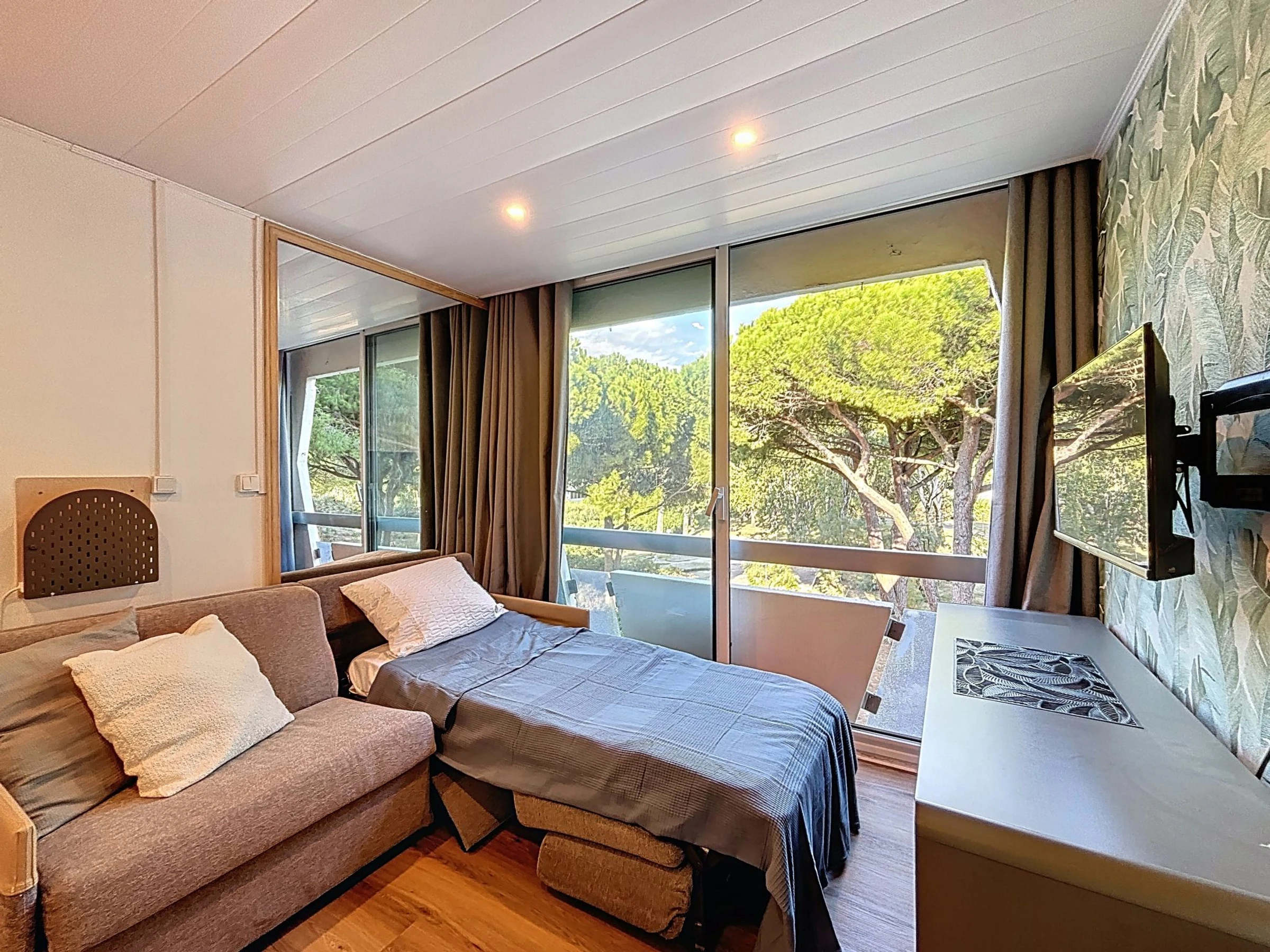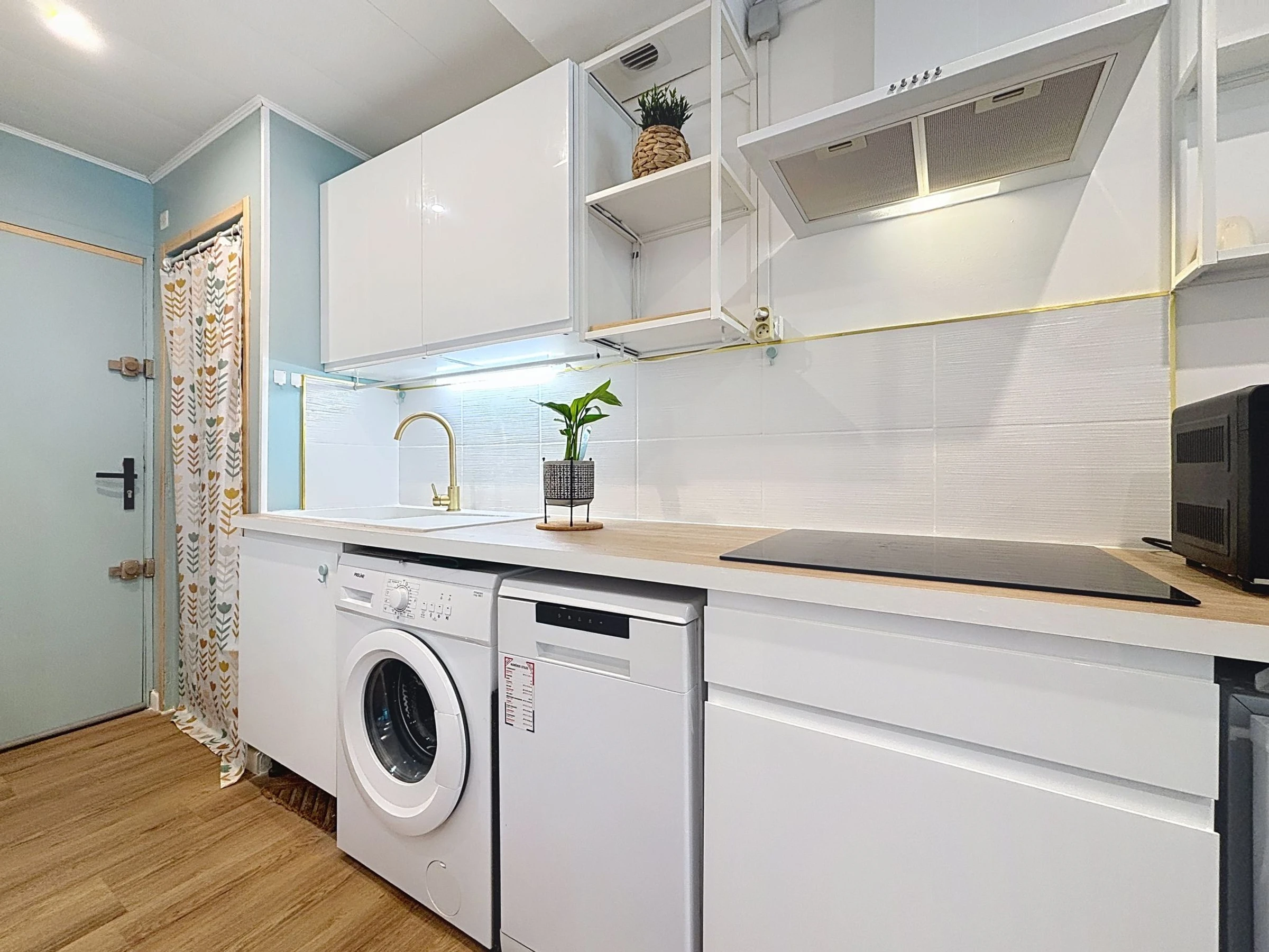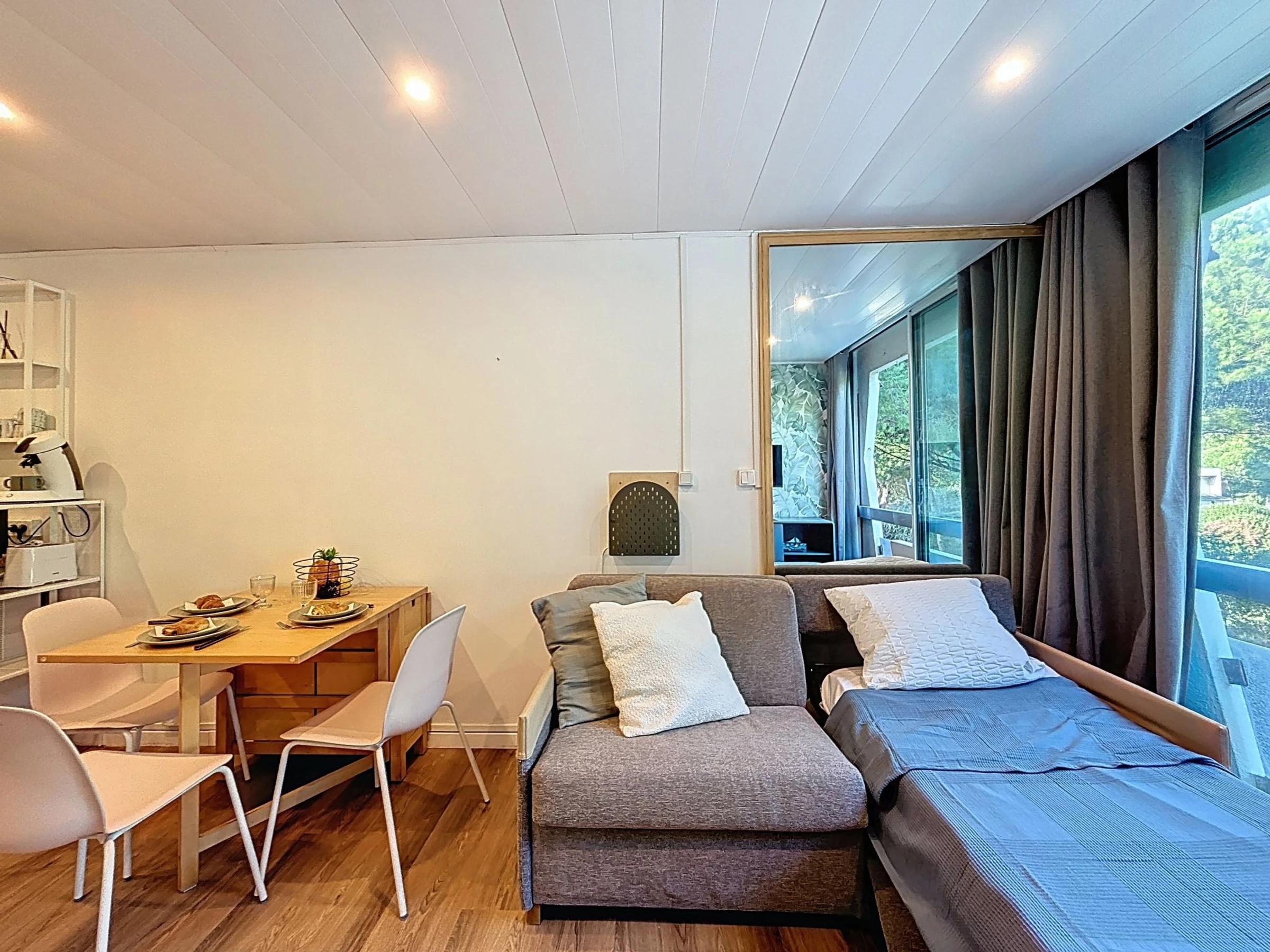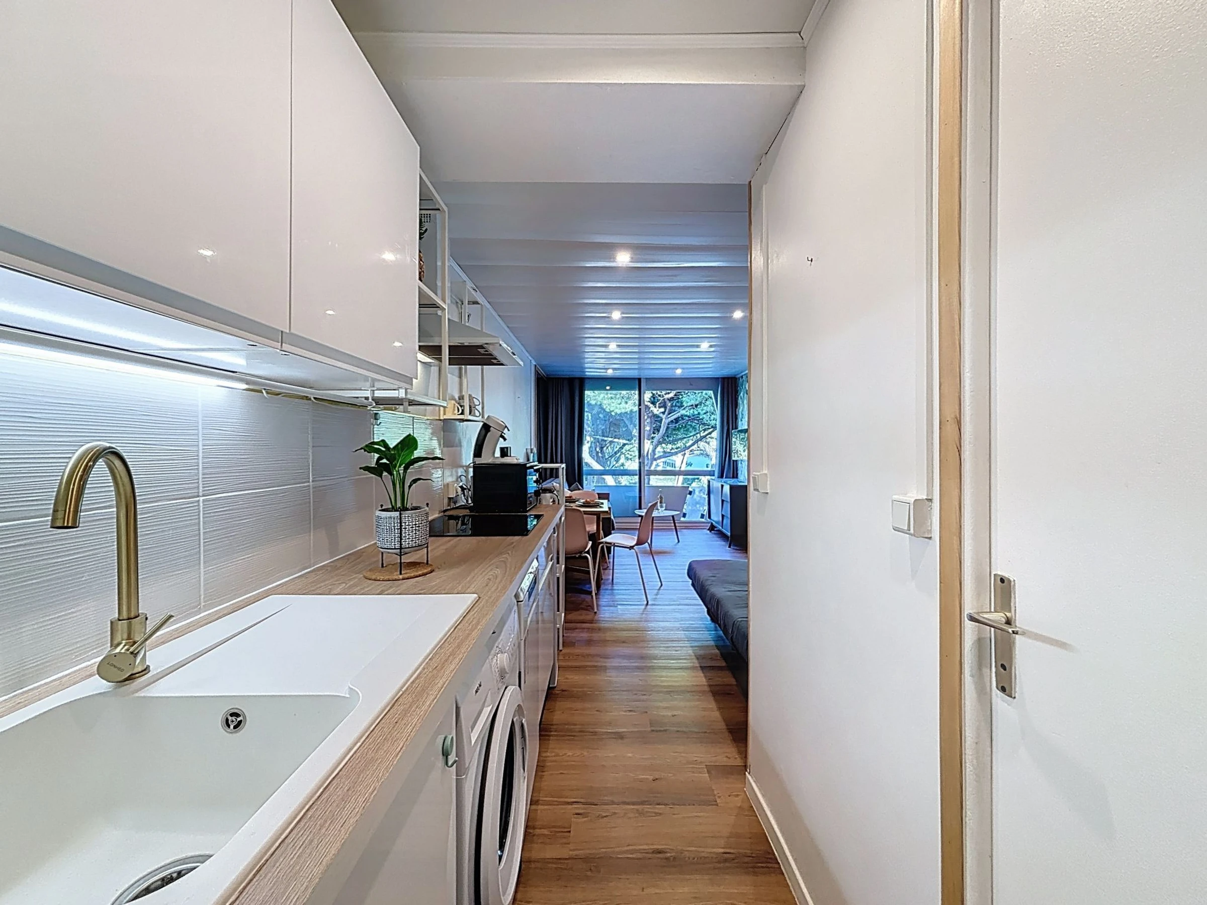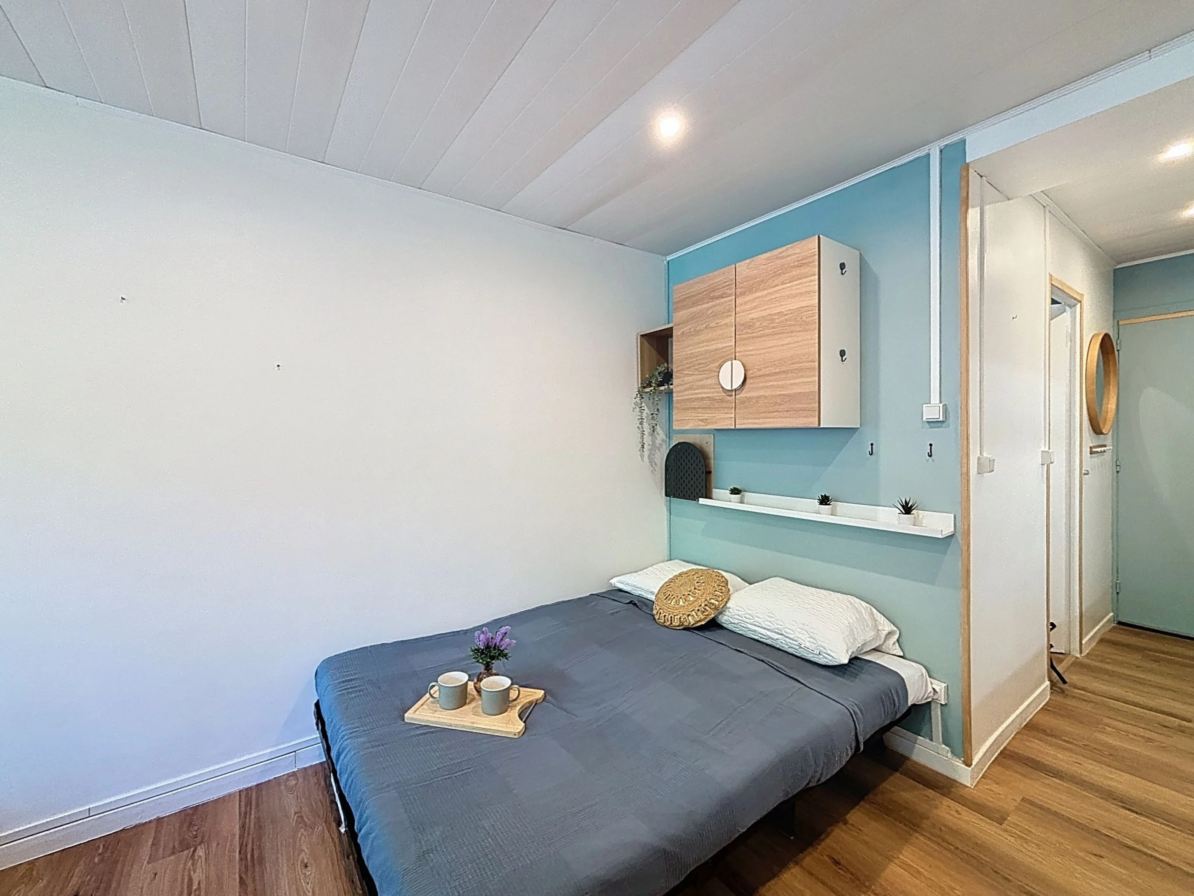 1-room studio 25 m2 on 3rd floor, north-east facing position. Renovated in 2024, practical and modern furnishings: living/dining room, north facing position and east facing position with 1 sofabed (90 cm, length 190 cm), 1 double sofabed (1 x 140 cm, length 190 cm), TV (flat screen), electric heating and fan. Kitchenette (mini-oven, oven, dishwasher, 3 induction hot plates, microwave, electric coffee machine, Capsules for coffee machine (SENSEO) extra). Shower/WC. Electric heating. View of the garden. Facilities: washing machine, iron. Internet (WiFi, extra). Please note: non-smokers only, no parking. Smoke alarm, no lift. Offer by a private individual according to Art. 155, IV of CGI.