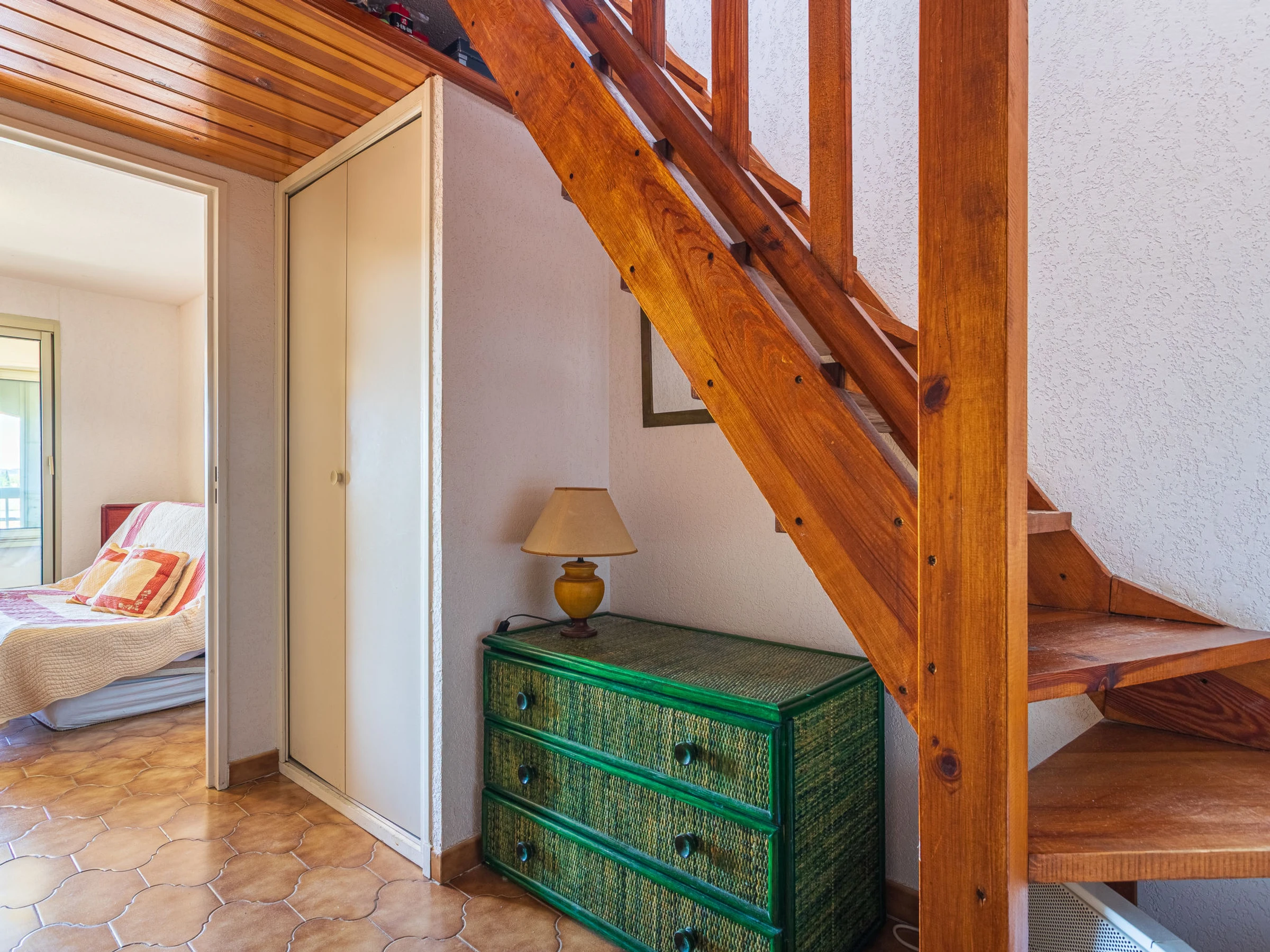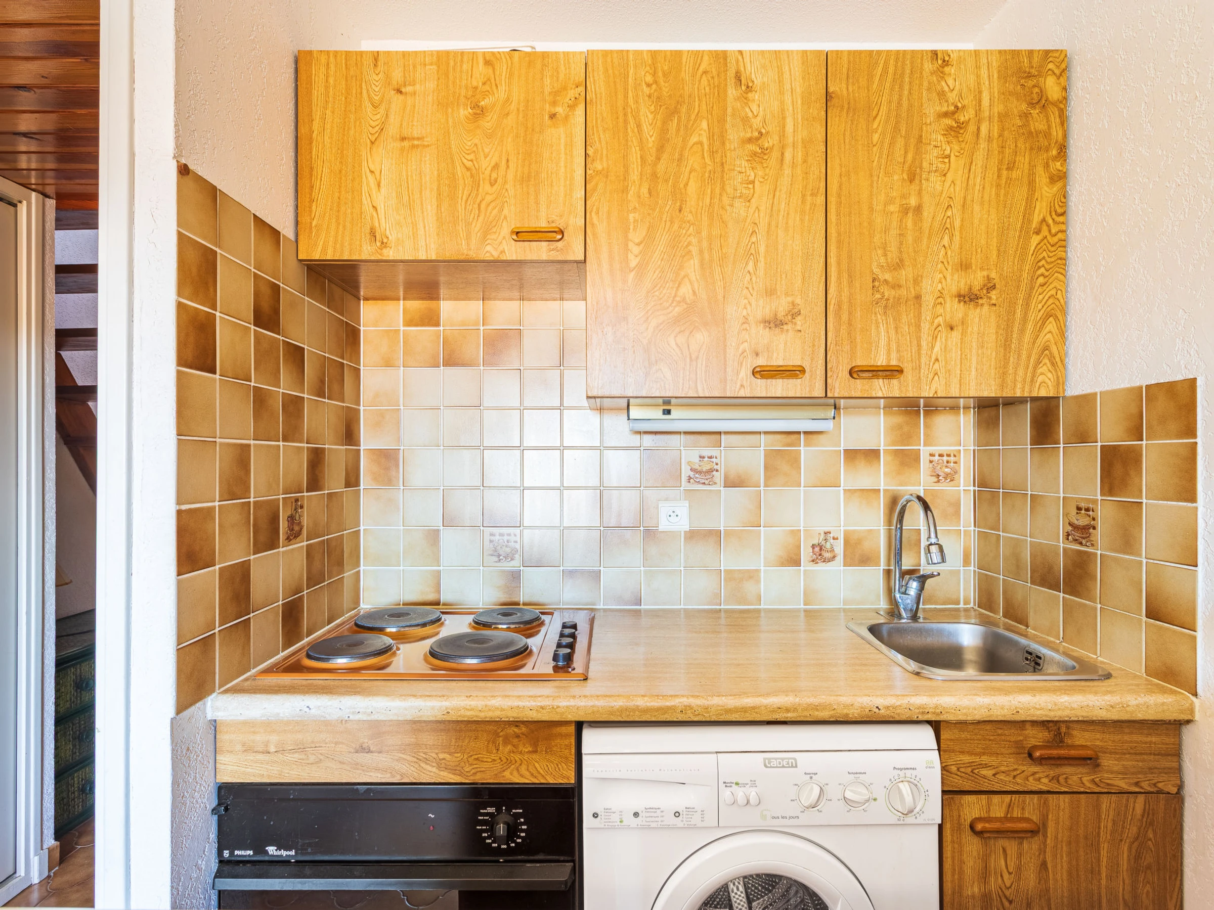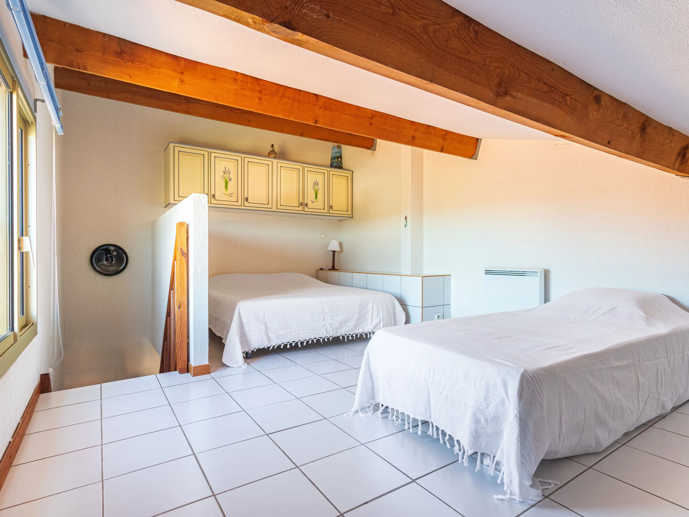 2-room apartment 32 m2 on 3rd floor, west facing position. Comfortable and beautiful furnishings: living/dining room with 1 sofabed (140 cm, length 190 cm), dining table and TV (flat screen), hi-fi system, fan and electric shutters. Exit to the loggia. Kitchenette (4 hot plates, oven, toaster, kettle, microwave, freezer, electric coffee machine). Bathroom, sep. WC. Electric heating. Upper floor: (steep stair), 1 room with sloping ceilings with 1 bed (90 cm, length 190 cm), 1 french bed (160 cm, length 200 cm). Covered balcony. View of the countryside. Facilities: washing machine, iron. Internet (WiFi, extra). Please note: TV only FR. Smoke alarm, no lift. Offer by a private individual according to Art. 155, IV of CGI. [hidden]
