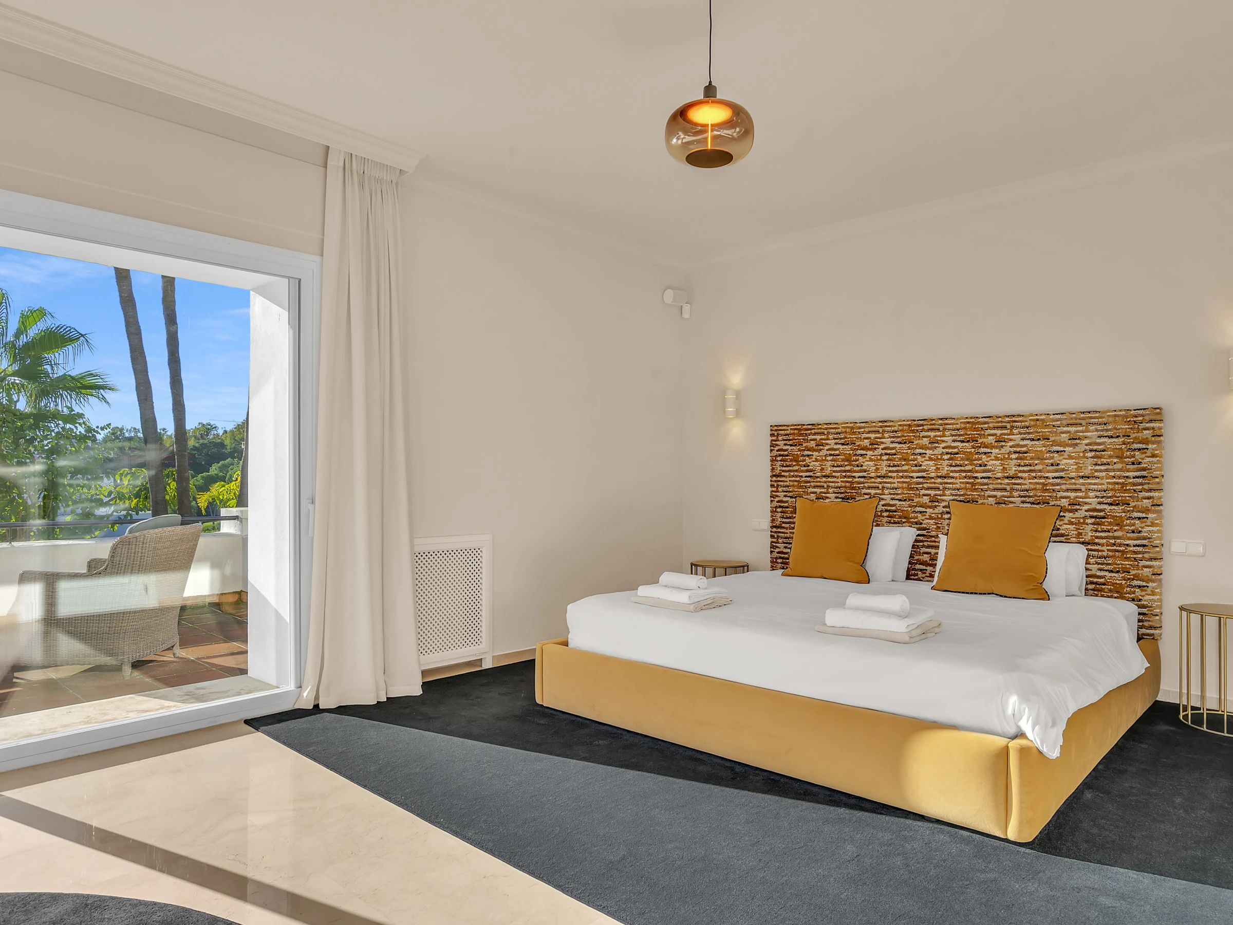 All principal rooms on this floor open onto the beautifully landscaped tropical gardens and generous outdoor living areas. Here, guests can enjoy a BBQ zone, sun-lounger terrace, and a heated swimming pool (available at an additional daily cost), as well as a secluded terrace offering breathtaking panoramic views across La Quinta and the iconic La Concha mountain.