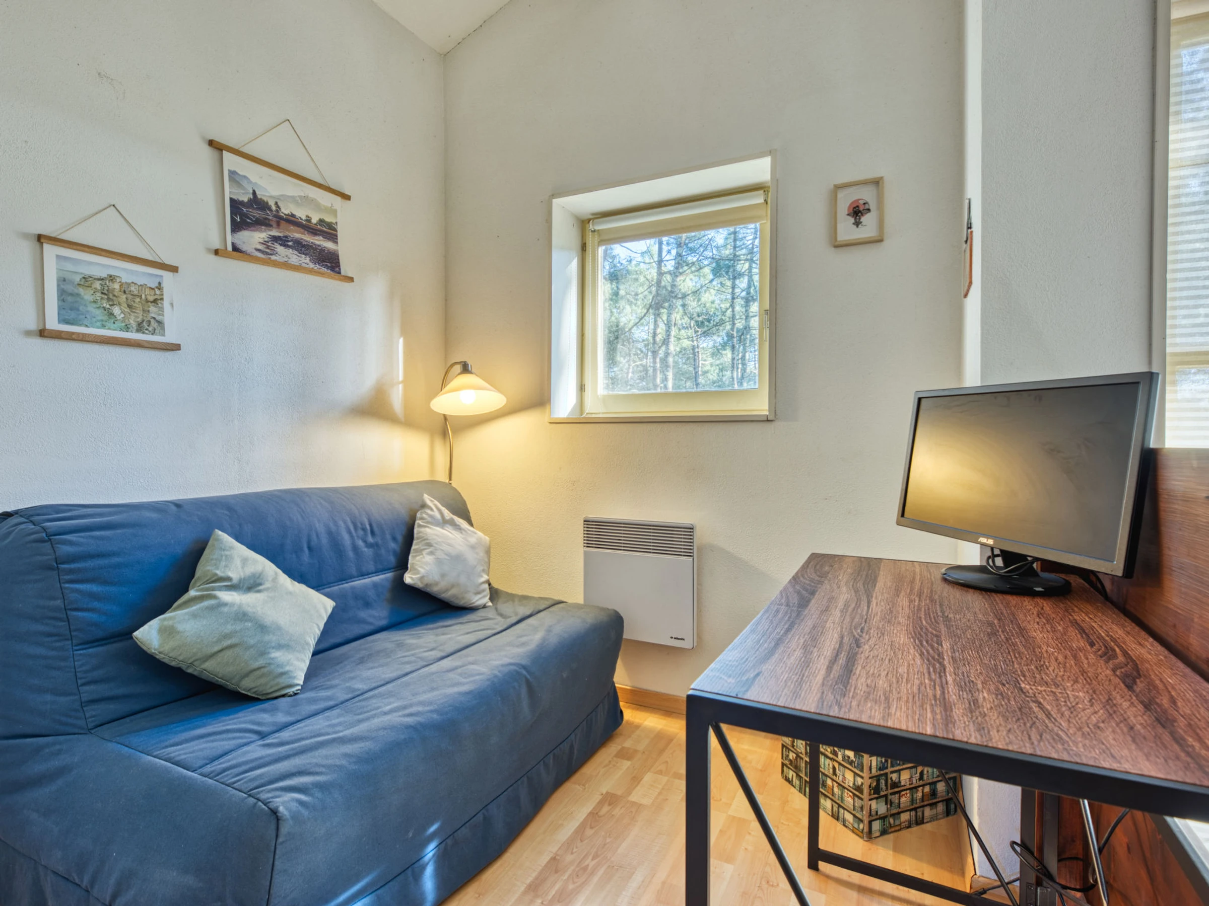 3-room terraced house 61 m2 on 2 levels. Beautiful furnishings: living/dining room with TV. Exit to the terrace. 1 room with 2 beds (90 cm, length 190 cm). Kitchen (dishwasher, 3 ceramic glass hob hotplates, toaster, kettle, microwave, electric coffee machine, Capsules for coffee machine (Krups) extra). Shower/WC. Upper floor: gallery. 1 room with 1 french bed (140 cm, length 190 cm), TV. Shower/WC. Electric heating. Terrace, south-east facing position and south-west facing position. Terrace furniture, electric barbecue. Of the countryside, the forest and golf course. Facilities: washing machine, children's high chair, baby cot. Internet (WiFi, extra). Parking space n 6. Please note: non-smokers only. Smoke alarm. Offer by a private individual according to Art. 155, IV of CGI.