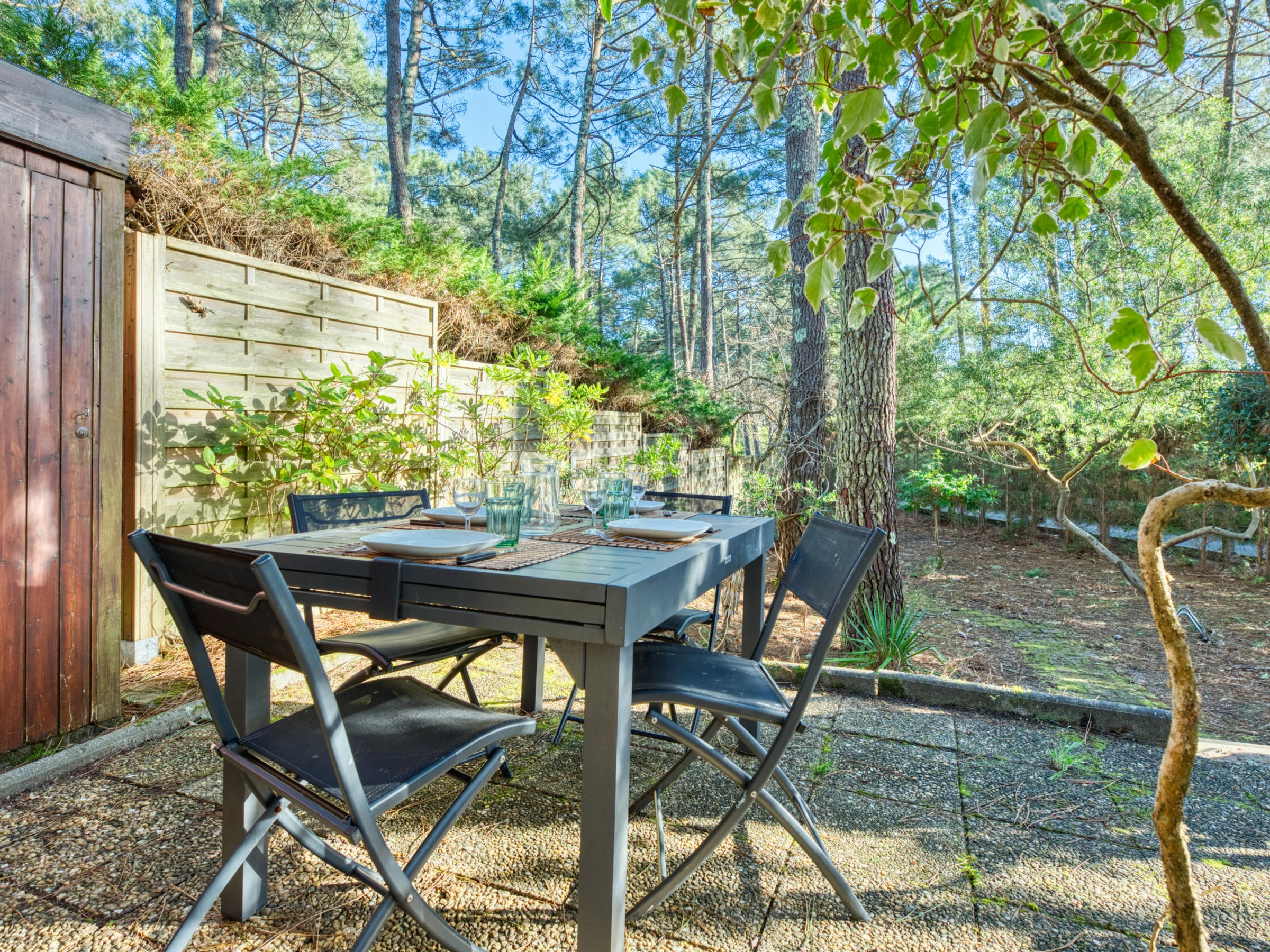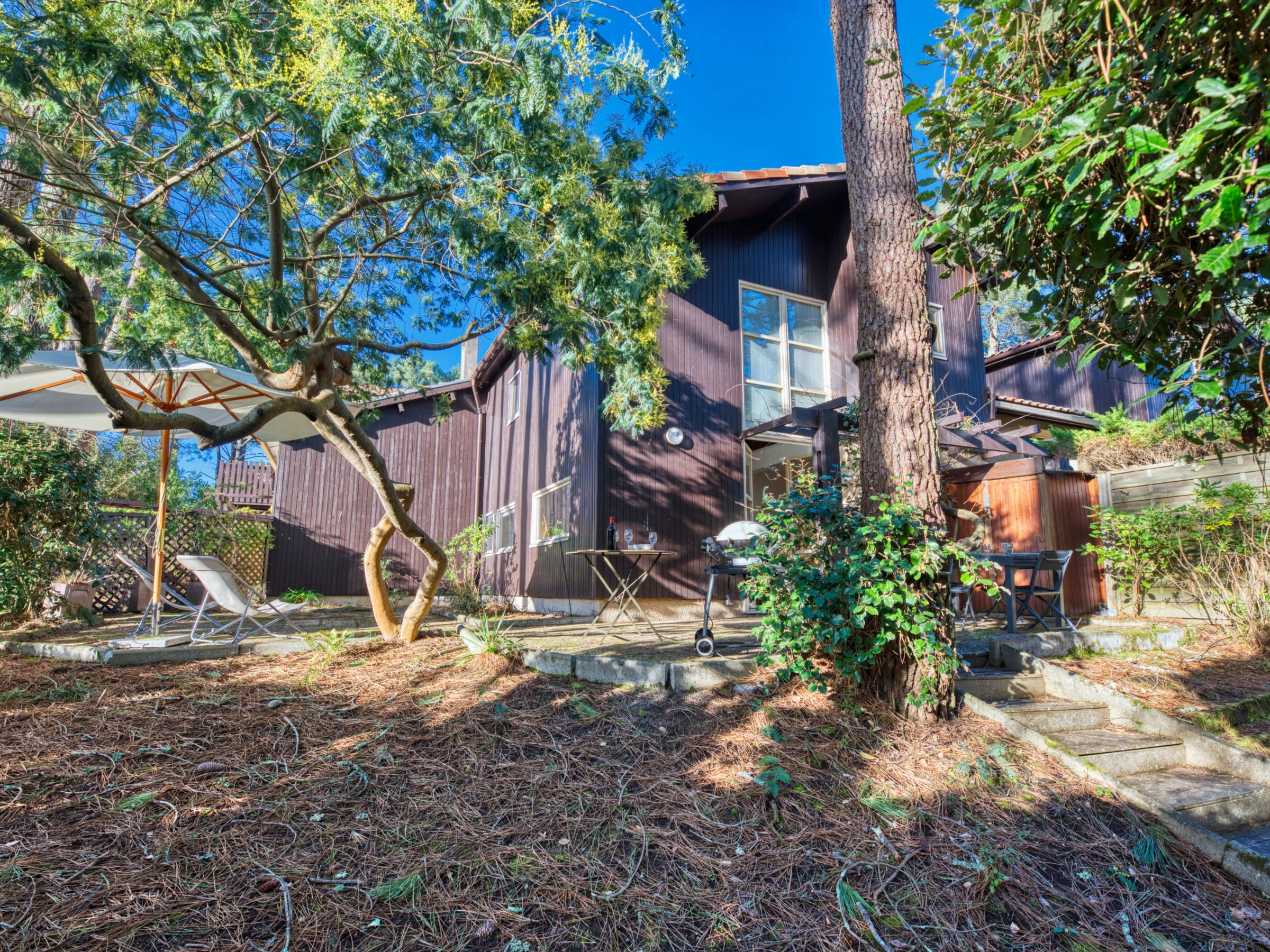 The residence "Hameau du Golf" is an group of terraced houses and apartments built in a quiet position in the wooded heart of the l'Ardilouse golf course (18 holes) residence "Hameau du golf". 4 km from the centre, 4 km from the sea, 3 km from the lake, 4 km from the beach. Shop 4 km, restaurant 4 km, bus stop "Le Huga" 1.5 km, sandy beach 4 km. Golf course (18 hole) 10 m, riding stable 10 km. Nearby attractions: Bordeaux 60 km, Dune du Pilat 80 m, Saint Emilion 80 m. Club house 100 m.