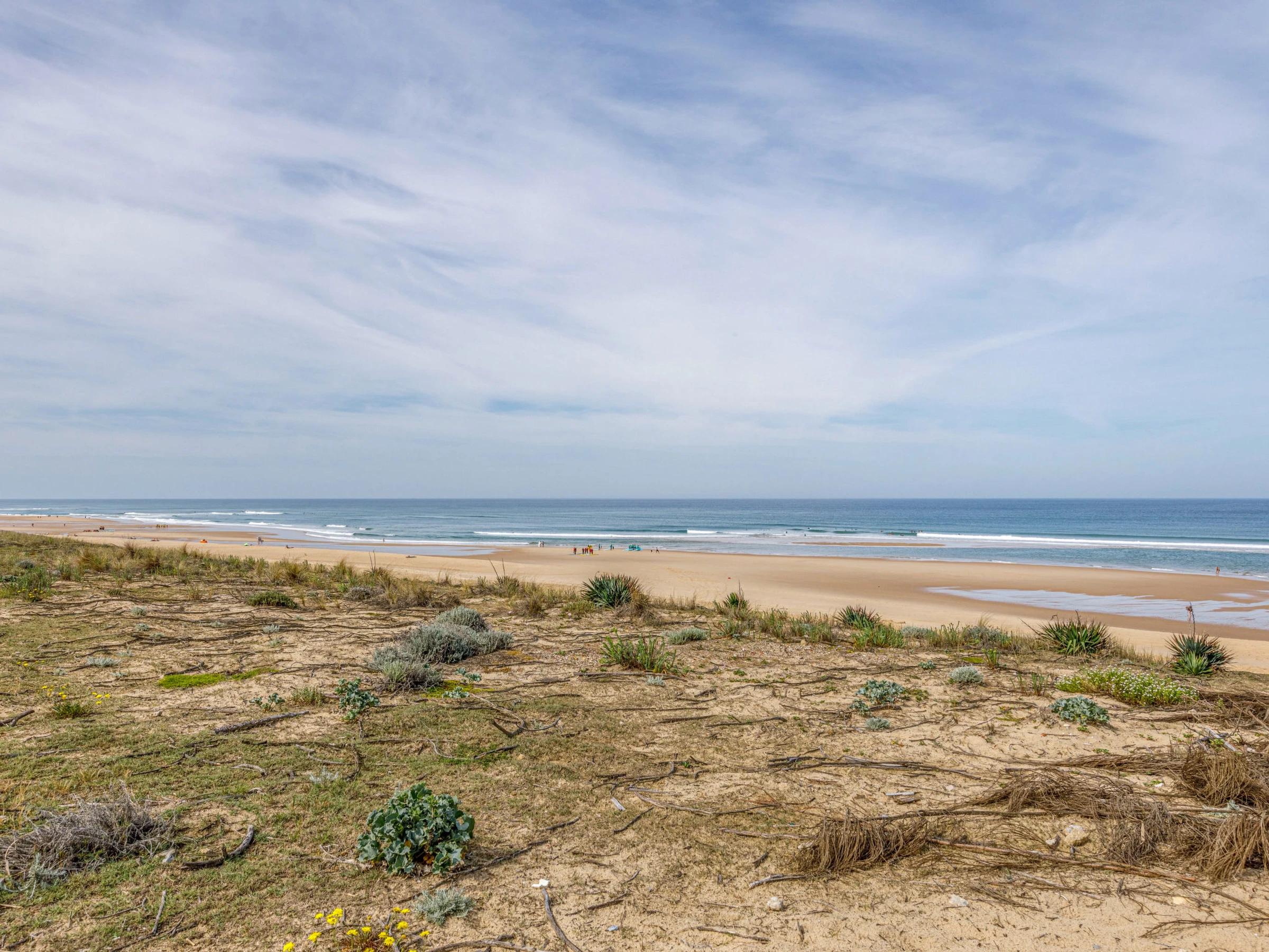 Apartment block "Les Maisons de l'Océan", 3 storeys. 500 m from the centre, 45 m from the sea, 45 m from the beach. Parking space or garage only for small to medium-sized cars. Shop 500 m, supermarket 600 m, restaurant, bakery, bicycle rental 500 m, bus stop "Salle l'Escoure Océan" 900 m. Golf course (18 hole) 4 km, surf school 100 m, tennis 2 km, riding stable 15 km. Please note: Additional accommodations can be booked.