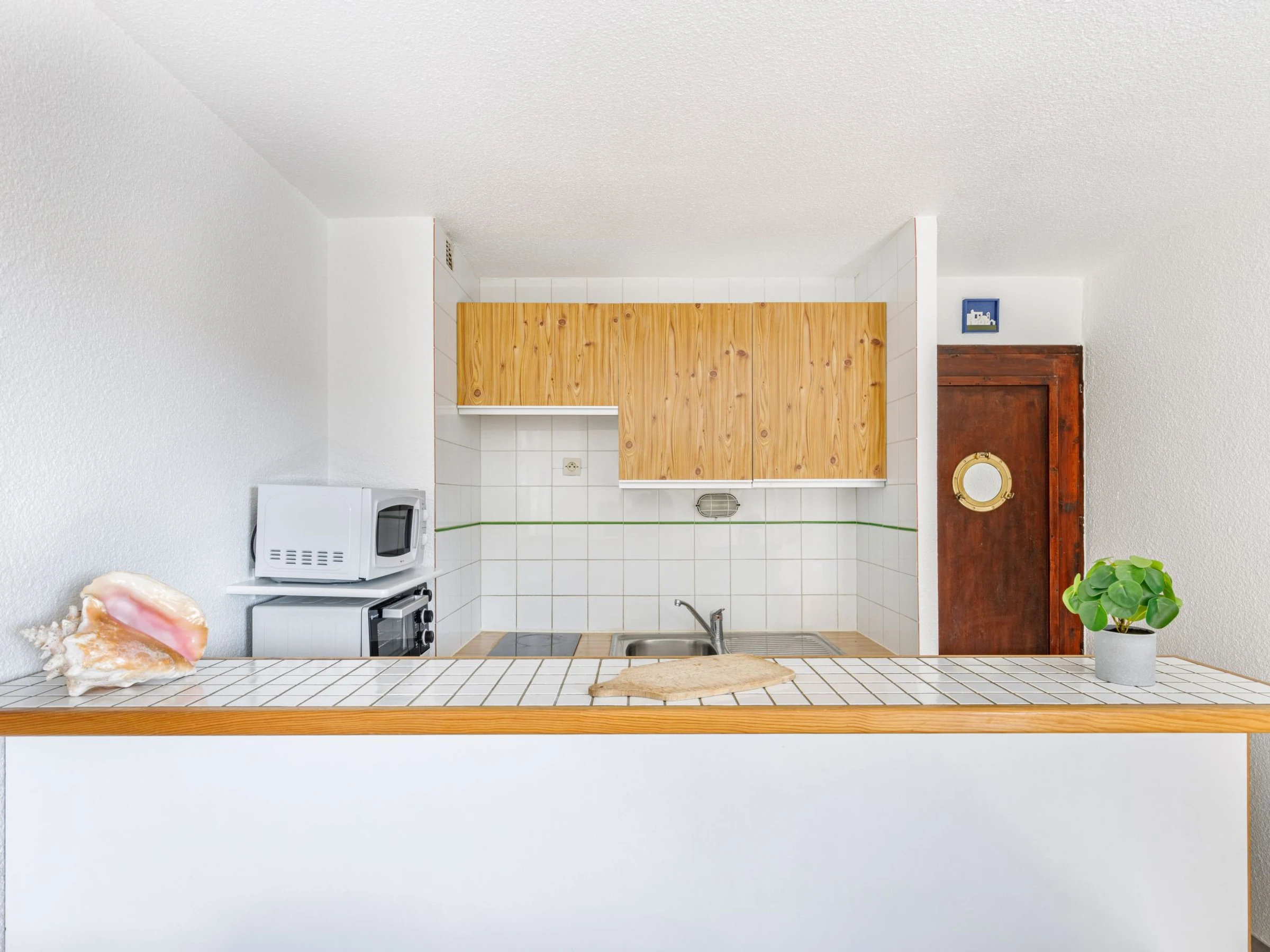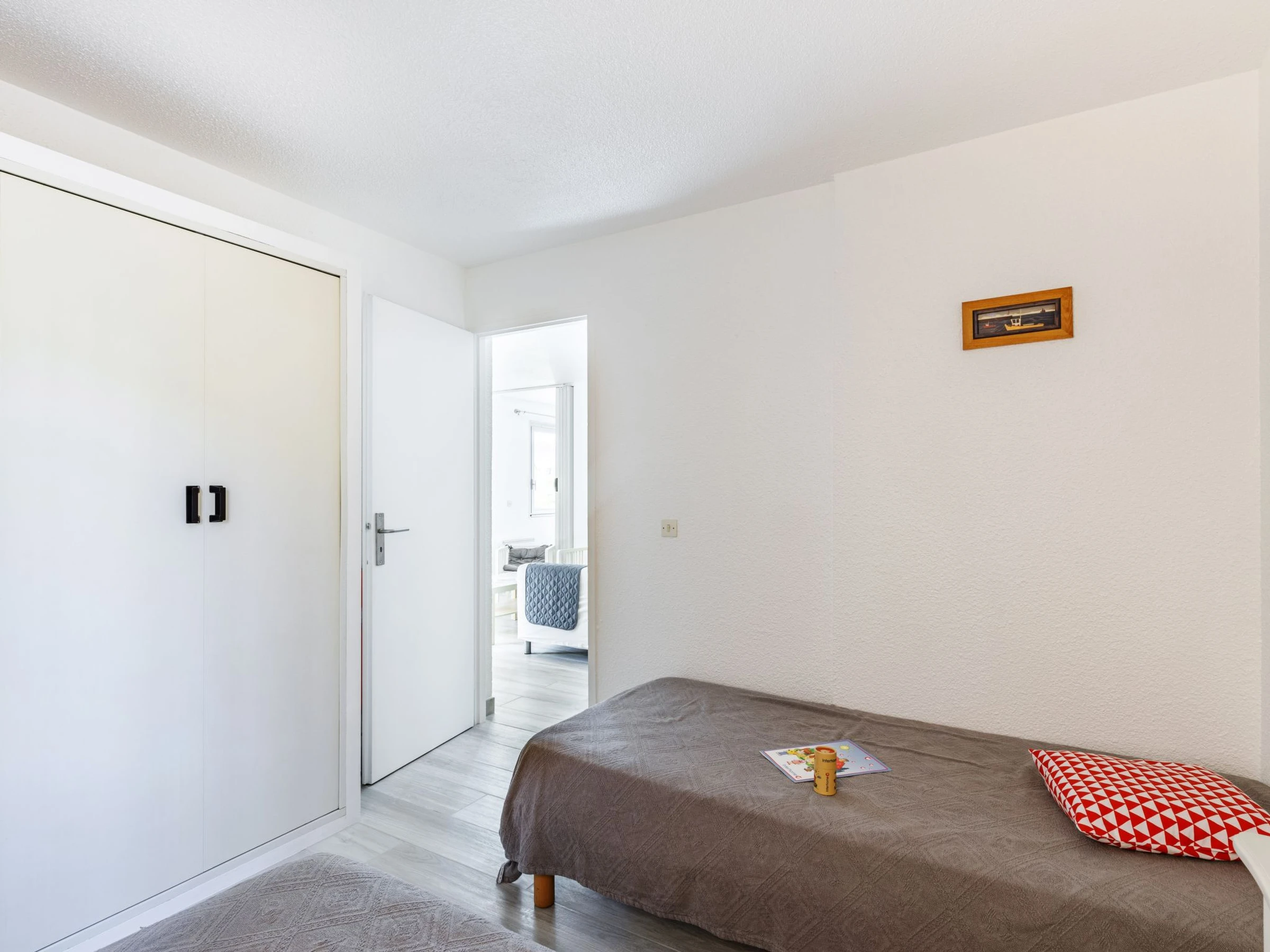3-room apartment 42 m2, on the ground floor. Comfortable furnishings: living/dining room with TV. Exit to the veranda. 1 room with sliding door with 1 french bed (140 cm). 1 room with 2 beds (90 cm). Kitchenette (2 hot plates, oven, dishwasher, microwave). Shower/WC. Heating. Facilities: washing machine. Internet (WiFi, extra). Parking space n 118. Please note: non-smokers only. Smoke alarm.