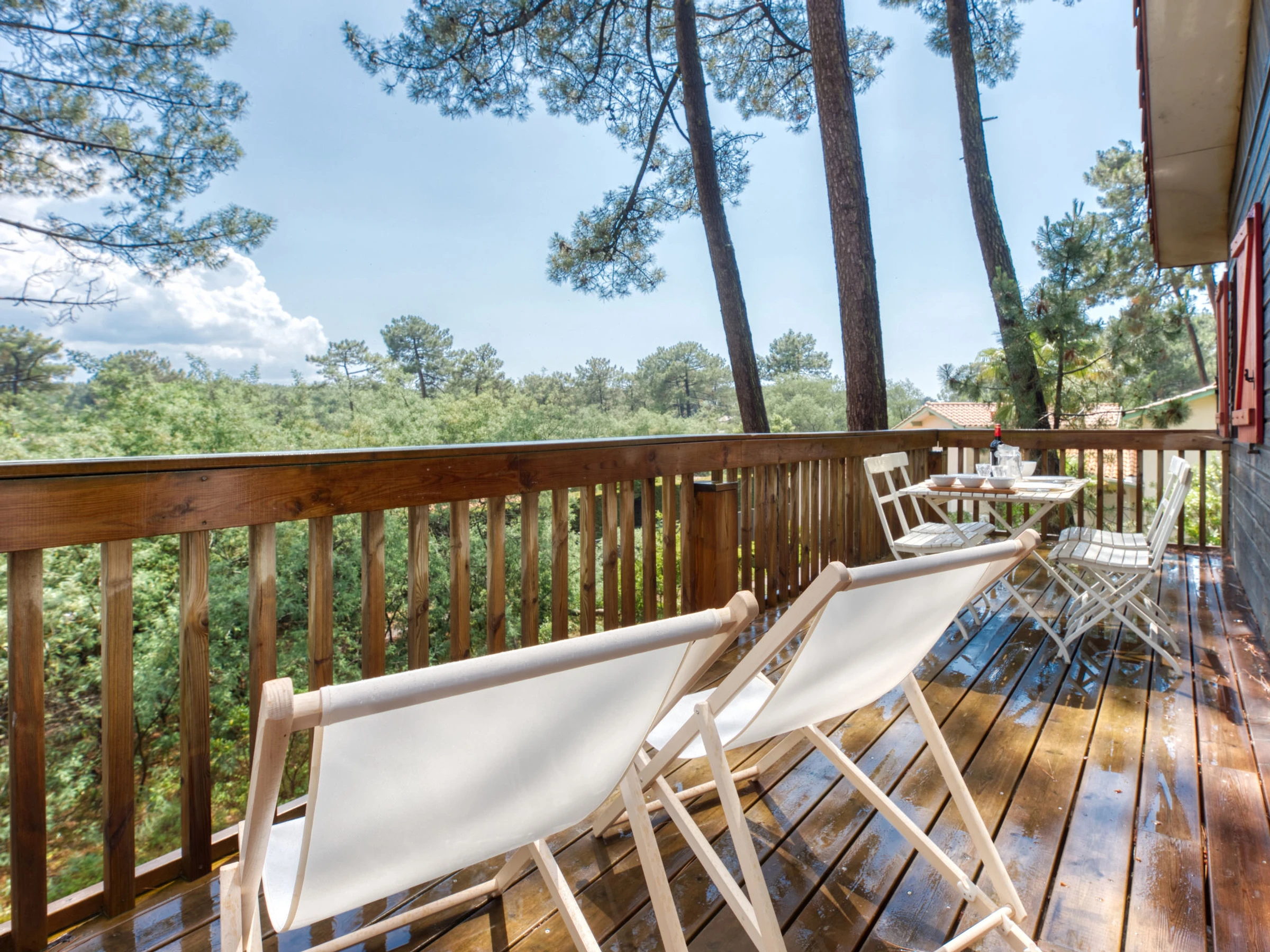 Chalet "Picasso". 2 km from the centre, 1 km from the sea, 1 km from the beach. Private: property 400 m2. Shop 1 km, supermarket 850 m, restaurant 1 km, bus stop "Salle l'Escoure Océan" 1 km, sandy beach 600 m. Golf course (18 hole) 4 km, tennis 3 km, riding stable 15 km.