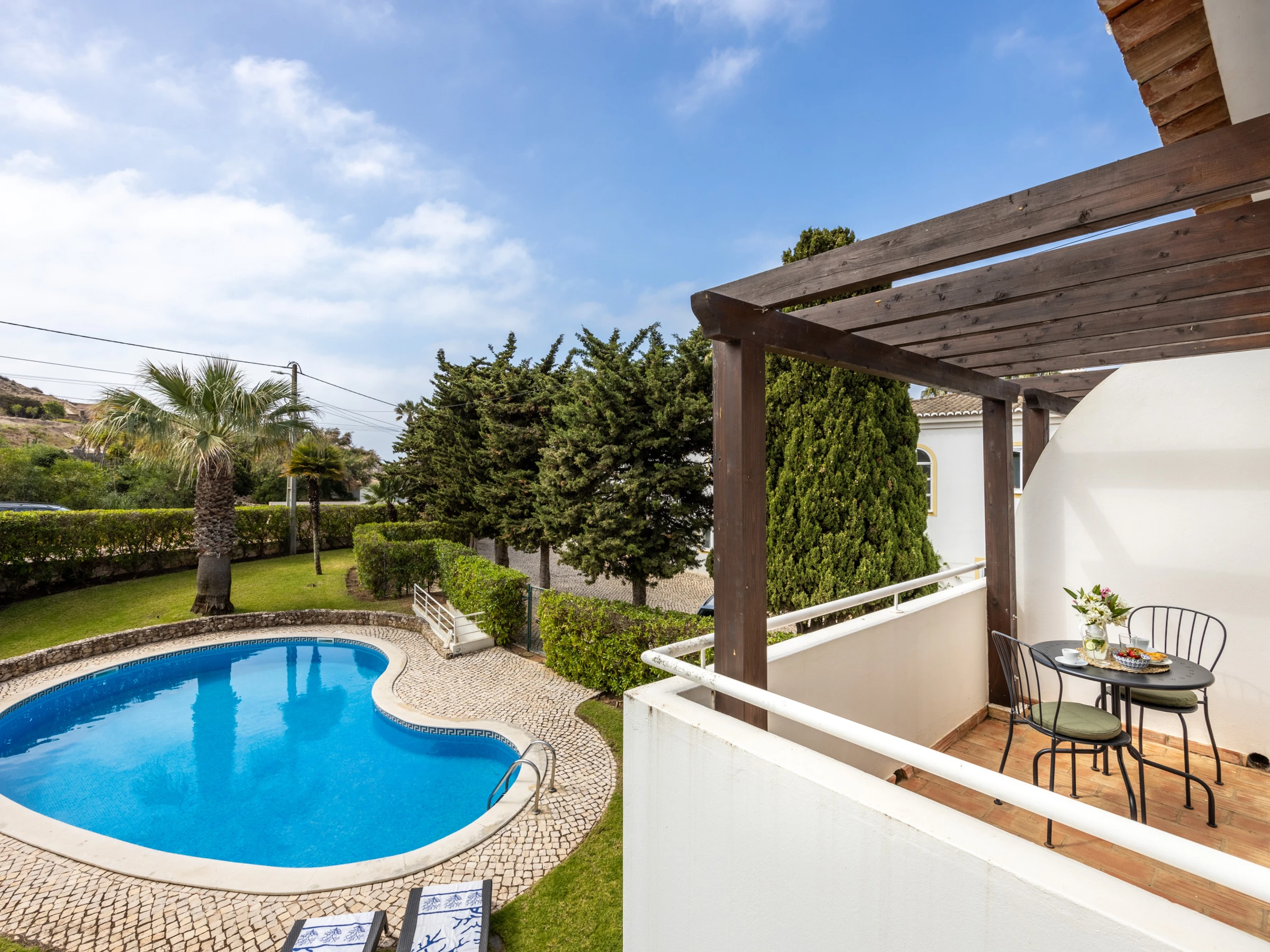 By the pool (which is shared with 3 other properties in the condominium) our guests can enjoy outdoor furniture (sun loungers, umbrella with base, dining table and chairs)