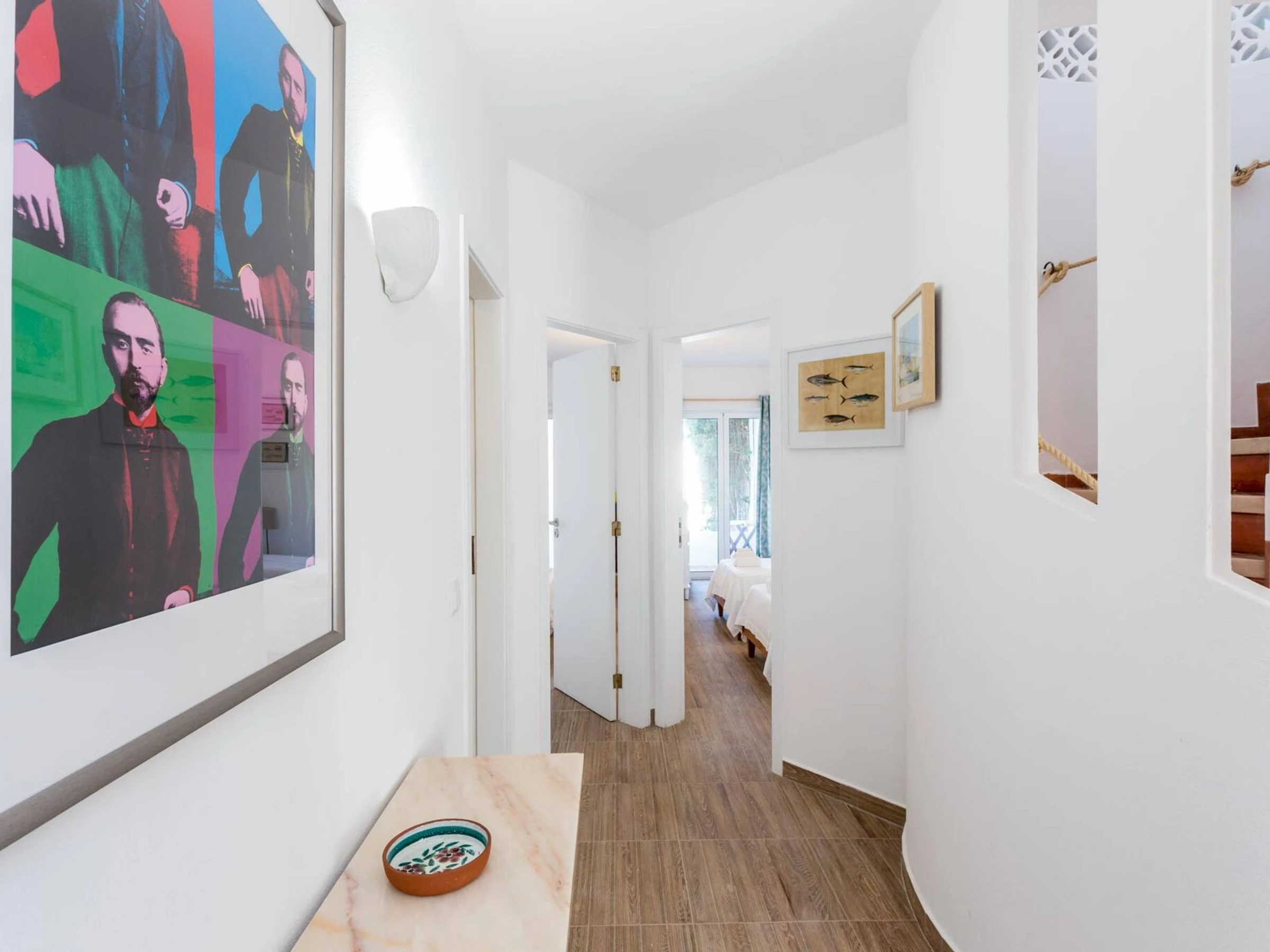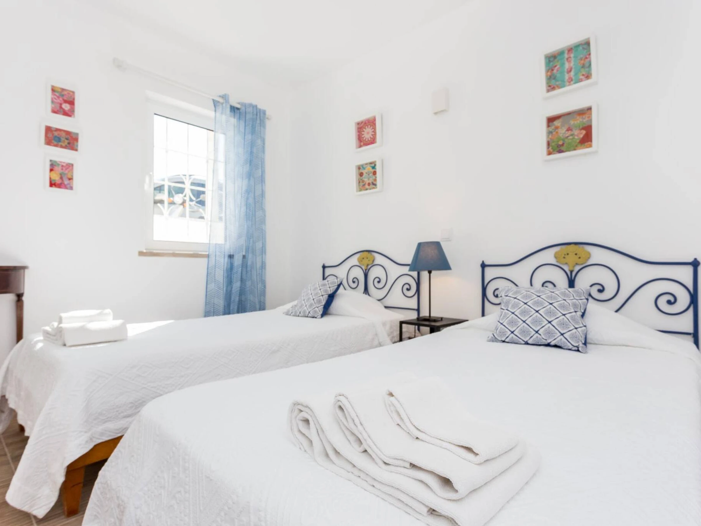 For a max of 6 guests, Ground floor: bedroom 1 with 2 single beds, fitted wardrobe and en-suite shower room, bedroom 2 with super king bed and bedroom 3 with 2 single beds, both with fitted wardrobes and opening onto a balcony with a few steps down to the private and enjoyable patio, surrounded by plants and flowers with gate onto Rua do Poço.