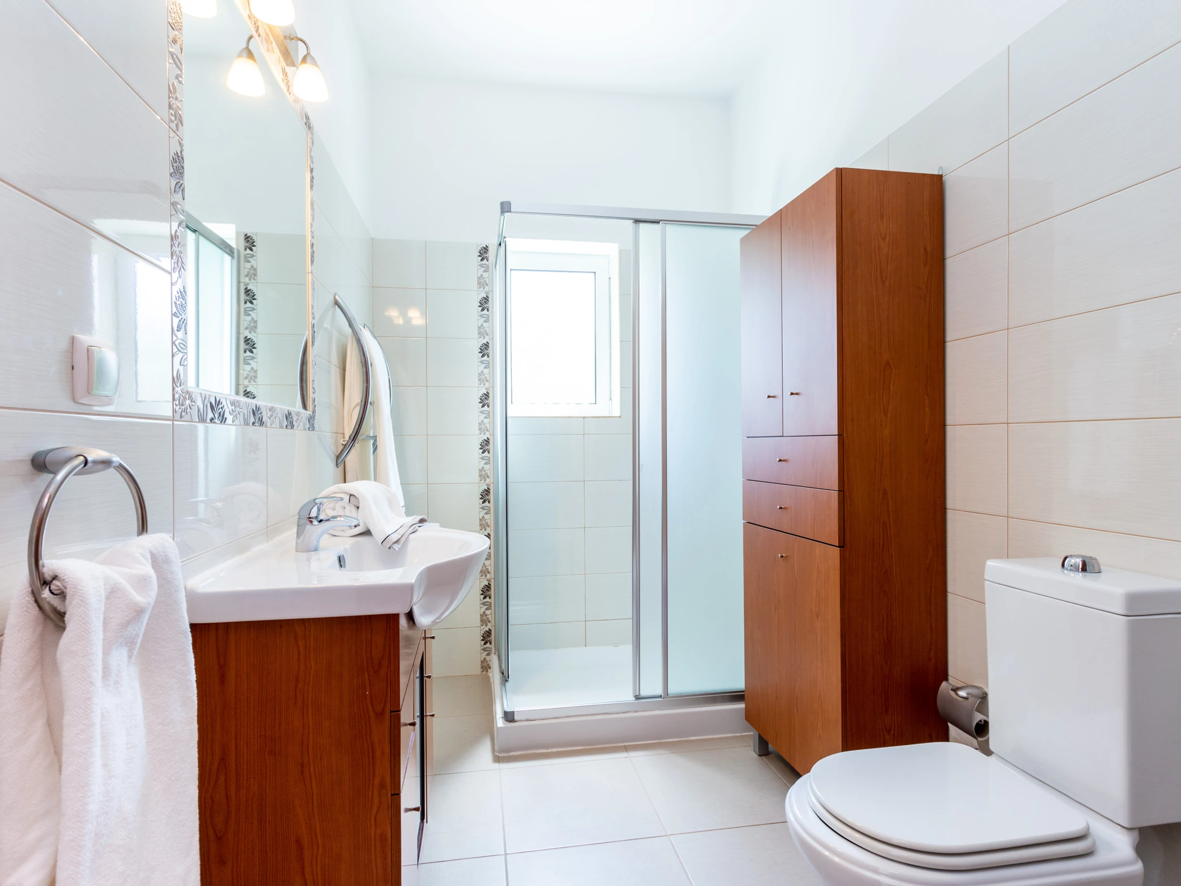 At the entrance hall, there is a common bathroom, complete, with bath and shower fittings. All rooms and living room have AC.