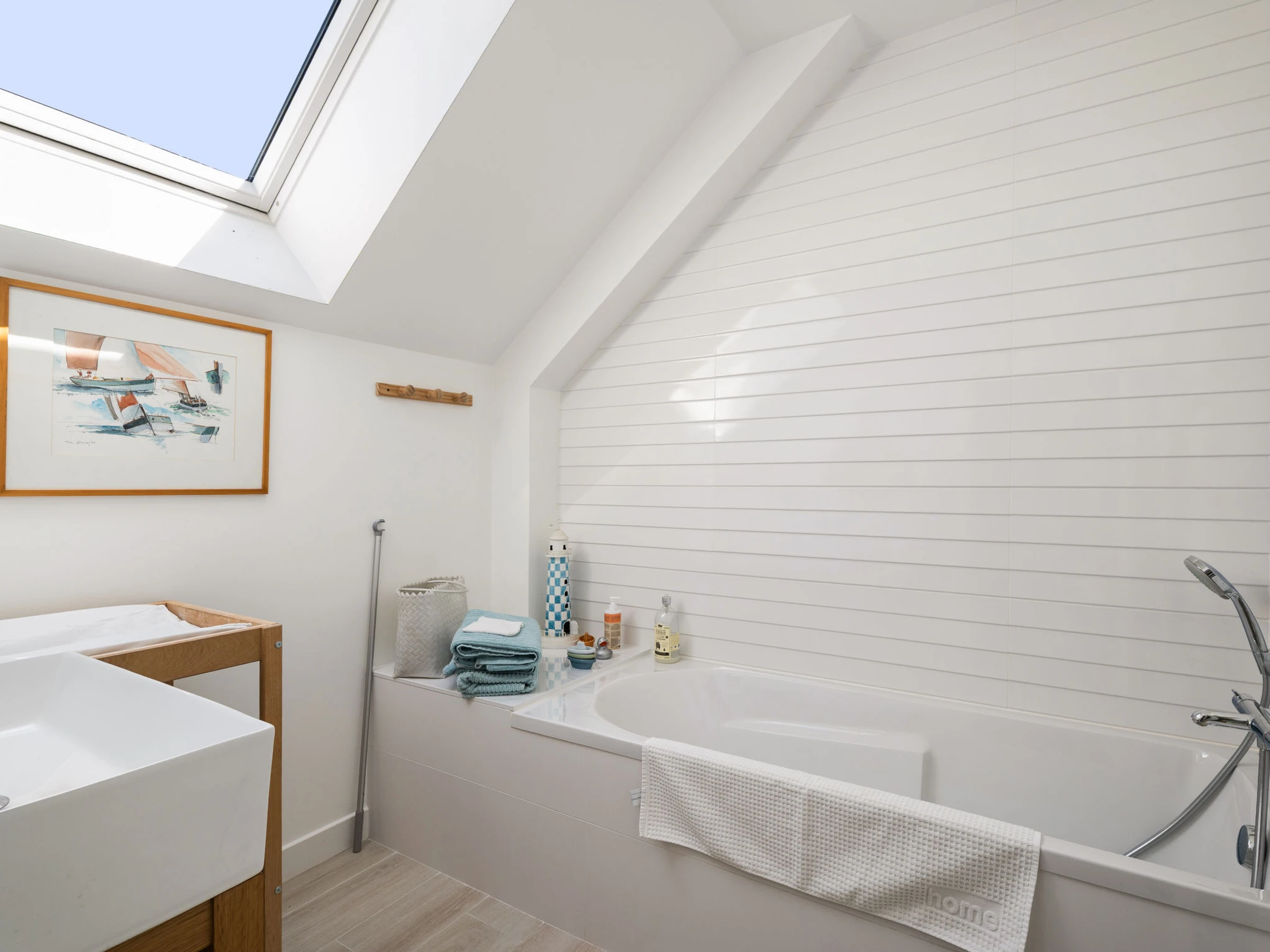 Lancieux 12 km from Dinard: Terraced house "Ker Maria". In the centre of Lancieux, excellent location: right in the centre but still quiet, 1 km from the sea, 1 km from the beach. For shared use: table tennis. Private: property 300 m2, garden 100 m2 (fenced). Shop 1.5 km, grocery 600 m, supermarket 1.5 km, restaurant 600 m, bakery 20 m, 2 minute walk to the centre, bus stop 1 km, sandy beach "Plage de Saint Sieu" 800 m, shingle beach "Plage du Rocher" 1.2 km, thermal baths "Thalassothérapie de Dinard" 15 km. Golf course (18 hole) 15 km. Nearby attractions: Centre de Saint Briac-sur-Mer 3 km, Centre de Dinard 12 km, Saint Malo 17 km, Rennes 72 km. Hiking paths: Sentier de randonnées Côtes d'Emeraude. Owner lives in separate semi-detached house.