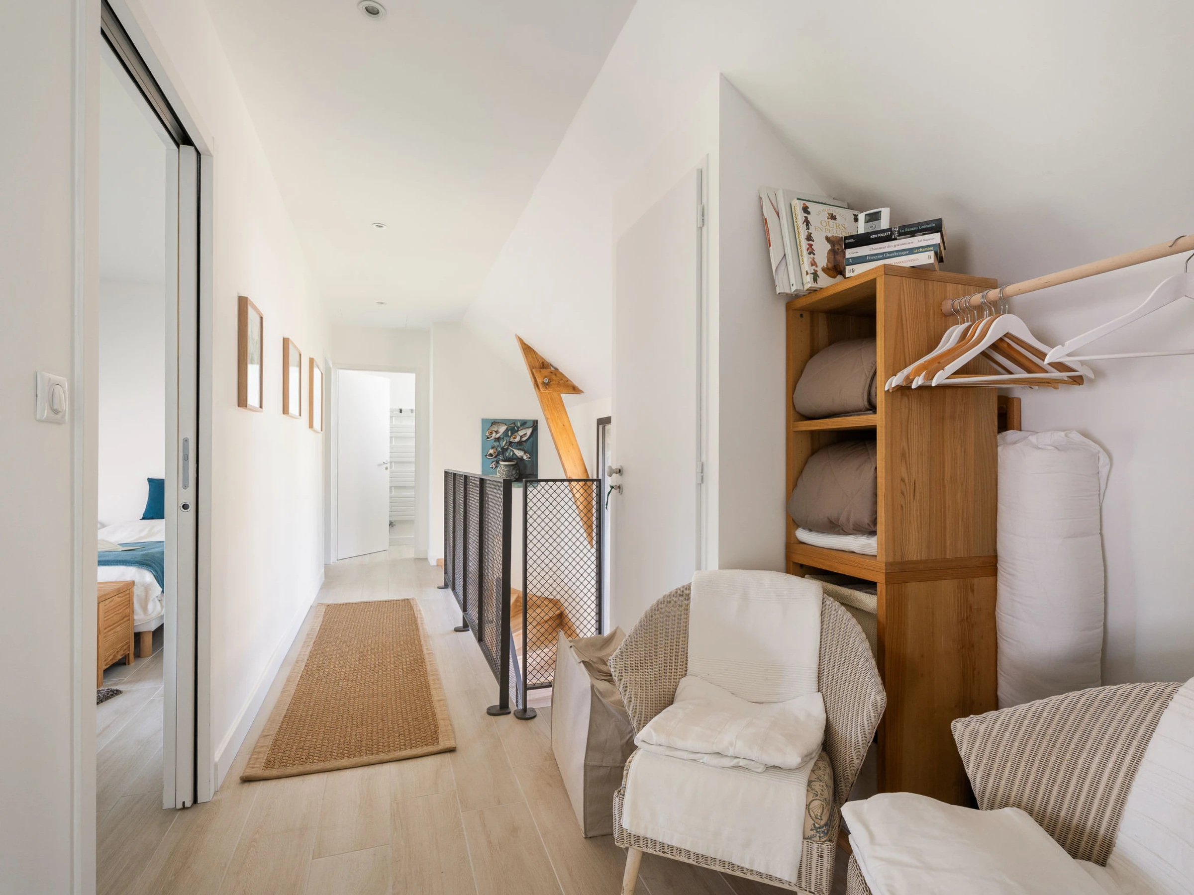 "Ker Maria", 4-room terraced house 100 m2. Comfortable and beautiful furnishings: living/dining room with CD-player and DVD. Exit to the terrace. Open kitchen (oven, dishwasher, 4 induction hot plates, toaster, kettle, microwave, freezer, electric coffee machine, Capsules for coffee machine (Nespresso)). Exit to the terrace. Sep. WC. Upper floor: 1 large room with 4 beds (80 cm, length 190 cm). 2 rooms, each room with 1 french bed (1 x 160 cm, length 190 cm). Bathroom, shower, sep. WC. Electric heating. Terrace 20 m2, terrace 10 m2. Terrace furniture, barbecue. View of the garden. Facilities: washing machine, iron, children's high chair, baby cot for up to 2 year olds. Internet (WiFi, free). Parking (2 cars). Please note: smoke alarm. Offer by a private individual according to  Art. 155, IV of CGI.