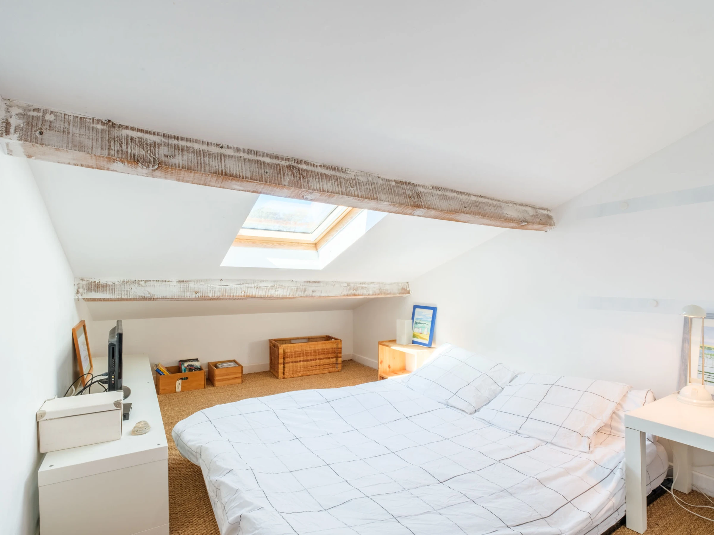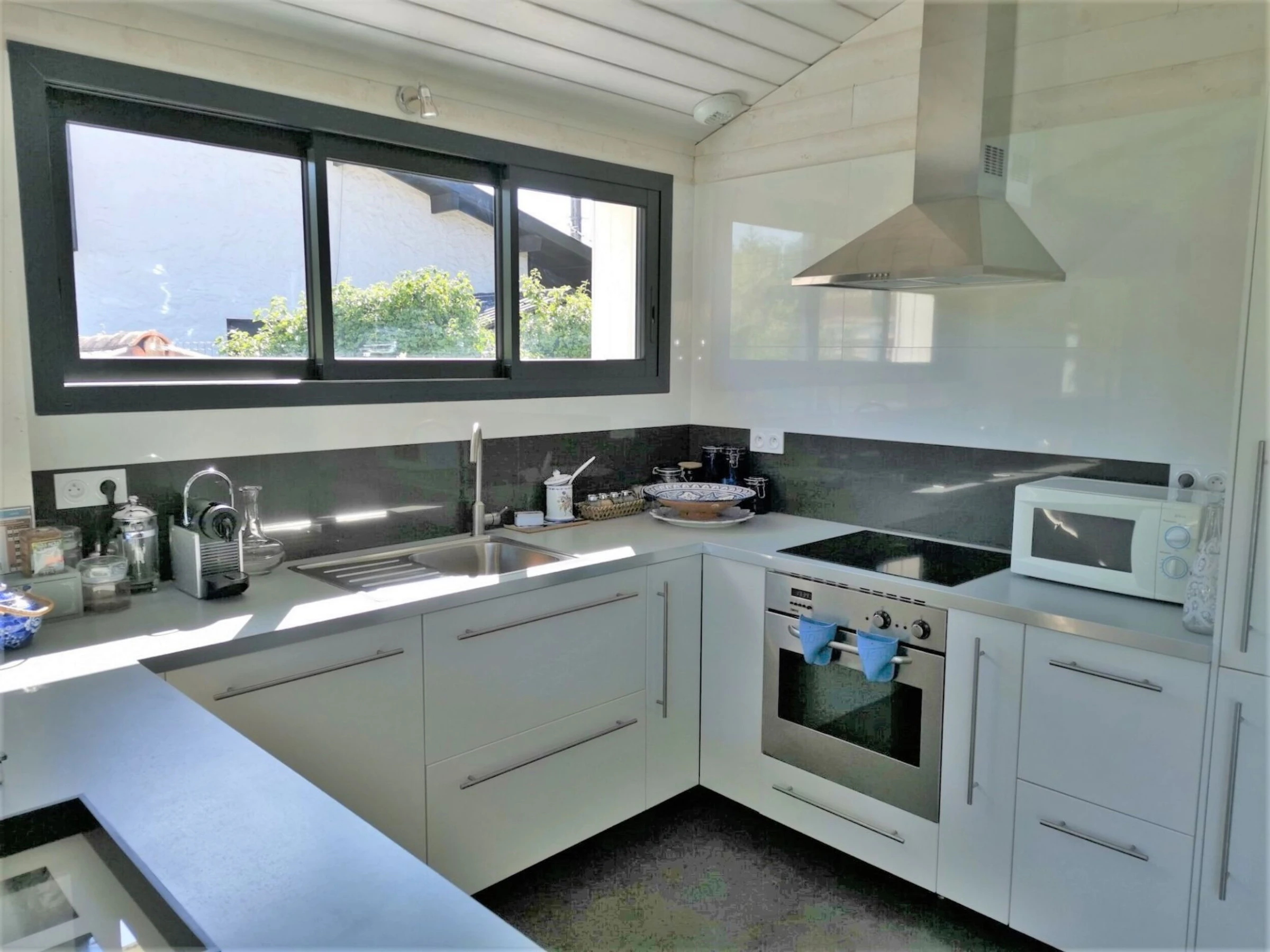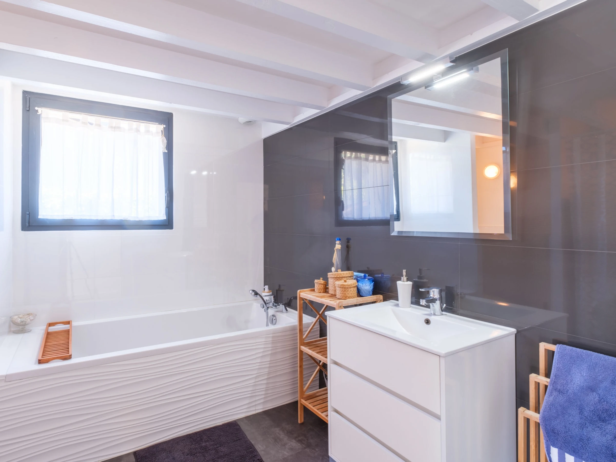 6-room villa [hidden] m2. Spacious and bright, comfortable and beautiful furnishings: large living/dining room 40 m2 with panoramic window with dining table and air conditioning. Exit to the terrace. Lounge with TV (flat screen). 2 rooms, each room with 1 french bed ([hidden] cm, length [hidden] cm). 1 room with 1 french bed ([hidden] cm, length [hidden] cm). Gallery with sloping ceilings, ceiling height 50 - [hidden] cm with 1 french bed ([hidden] cm, length [hidden] cm). Open kitchen (oven, dishwasher, 4 induction hot plates, toaster, kettle, microwave, freezer, electric coffee machine, Capsules for coffee machine (Nespresso) extra). Bath/WC, shower, sep. WC. Electric heating, gas heating. Terrace, south-east facing position. Terrace furniture, barbecue (portable), deck chairs (4). Facilities: washing machine, hair dryer. Internet (WiFi, free). Please note: non-smoking house. Smoke alarm. Bed layout is flexible. There are more sleeping options available than the maximum number of people allowed which may, however, not be exceeded. Offer by a private individual according to Art. [hidden], IV of CGI. [hidden]