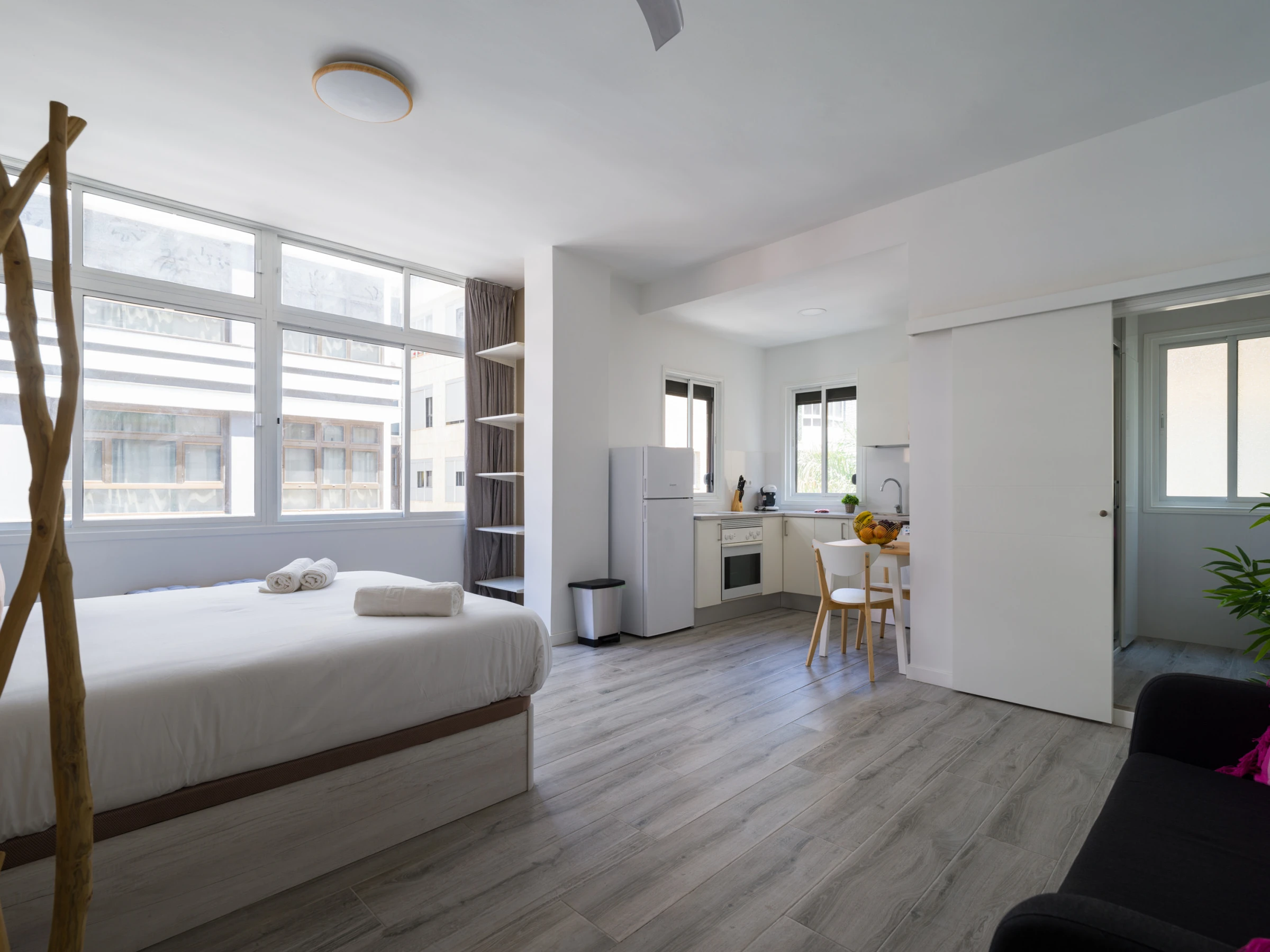 Everything is integrated in a single space, except for the bathroom, which makes it very spacious and comfortable.