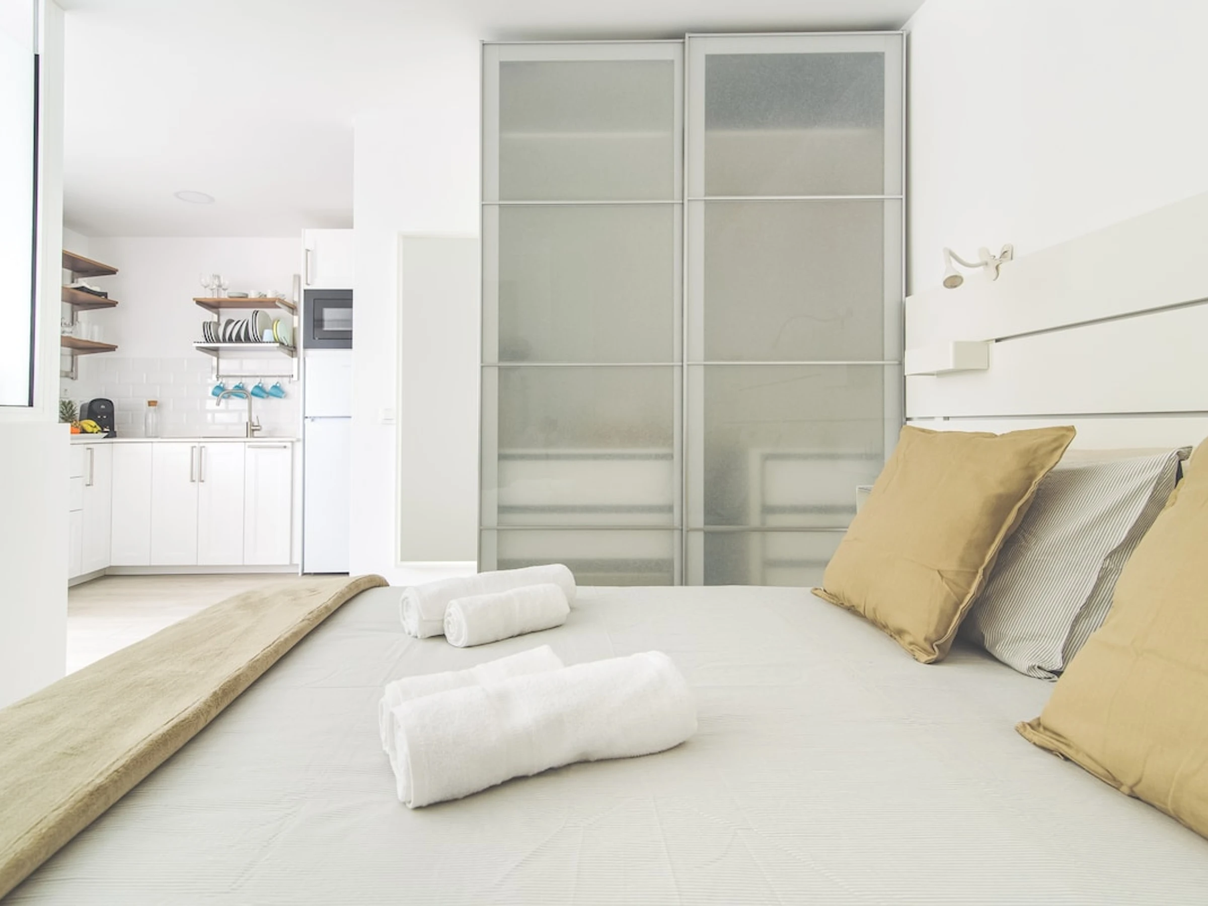 This beautiful flat with views of the city of Las Palmas, is ideal for couples and business trips. Just a few steps from the beach, it has free and fast internet access and can accommodate up to 3 people. The flat is tastefully decorated, and has all the comforts that will make you feel at home. With air conditioning, heating and a fully equipped kitchen integrated in the living room, with dining table. It has a living room with a sofa bed, a nice bedroom with a large window with natural light and directly connected to the bathroom of the house. In an unbeatable location with all the necessary services around and the beach of Las Canteras, one of the most beautiful of the island, just a few steps from the house.