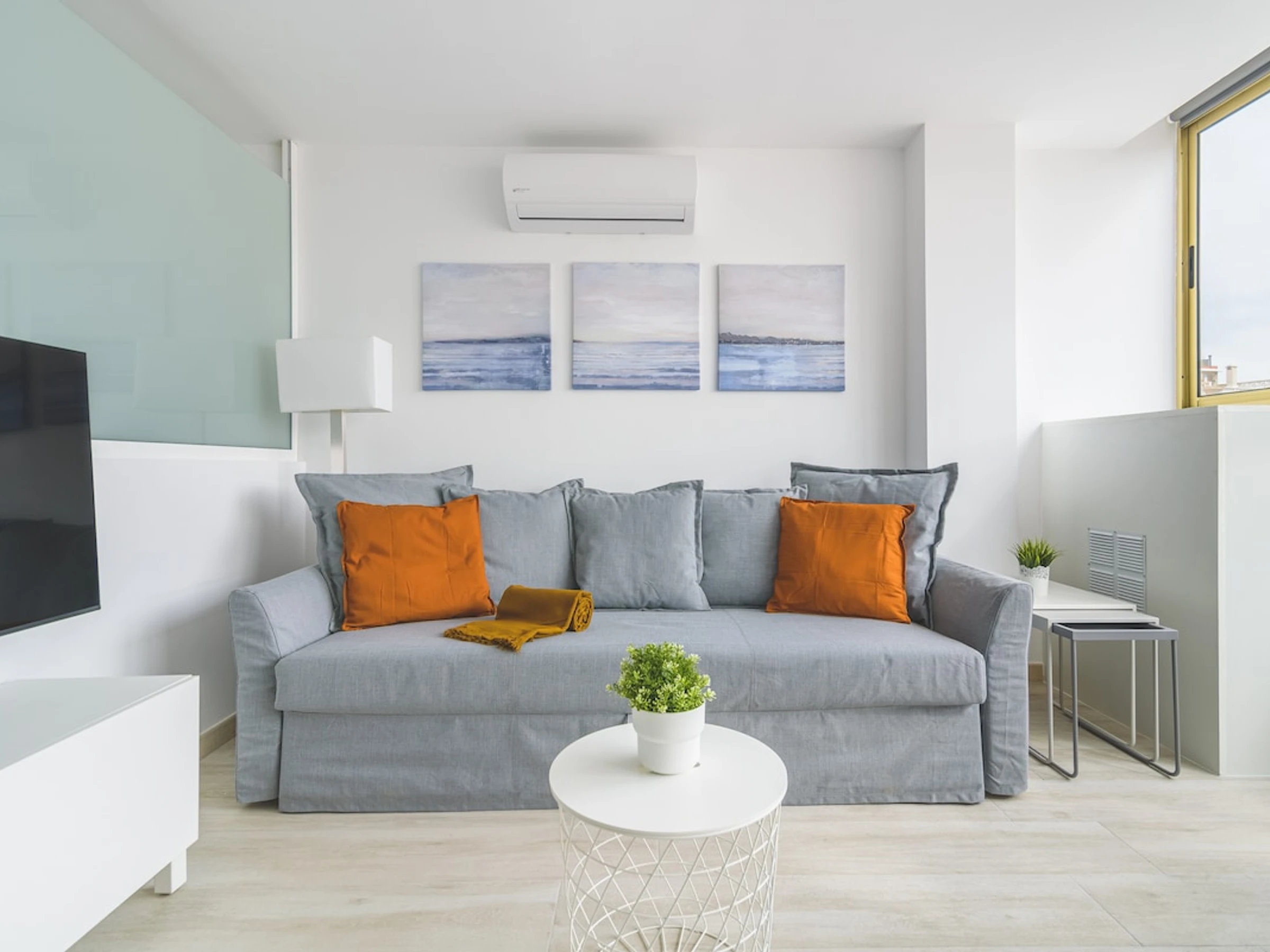 Beautiful flat a few steps from the beach of Las Canteras. With views of the city of Las Palmas, open concept with capacity for 3 people and an exquisite Nordic decoration, which will envelop you during your stay. With large windows surrounding the living room, which makes it an open and bright flat, as well as fibre Wifi Internet for teleworking and air conditioning.