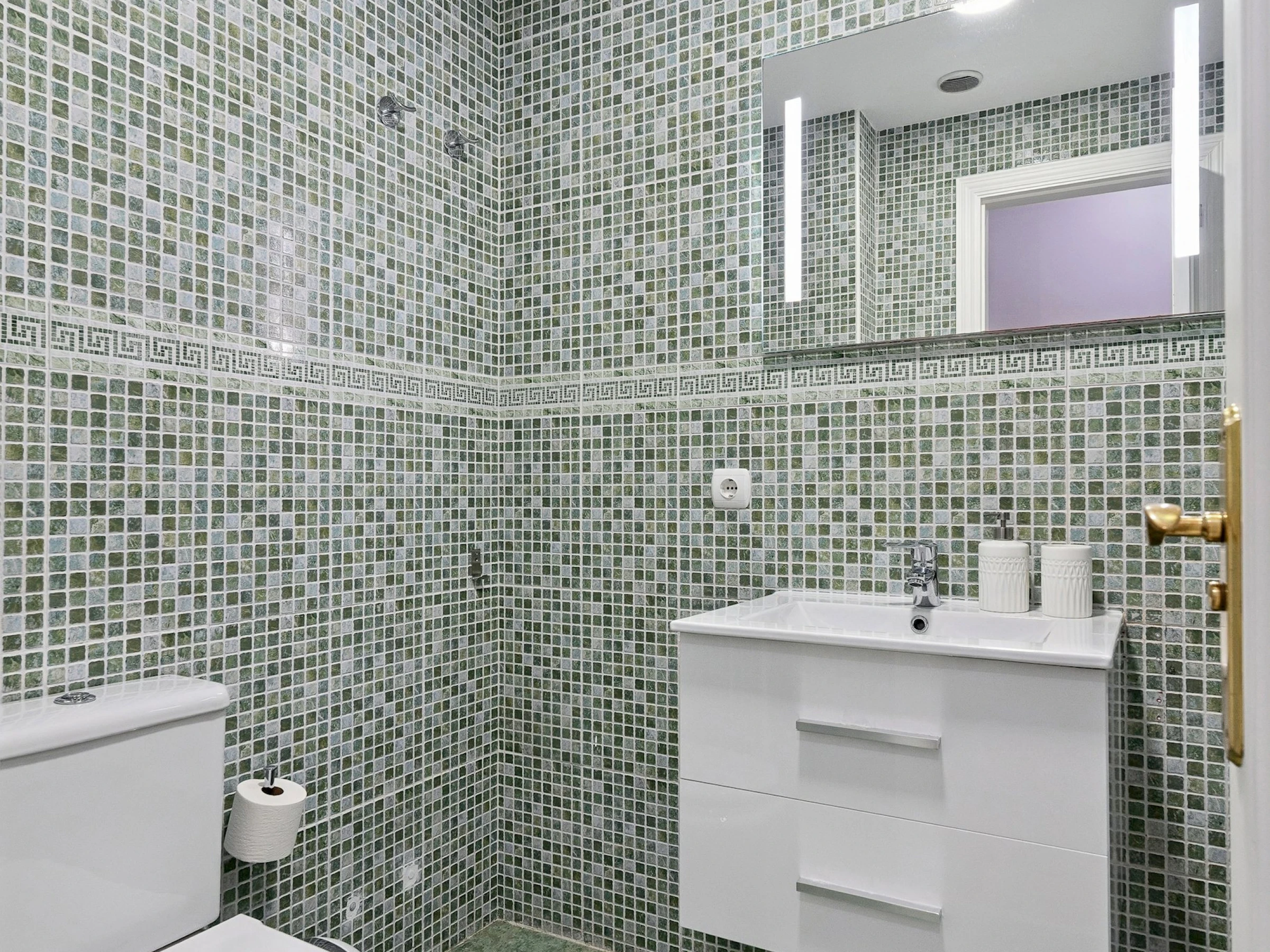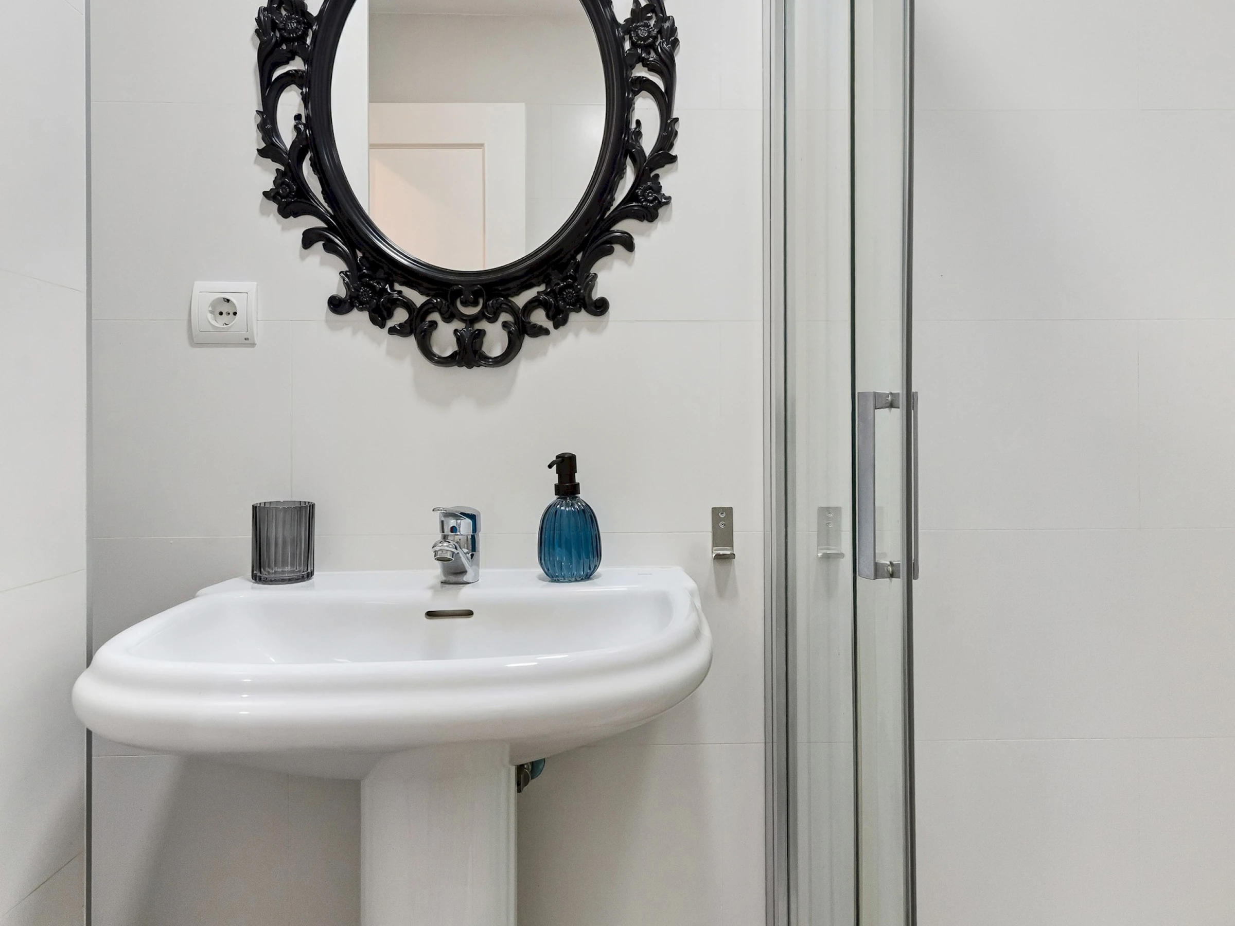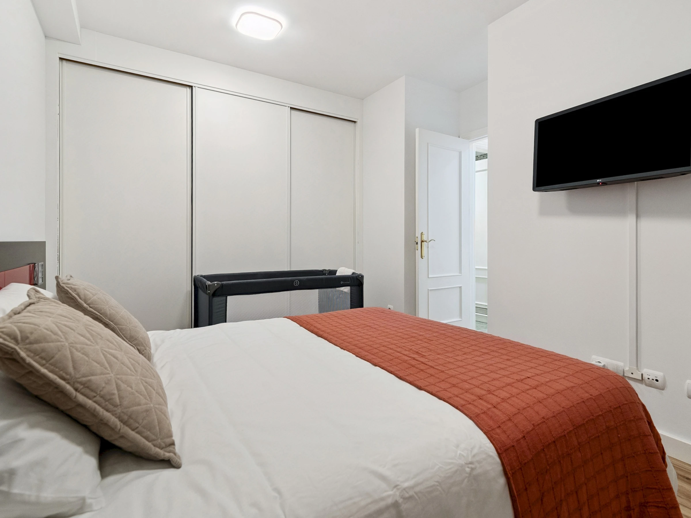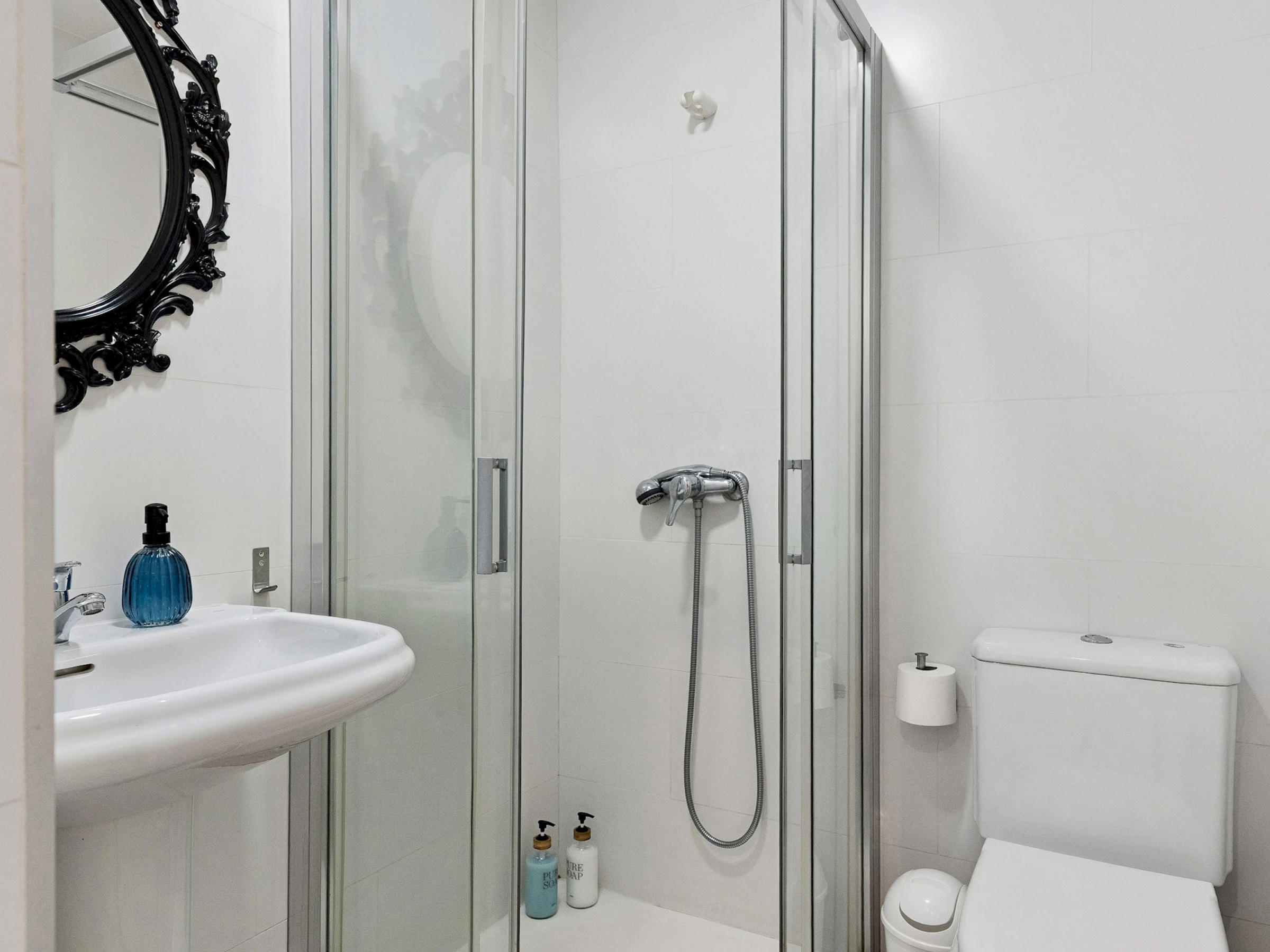 The apartment has three bedrooms: two with double beds and one with two single beds, all decorated in soft tones that create a sense of calm. Designed for the comfort of groups and families, it also features two full bathrooms — one with a shower and another with a bathtub — to suit all preferences.