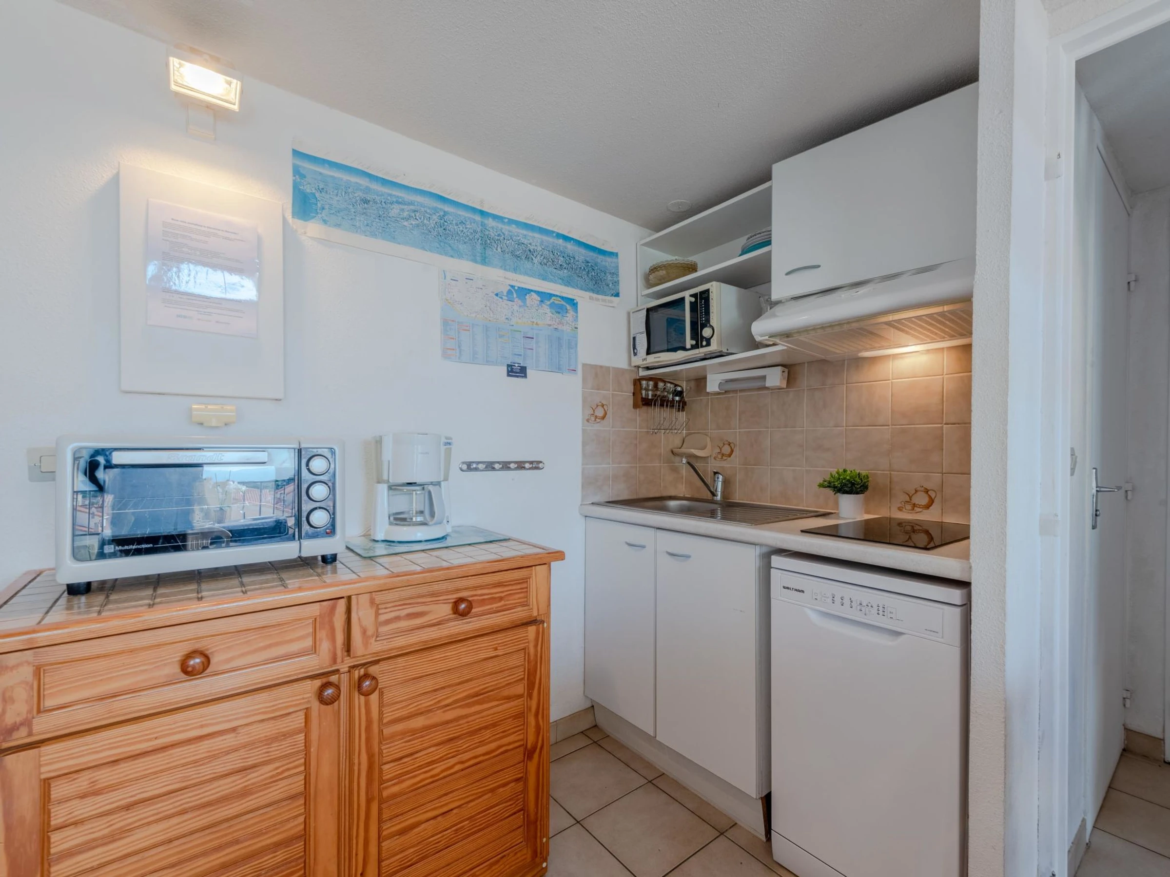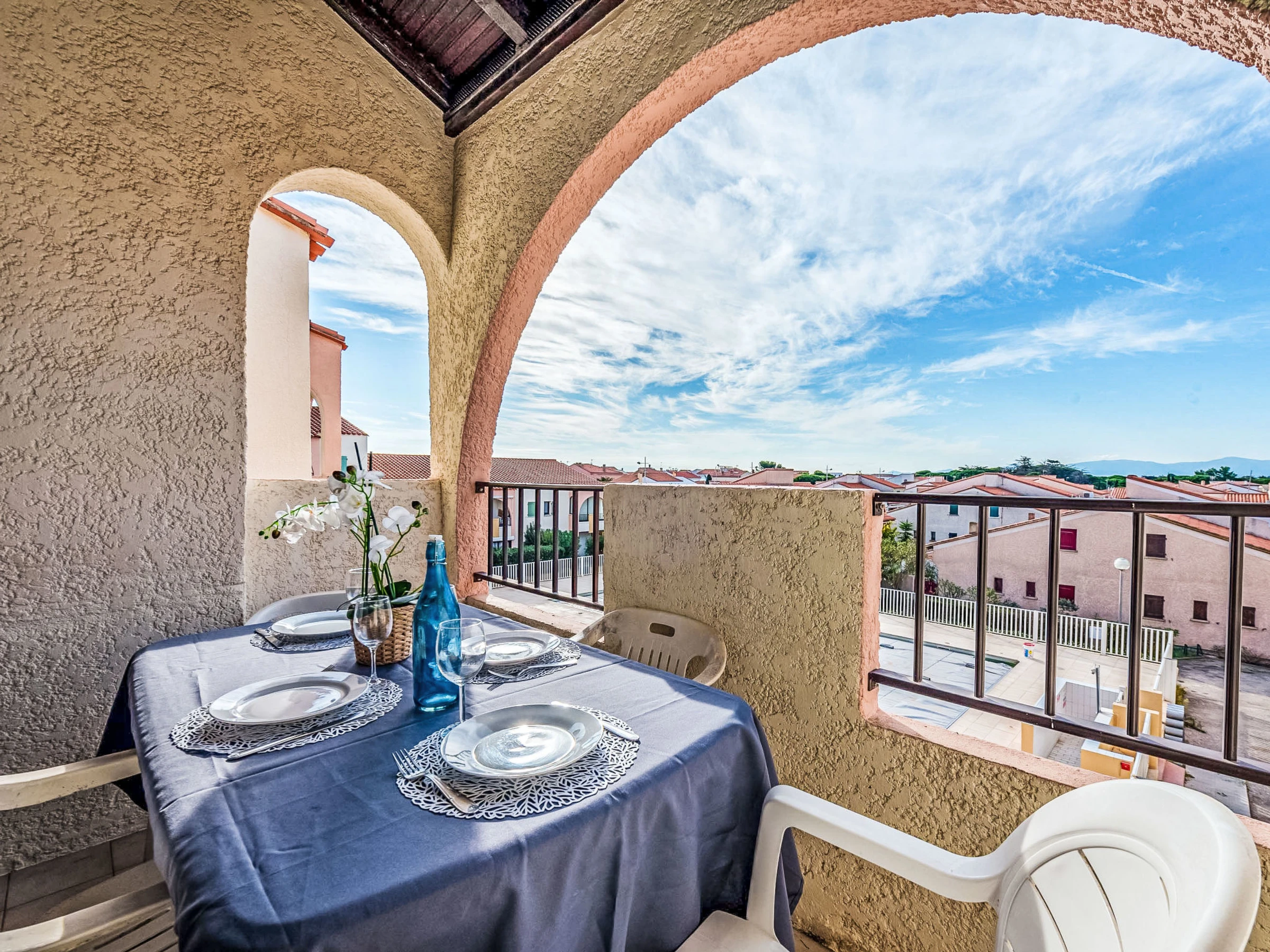 As part of the water restriction measures linked to drought in some of our departments, please note that the rental swimming pool may be closed by prefectural decree. Residence "Les Patios du Barcarès", 2 storeys. In the district of du village, 500 m from the sea, 4 km from the lake, 500 m from the beach. For shared use: swimming pool (18 x 10 m, depth 80 - 220 cm, seasonal availability: [hidden] - [hidden] Children's pool, public parking 50 m. Shop 300 m, grocery, supermarket 200 m, restaurant, bar 250 m, bakery 300 m, café 250 m, bus stop "Mairie" 220 m, railway station "de Perpignan" 20 km, sandy beach "Barcarès village" 500 m. Sports harbour 2 km, sailing school 5 km, tennis 5 km, minigolf 5 km, riding stable 8 km. Nearby attractions: Aqualand Port Leucate 8 km, Réserve Africaine de Sigean 50 km, parcours aventure 7 km, téléski nautique 7 km, cinema 7 km, Spot de windsurf 7 km. Well-known lakes can easily be reached: Lac de Villeneuve de la Raho 28 km, Etang de Leucate ou salses 7 km. Hiking paths: Sentier du guetteur 8 km, la forteresse de salses 15 km, Sentier du littoral Collioure 40 km. Please note: no lift. Entertainment in the season. The photograph shows a typical example. Additional accommodations can be booked.