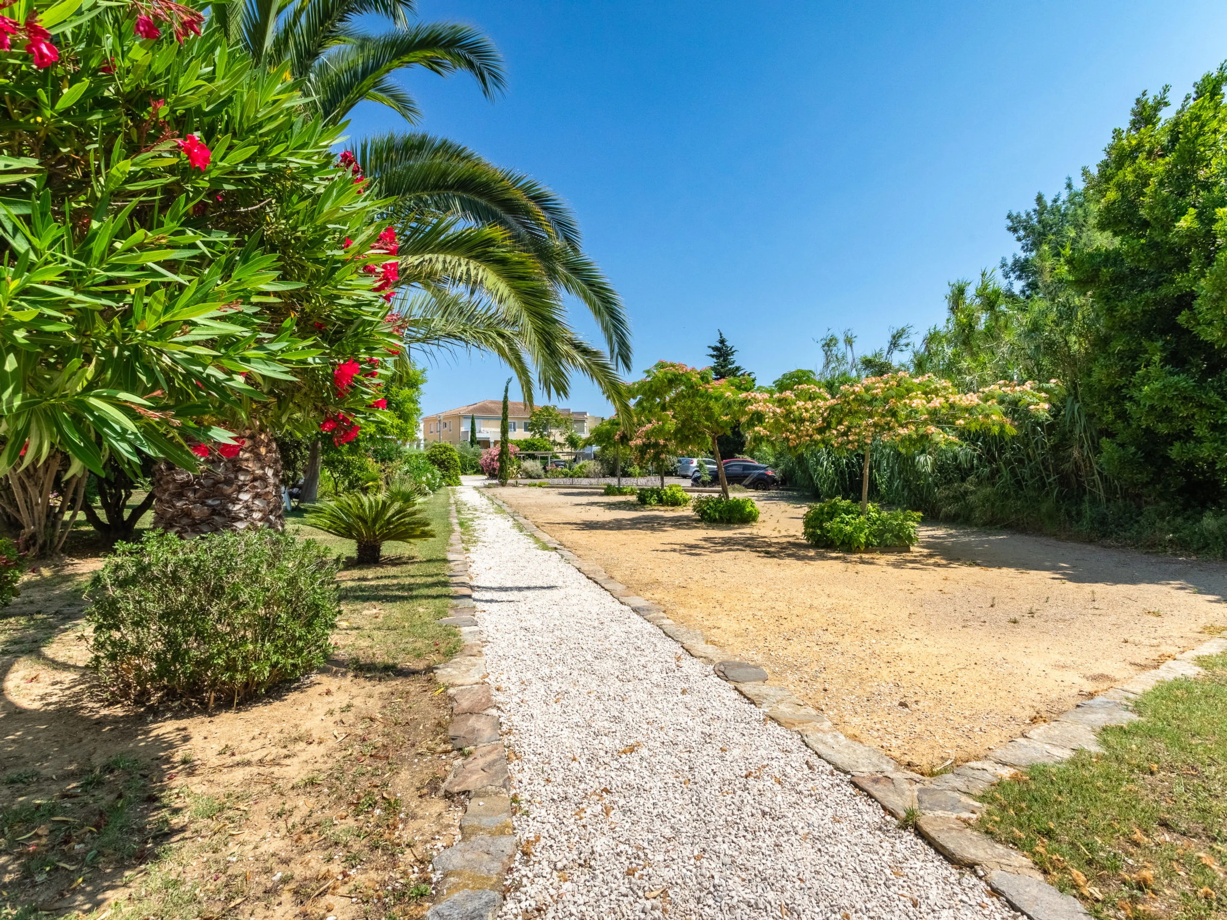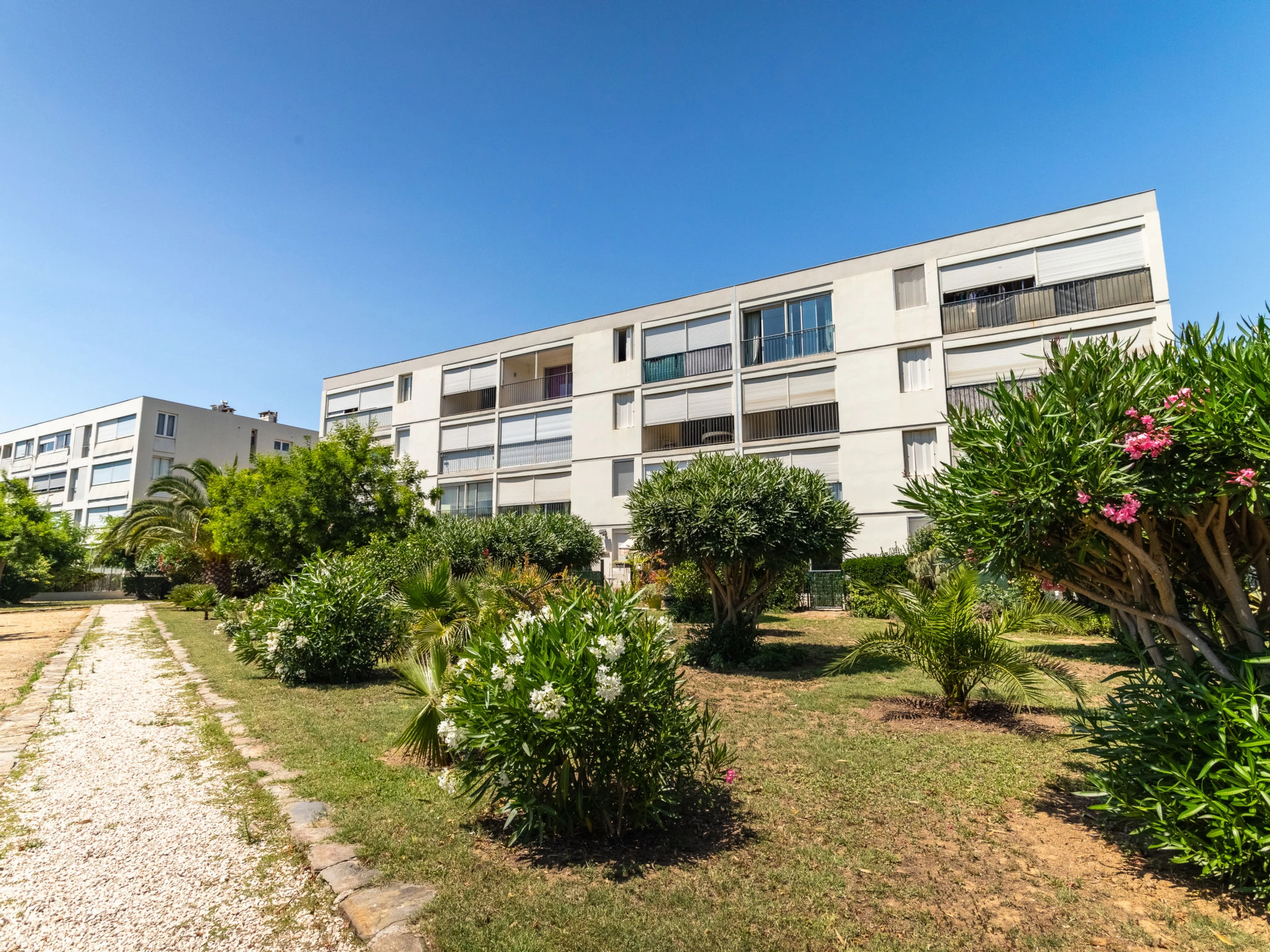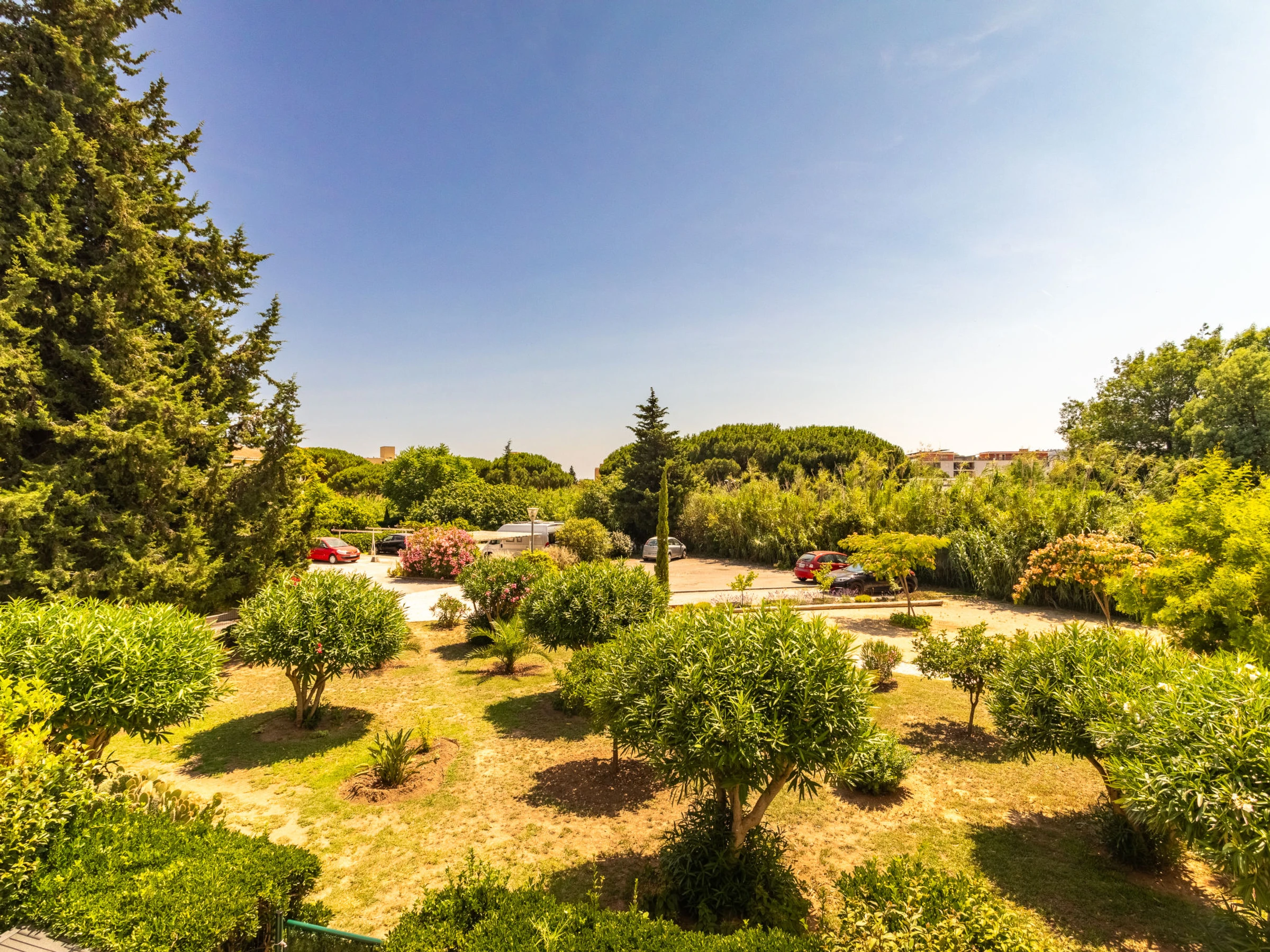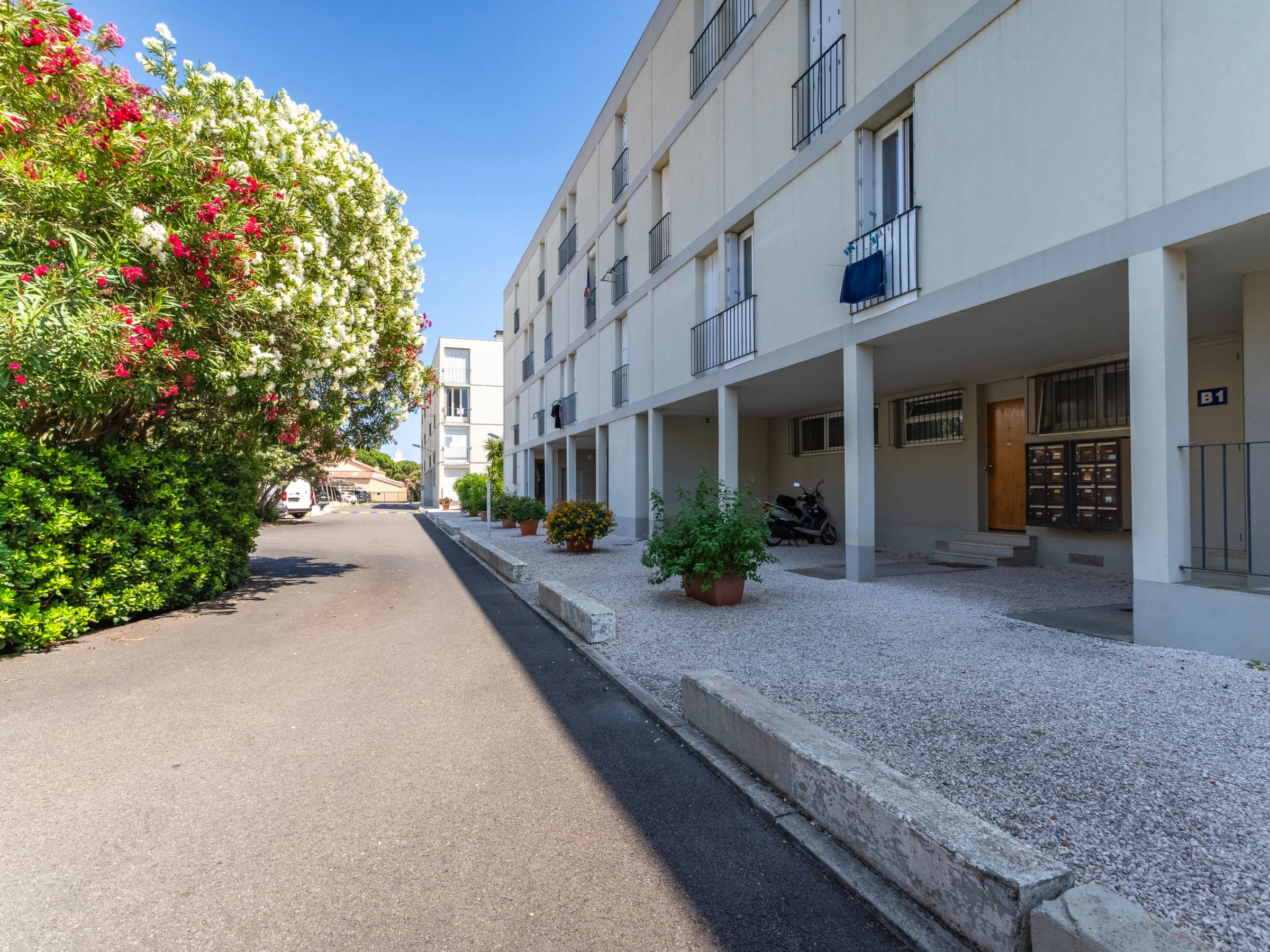 Apartment house "Les Roses Lauriers", 3 storeys. In the resort 500 m from the centre of Lavandou, in a quiet position, 600 m from the sea, 600 m from the beach. Shop, grocery 500 m, supermarket 900 m, restaurant, bar, bakery, café, internet café 500 m, bus stop "Lavandou Gare routière" 300 m, sandy beach 600 m. Sports harbour 700 m, golf course (18 hole) 18 km, sailing school 1 km, tennis 1.1 km, minigolf 1 km. Please note: no lift. The keys‘ handover takes place by the agency in Le Lavandou.