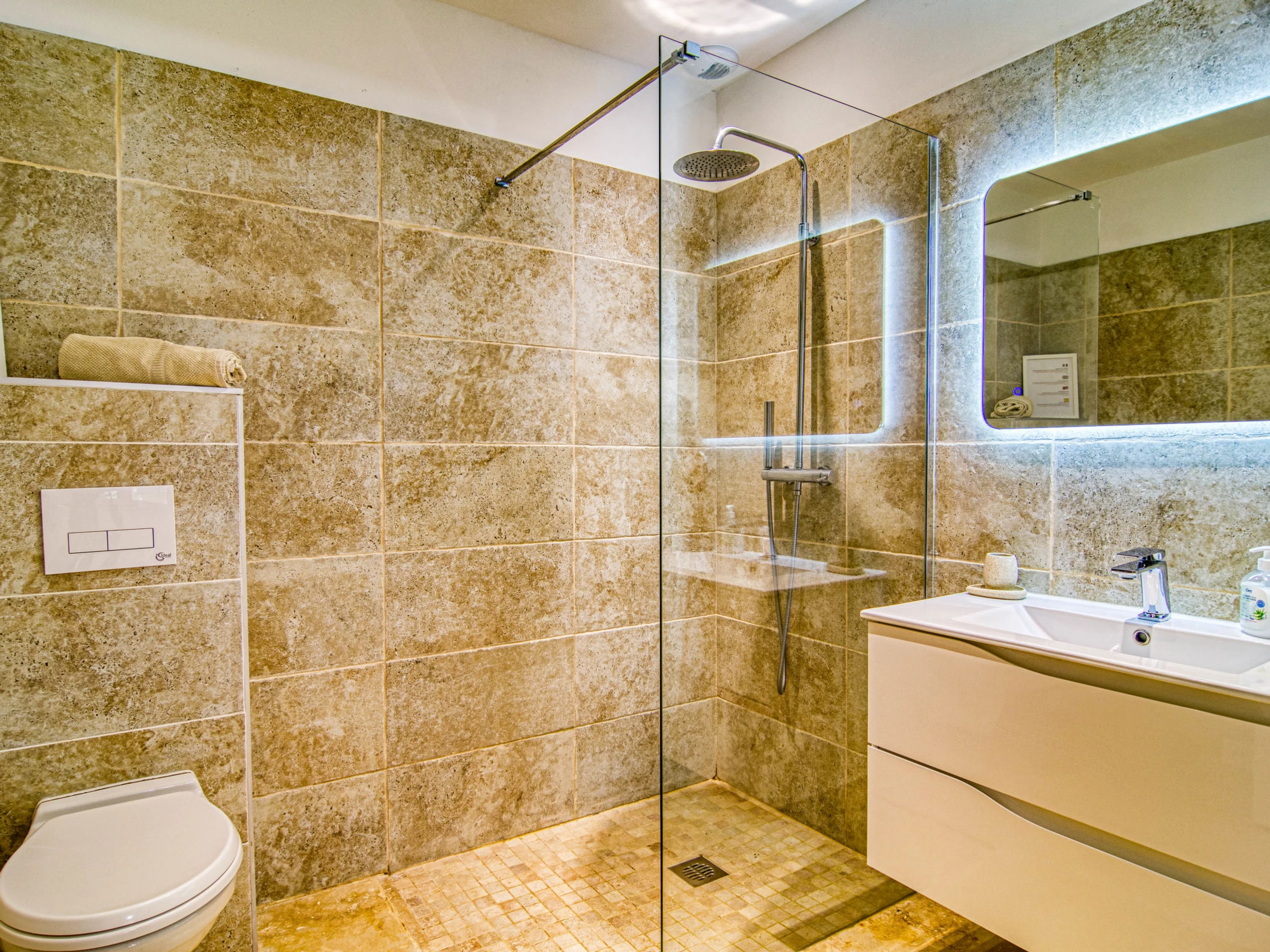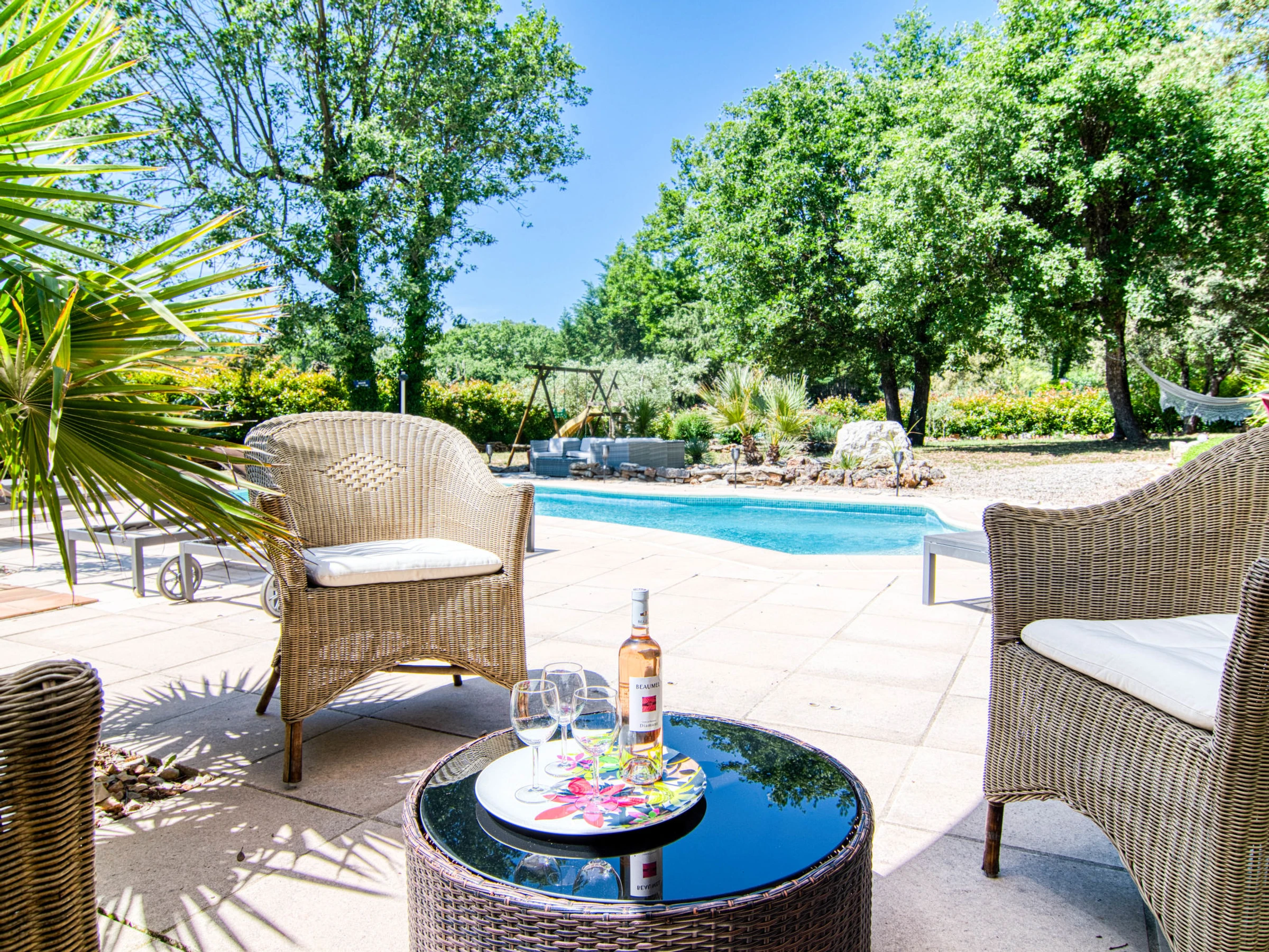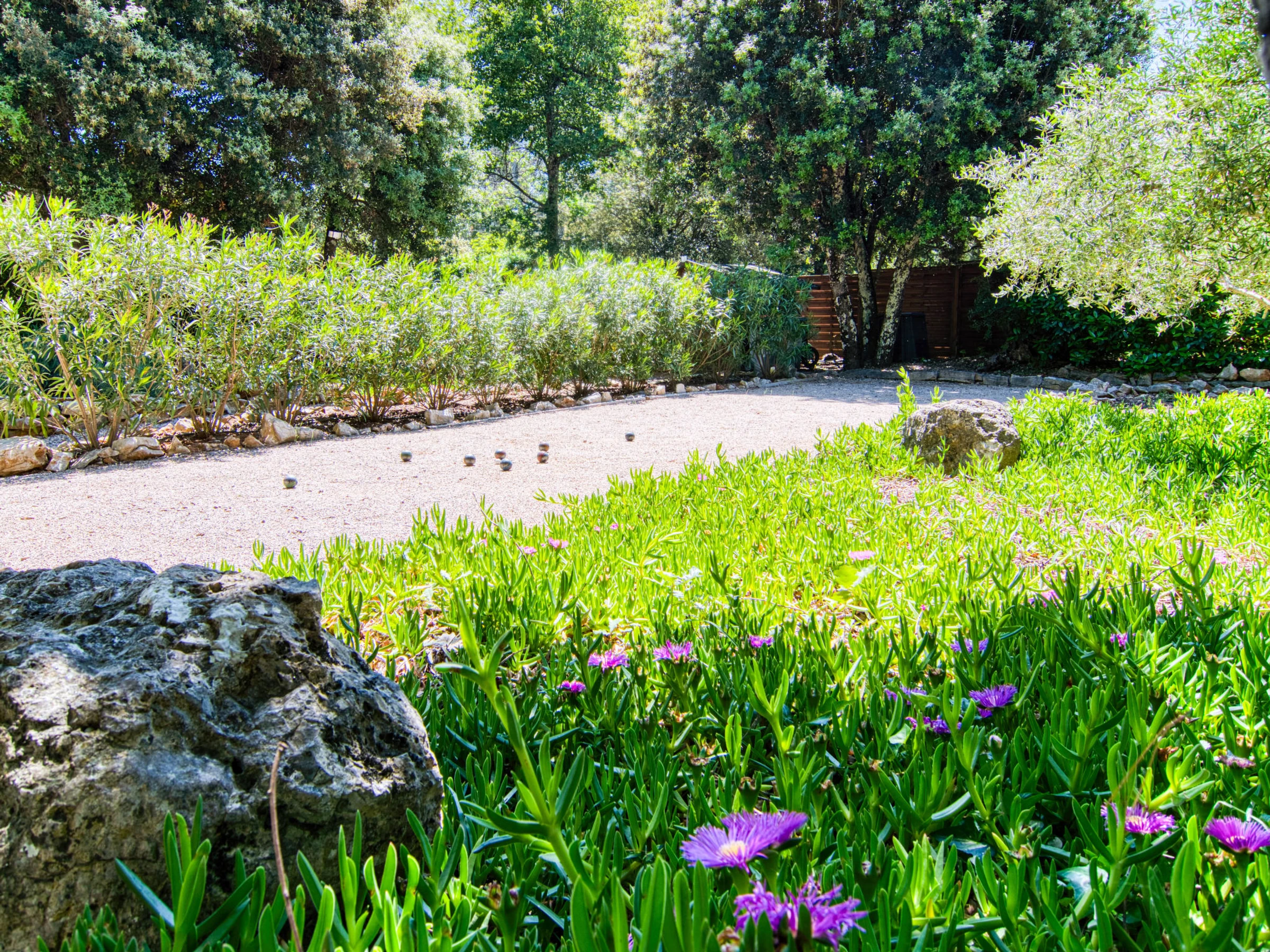 6 km from the centre of Le Thoronet, 14 km from the centre of Lorgues, 27 km from the centre of Draguignan, in the residential district. Private: property 2'500 m2 (fenced), beautiful garden to relax, swimming pool kidney shaped (10 x 4 m, seasonal availability: [hidden] - [hidden] with alarm system. Outdoor shower, boules, parking (for 4 cars) on the premises. Grocery 6 km, supermarket 10 km, restaurant 6 km, bar 6 km, bakery 6 km, café 6 km, bus stop 8 km, railway station "Les Arcs Draguignan" 15 km, sandy beach "La Nartelle". Golf course (18 hole) 26 km, riding stable 8 km, fishing possibilities 19 km. Nearby attractions: Abbaye du Thoronet, Chute du Caramy, Vallon Sourn, Sillans la cascade, Cotignac, Tourtour. Well-known lakes can easily be reached: Lac de Carcès (pêche uniquement) 19 km, Lac de Sainte croix 57 km. Hiking paths: Plaine des Maures, Gorges du Verdon. Please note: car recommended. The owner does not accept any youth groups.