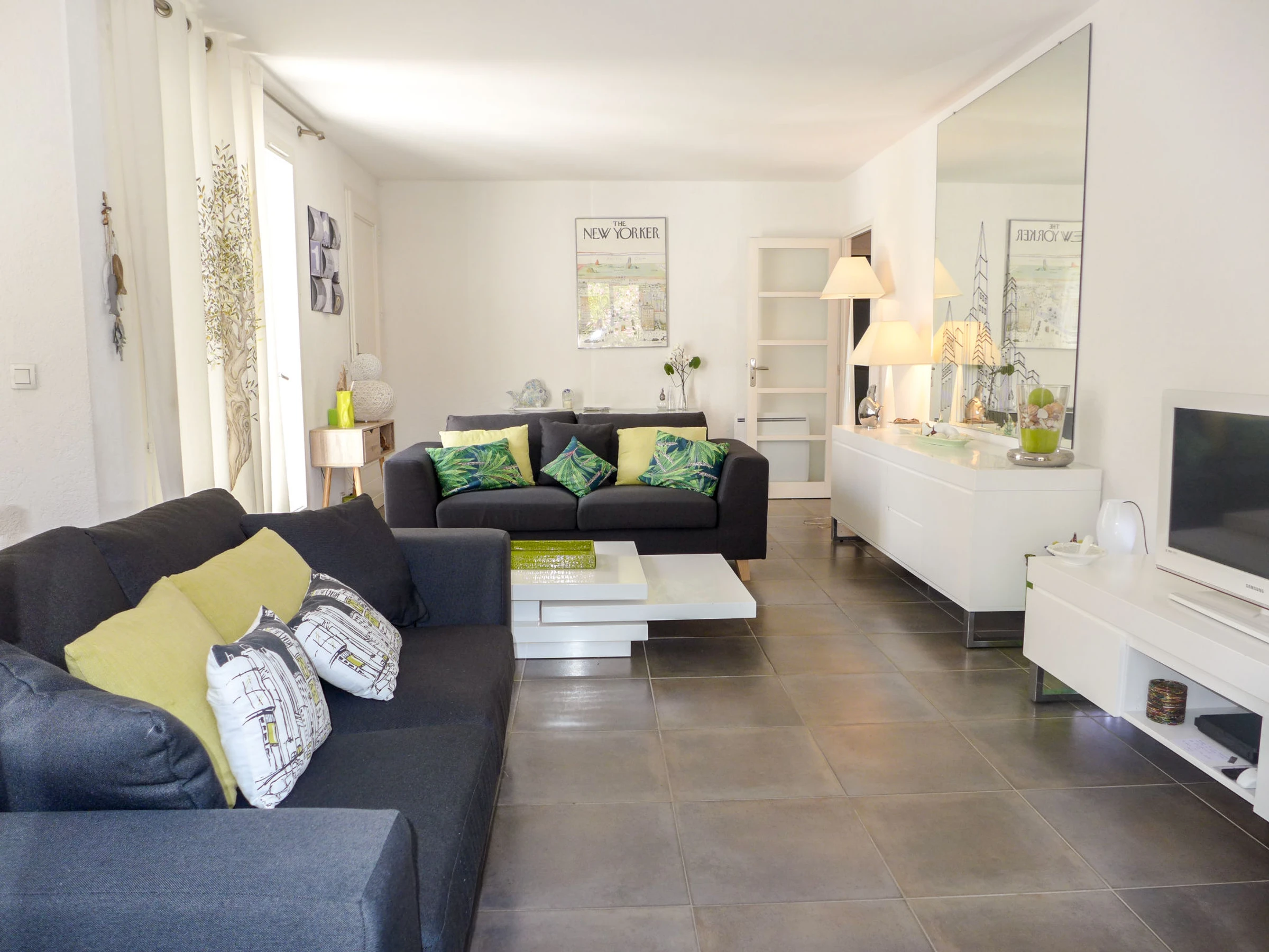 Single-family house "Les Vallons de la Gaillarde 1". In the district of la Gaillarde, on the outskirts, 2.5 km from the centre of Saint Aygulf, in the residential district, 300 m from the sea, 300 m from the beach. For shared use: 2 swimming pools (16 x 23 m, depth 90 - 200 cm, seasonal availability: [hidden] - [hidden] pool opening hours: 09:30-21:00 and 10:30-21:00). Children's pool, tennis, boccia, children's playground. Private: natural state property 450 m2 (fenced). Outdoor shower, boules, parking (limited number of spaces) at the house. Shop 300 m, shopping centre 8 km, restaurant 300 m, 15 minute walk to the centre, bus stop "La Gaillarde" 450 m, railway station "Fréjus" 8 km, sandy beach "La Gaillarde" 300 m, park "Areca St Aygulf" 2 km, diving center 2 km, thermal baths "Thalasso les Issambres" 5 km, lake Lac St Cassien 45 km. Sports harbour 2 km, golf course (18 hole) 11 km, sailing school 8 km, tennis 3 km, minigolf 12 km, riding stable 6 km, sports centre 2 km, walking paths from the house 2 km. Nearby attractions: Aqualand 6.5 km, Lunapark 6.5 km, Cannes 45 km, Fréjus 7 km, Saint Raphaël 9 km, Saint Tropez 30 km. Well-known ski regions can easily be reached: Auron 150 km, Isola [hidden] km. Well-known lakes can easily be reached: Lac de St Cassien 45 km, Lac du Verdon 90 km. Hiking paths: Petites Maures 2 km, Estérel 20 km. Please note: car recommended. The owner does not accept any youth groups. The keys‘ handover takes place by the agency in Saint Aygulf, 3 km.